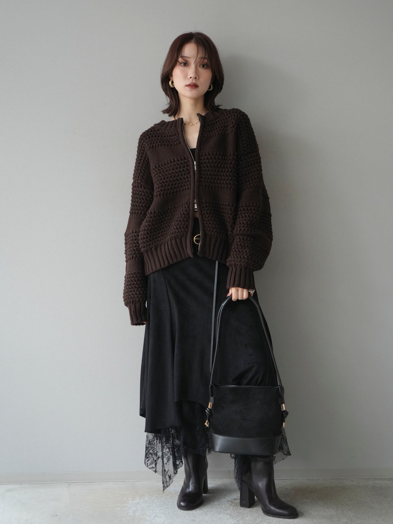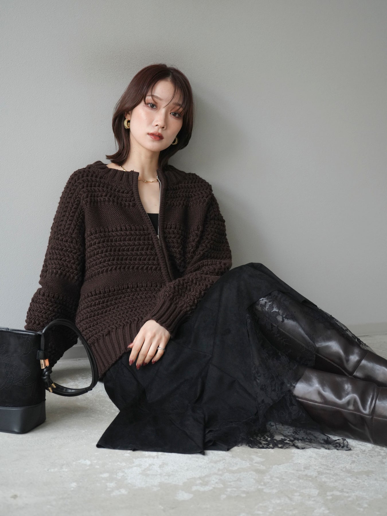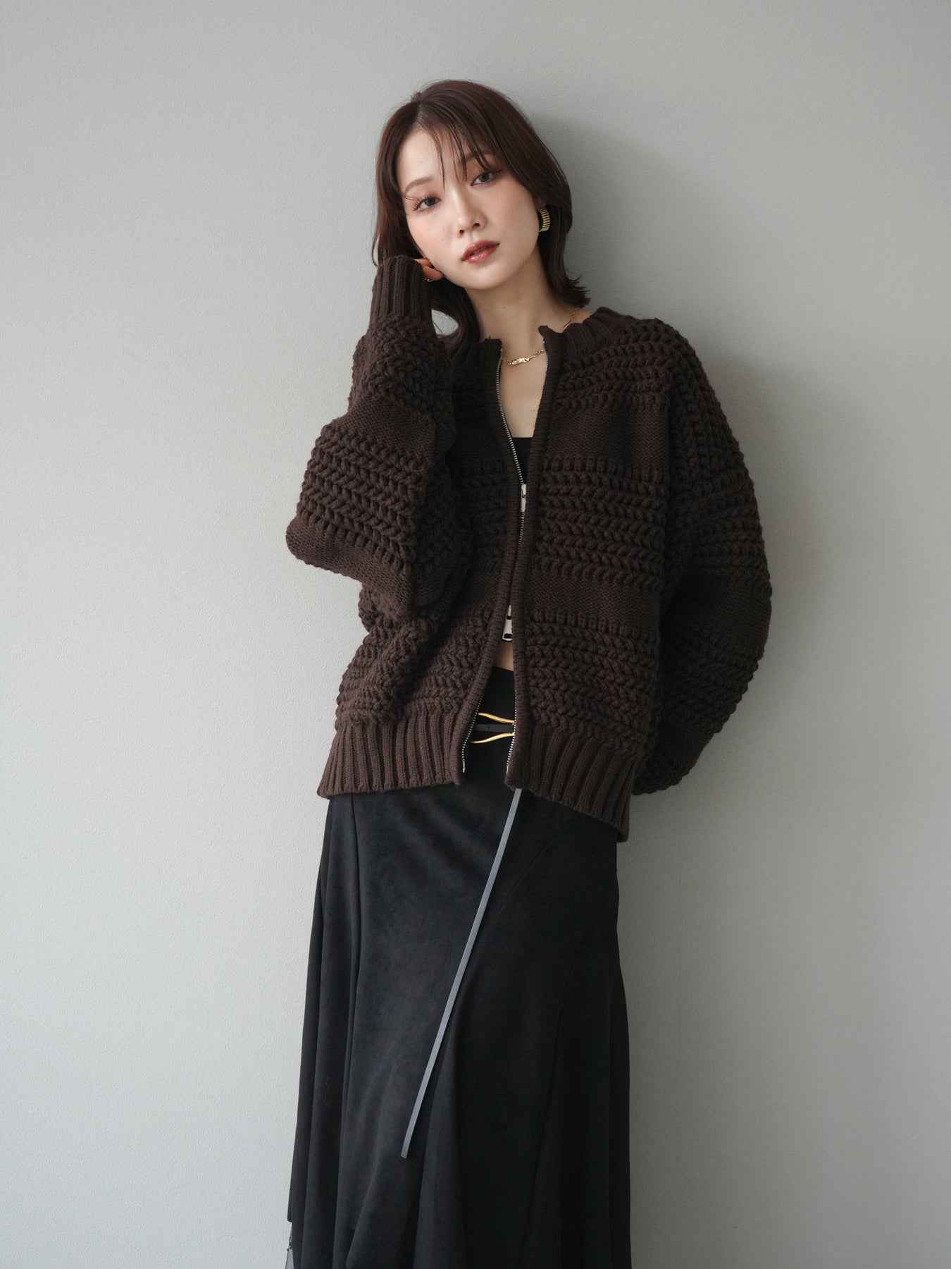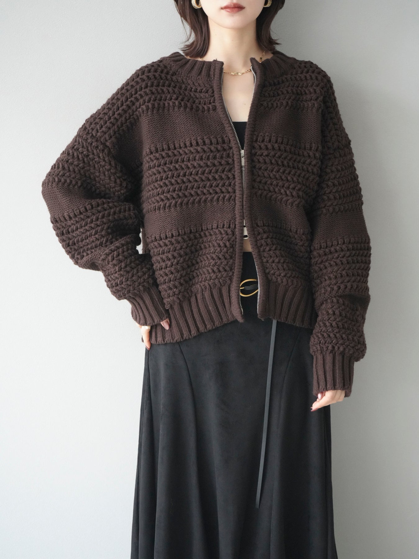 [予約]ケーブル編みZIPニットカーディガン/brown