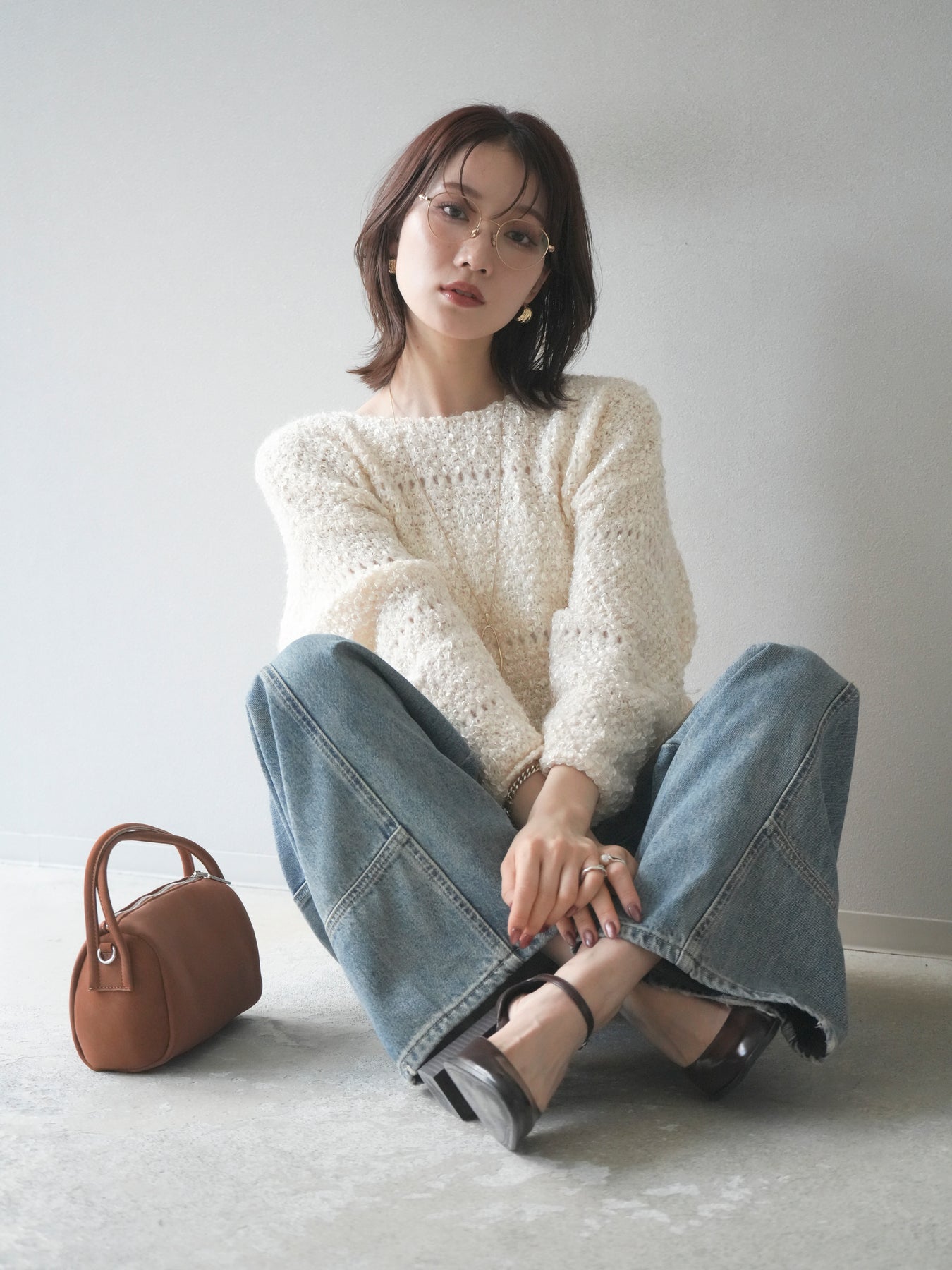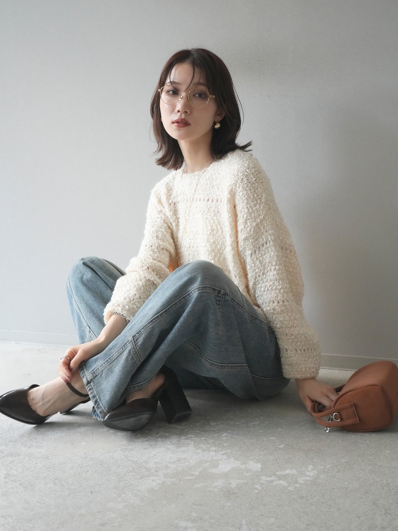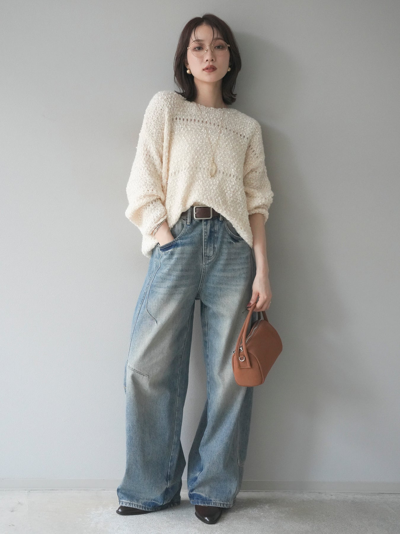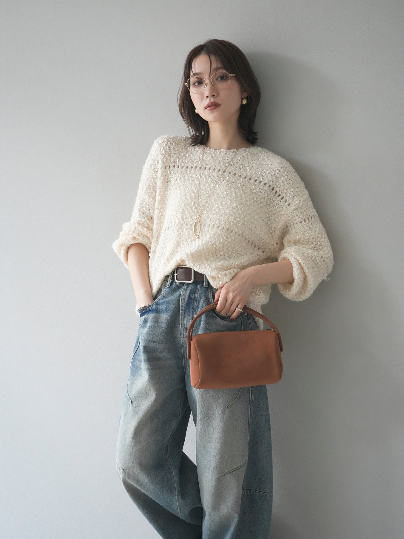 ラメ糸を織り交ぜたループヤーン素材が魅力のニットプルオーバー。 ふんわりとした立体感のある編地に、さりげない光沢が加わり、女性らしい華やかさを演出します。 軽やかで柔らかな着心地ながら、程よくボリュームがあり、一枚で存在感のあるデザイン。 ゆったりとしたシルエットでリラックス感があり、デイリー使いにもぴったりです。 シンプルなボトムに合わせるだけで、コーディネートに季節感を添えるアイテムです。 ※ボトムス、キャミソール(インナー)以外の商品は一律でインナーは付属していません。