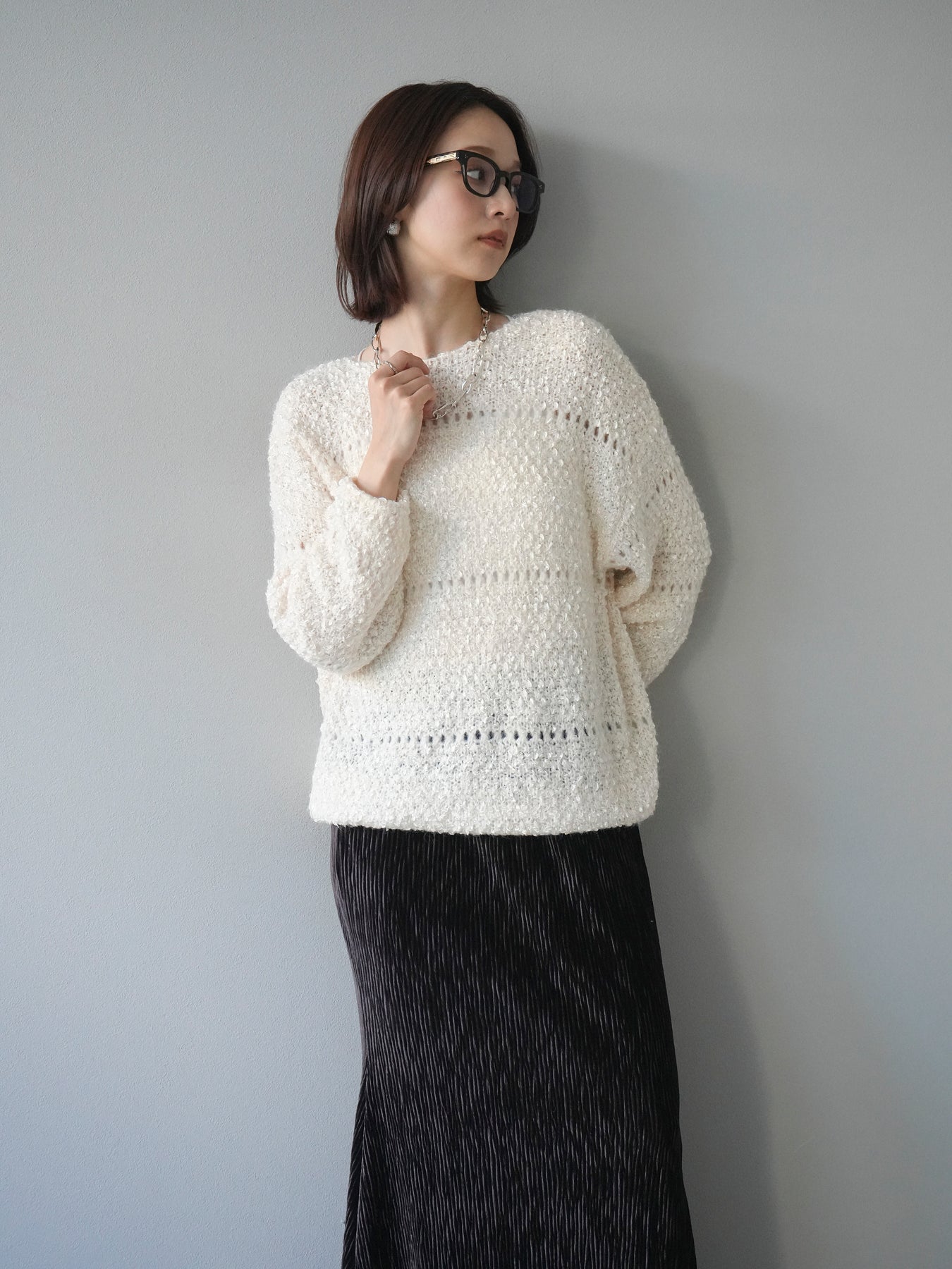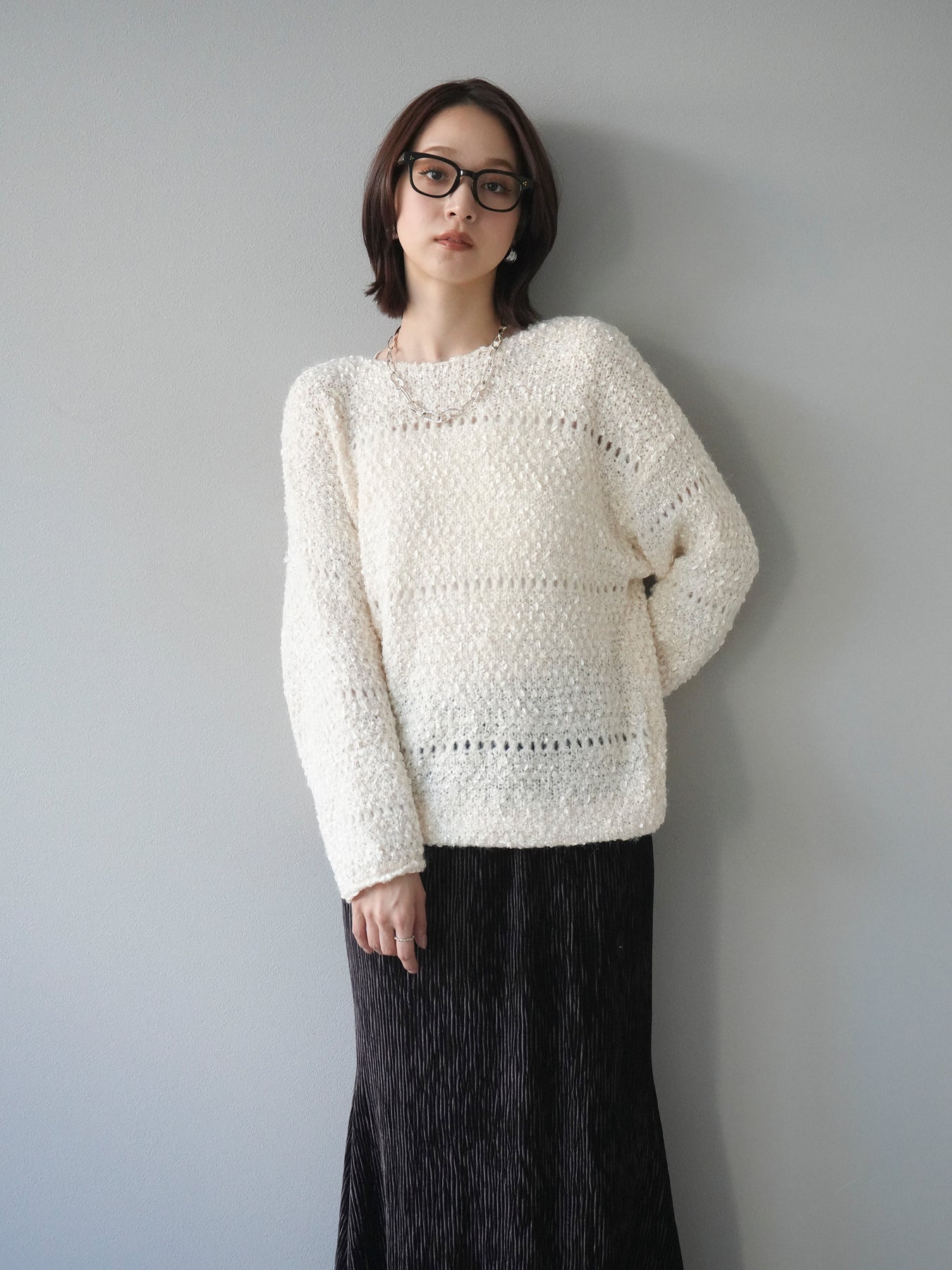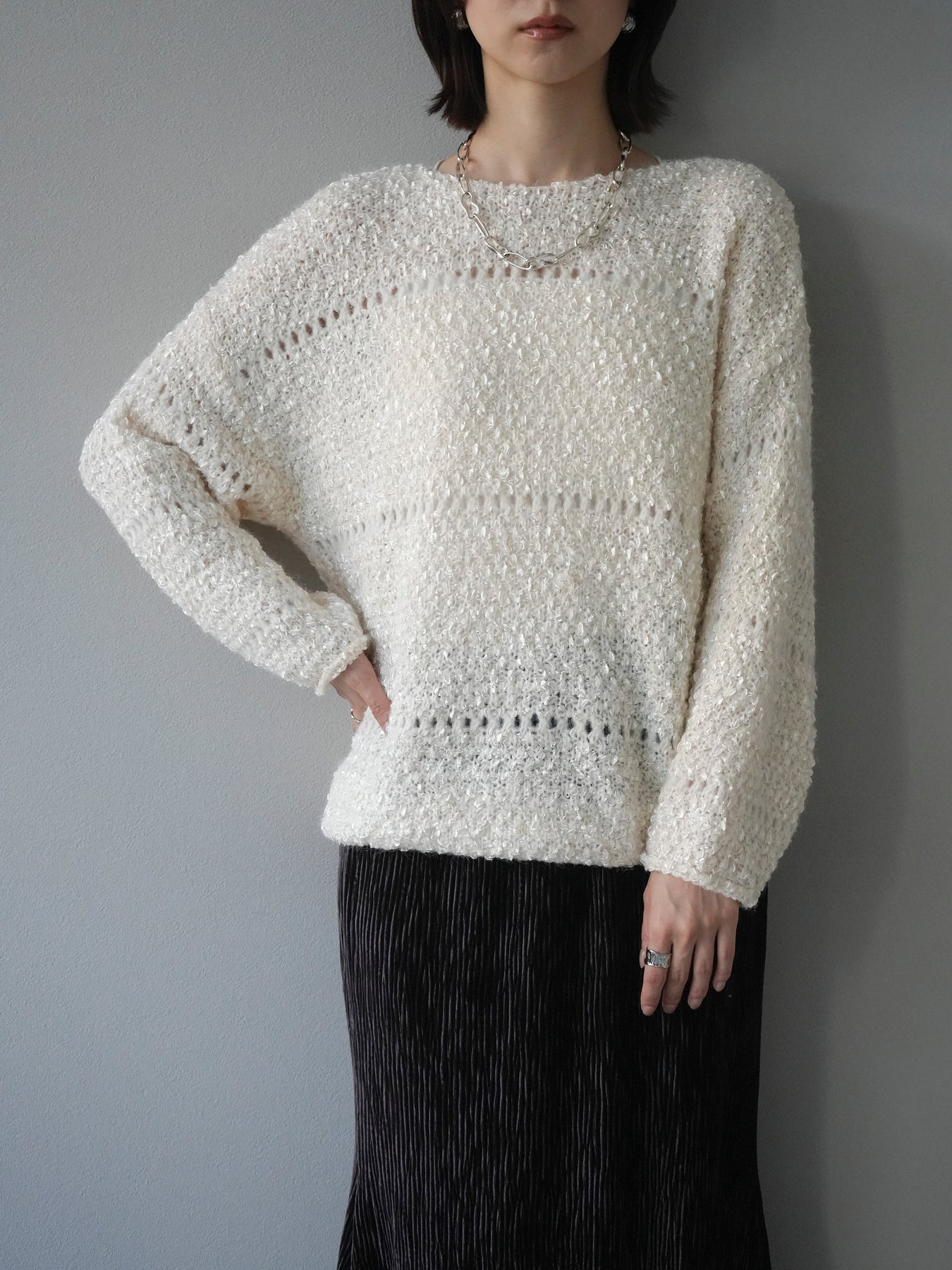 [予約]ラメ糸ループヤーンニットプルオーバー/ivory