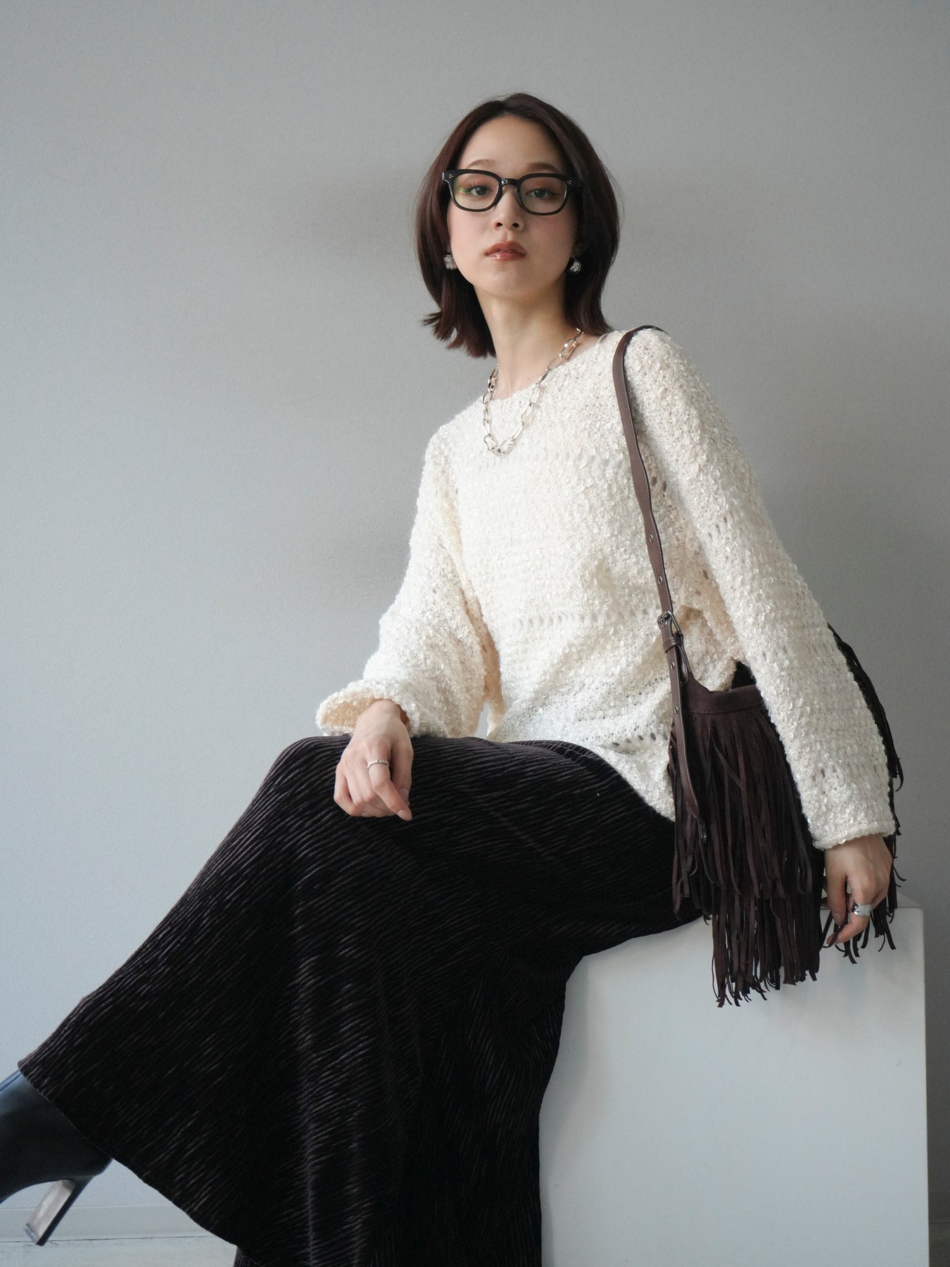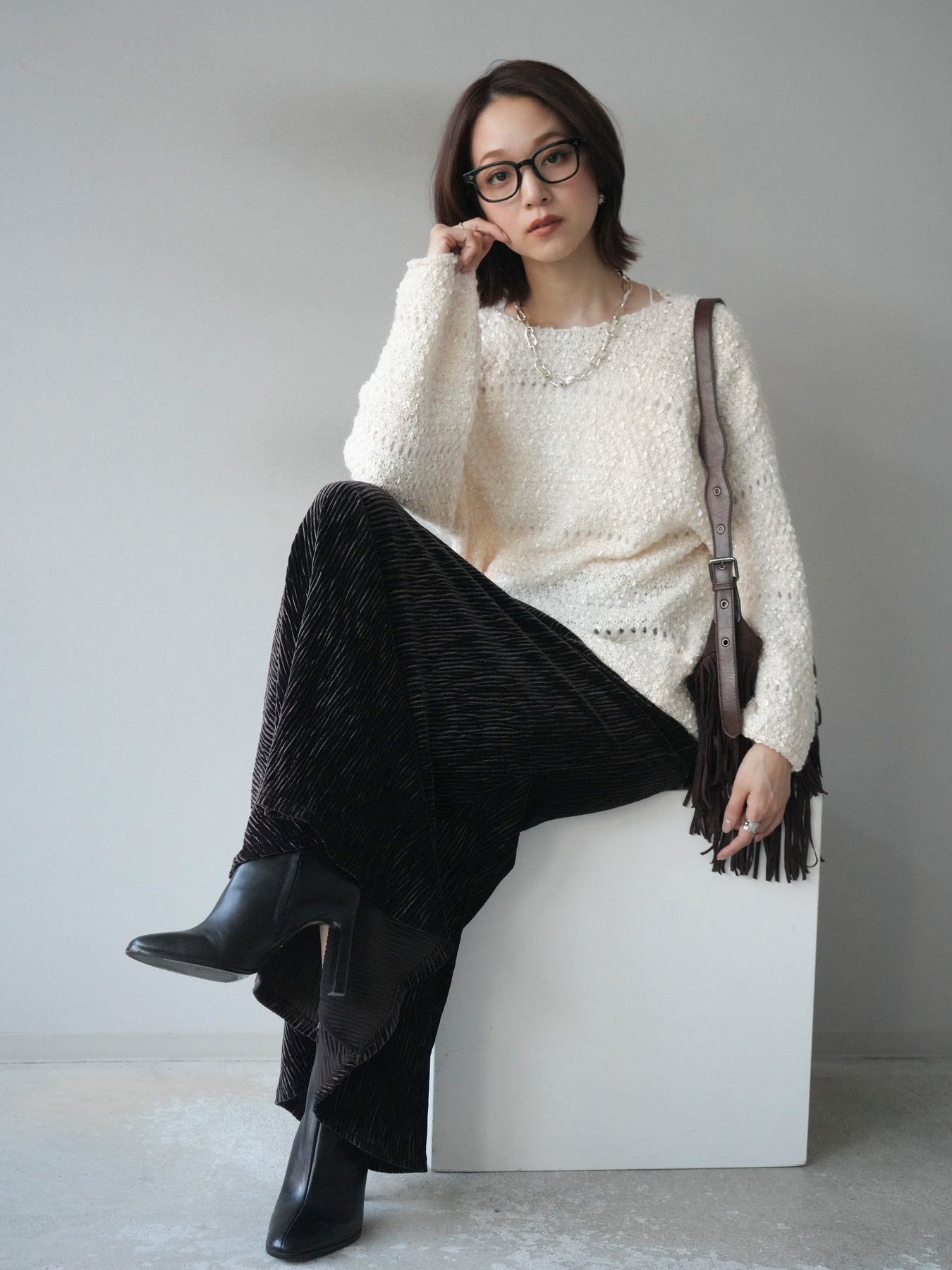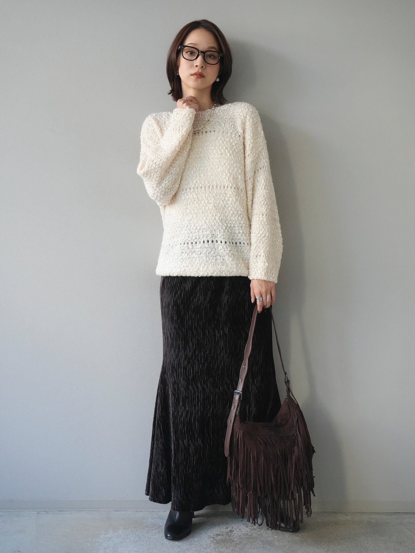 [予約]ラメ糸ループヤーンニットプルオーバー/ivory