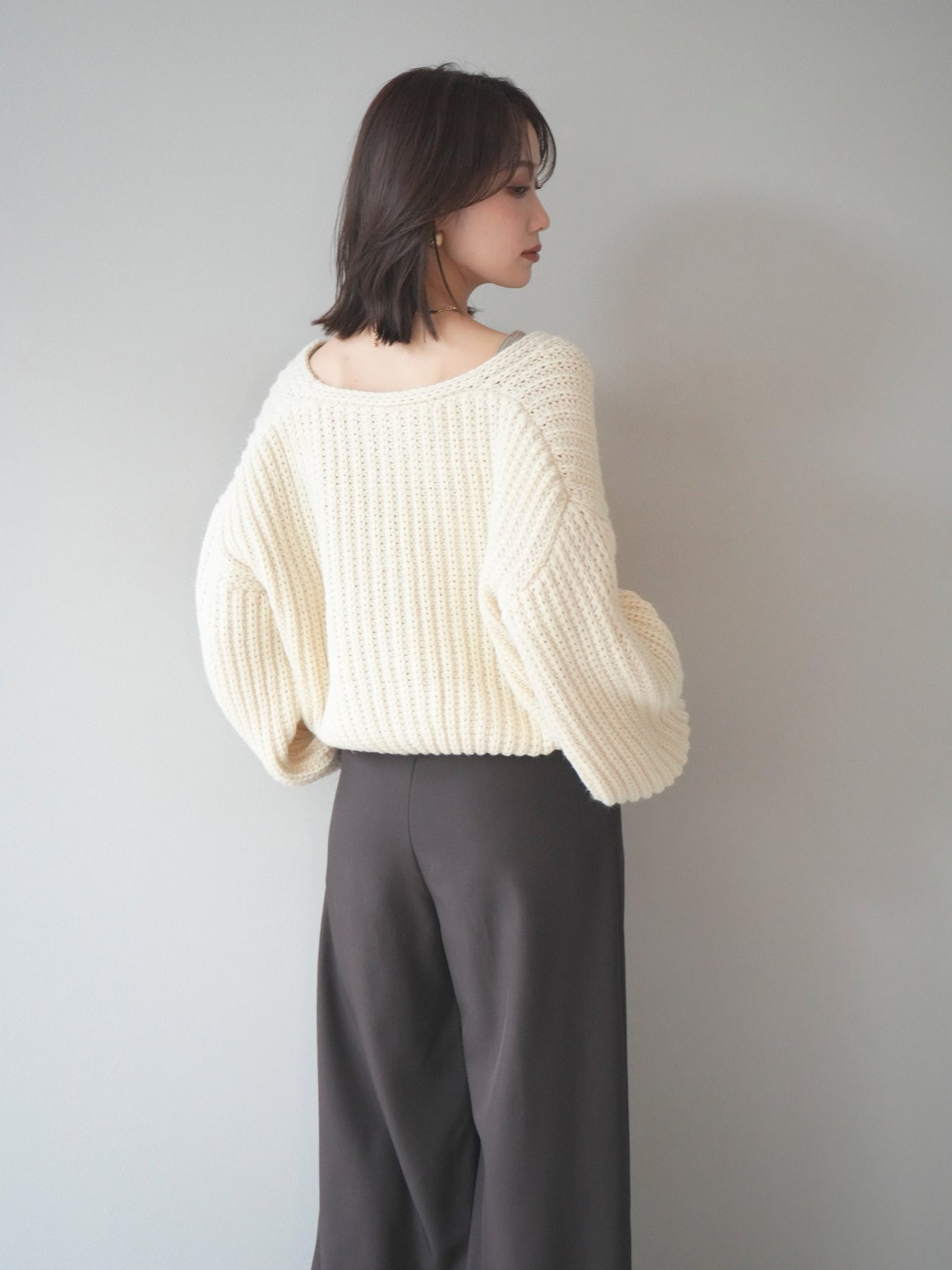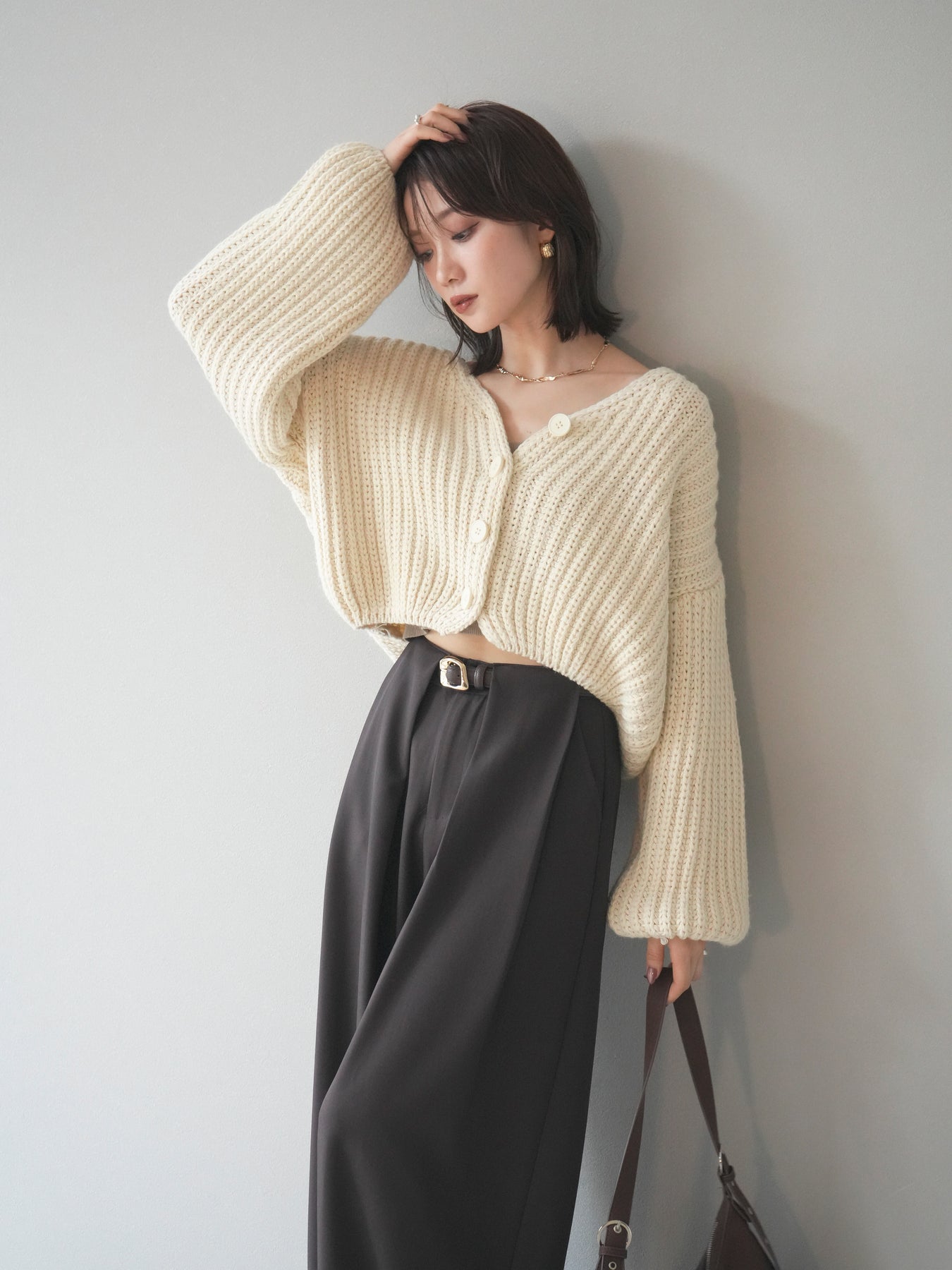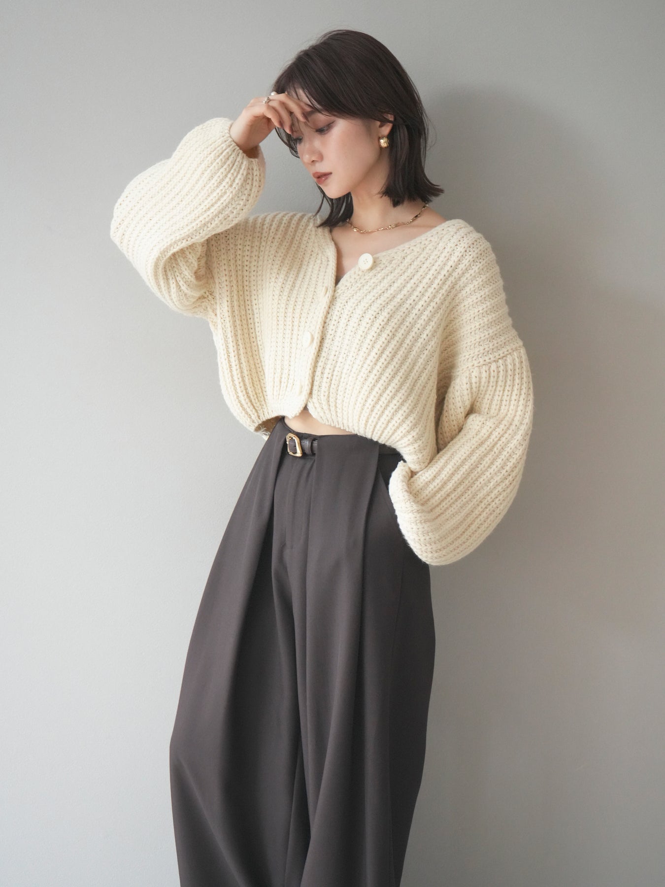 [予約]畦編みショートニットカーディガン/ivory