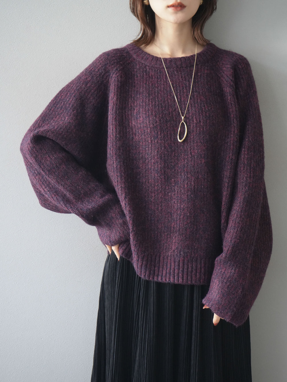 [予約]クルーネック畦編みミックスニット/bordeaux