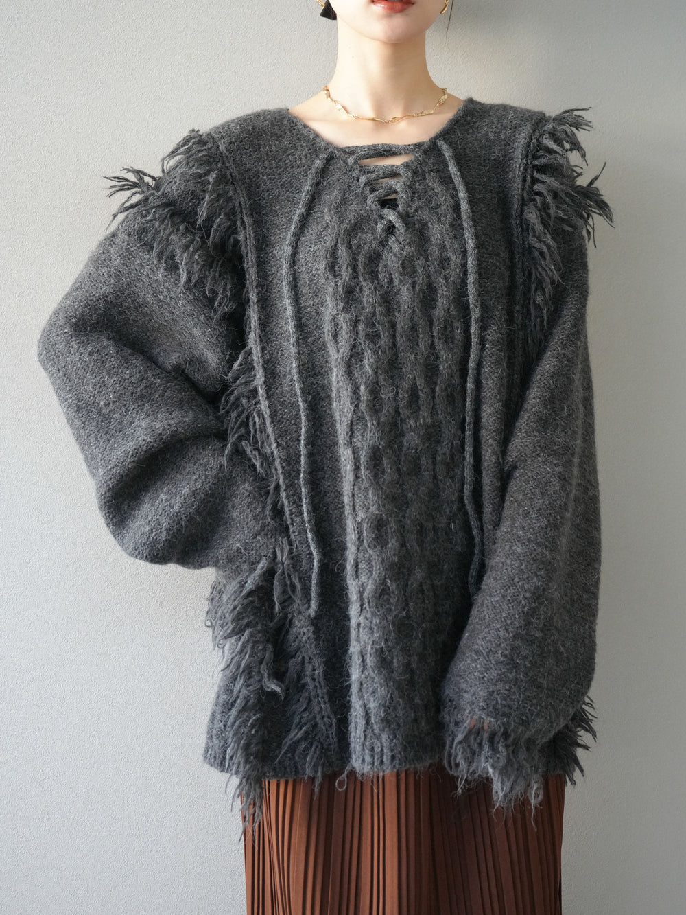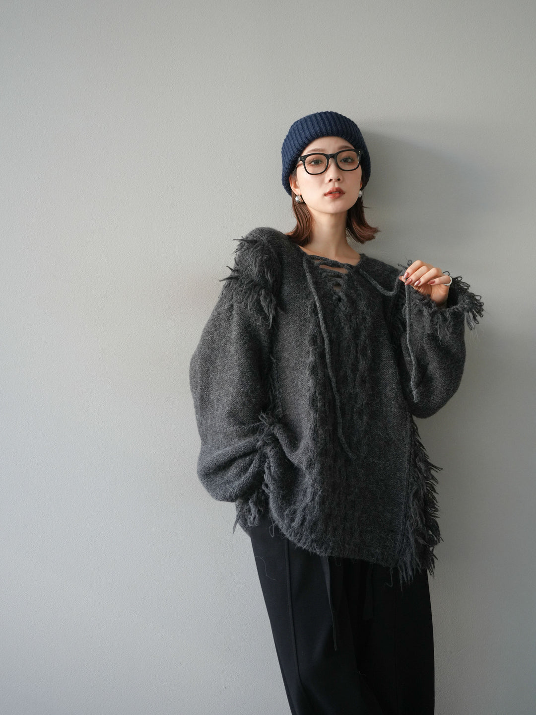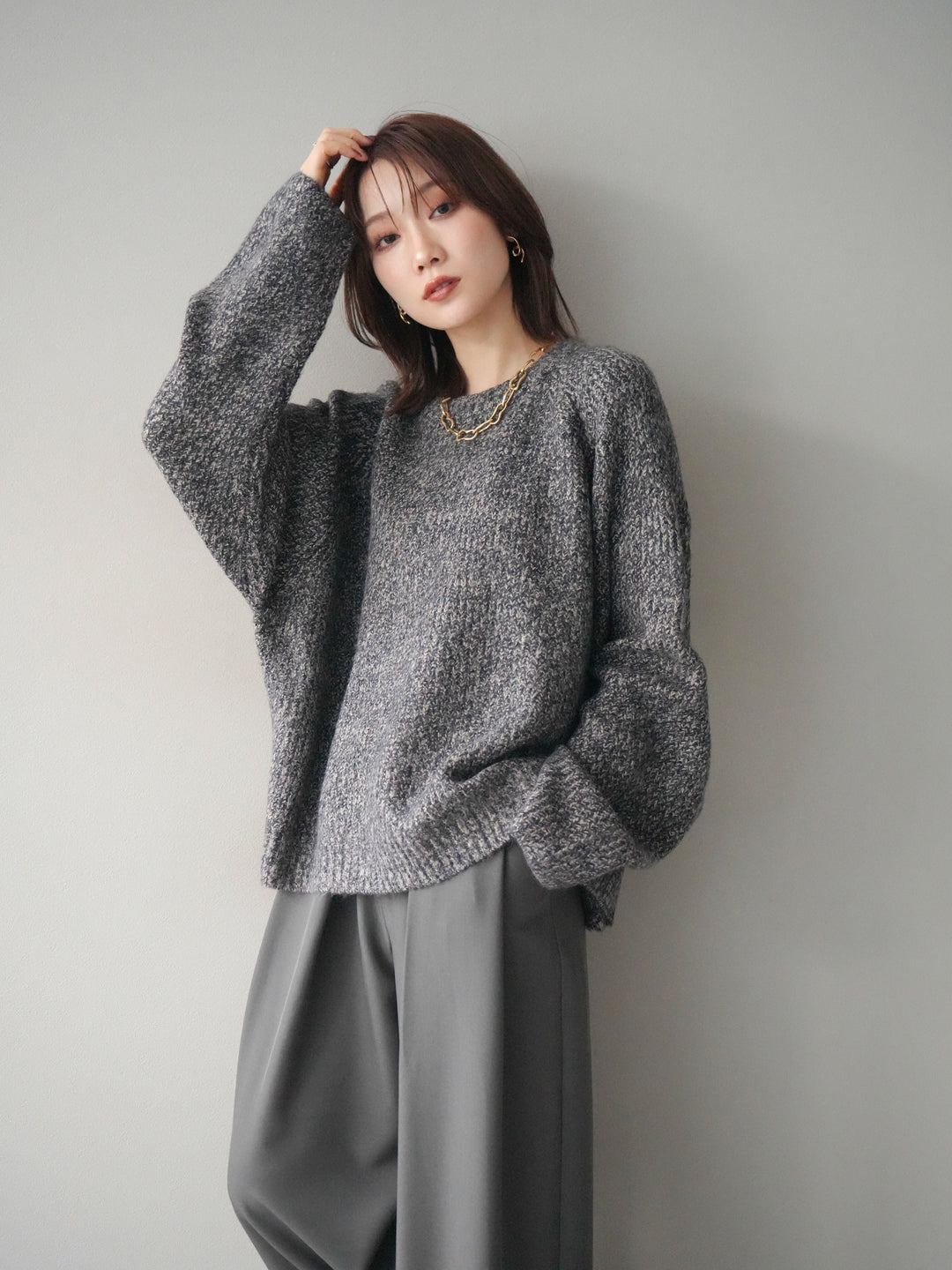 [予約]ボリュームスリーブミックスネップニットプルオーバー/gray