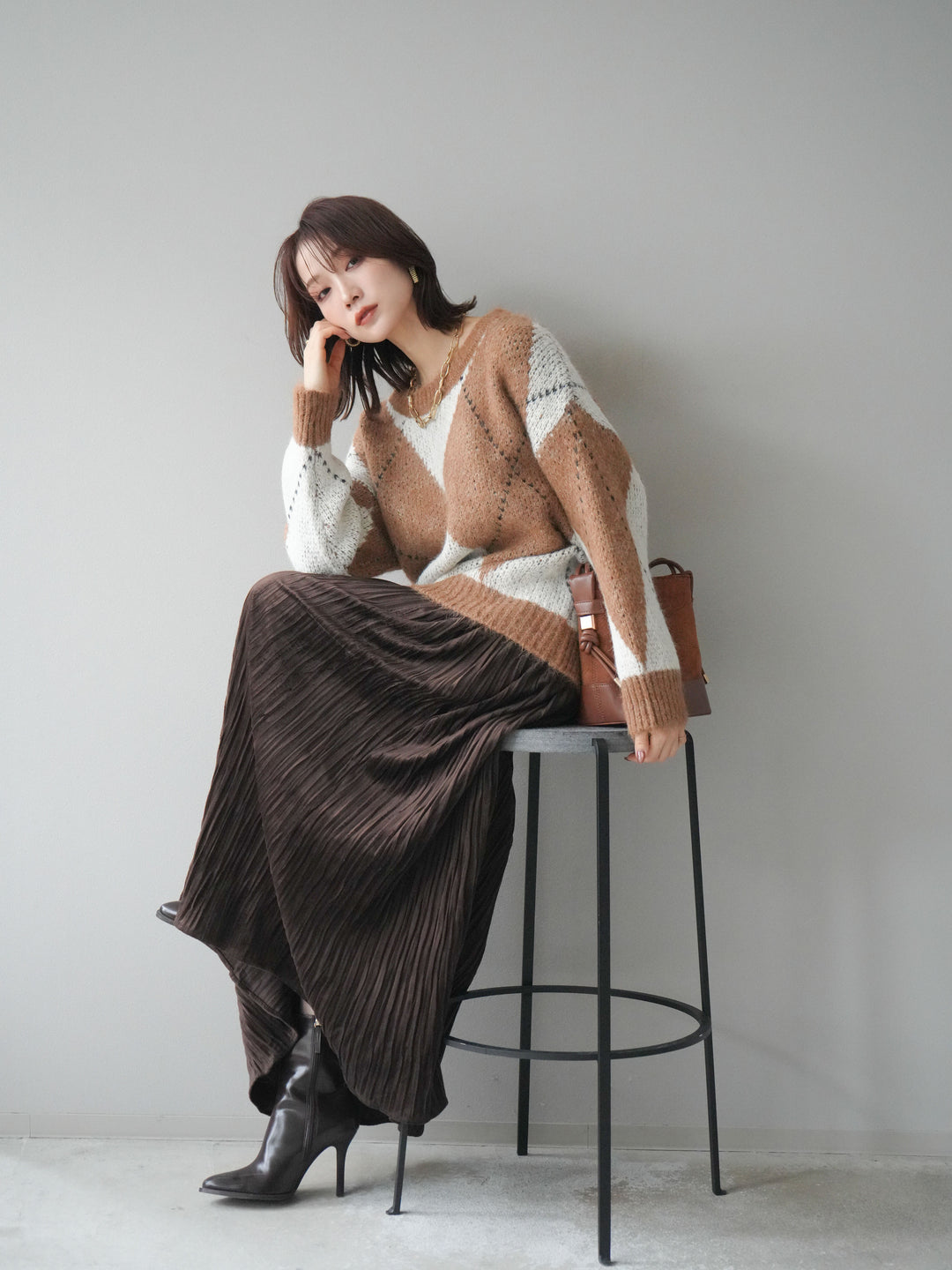 [予約]アーガイルオーバーニットプルオーバー/camel