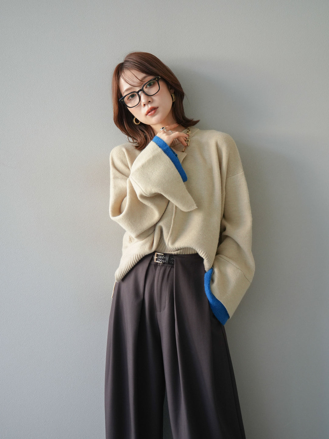 [予約]袖レイヤード配色ニットプルオーバー/ivory