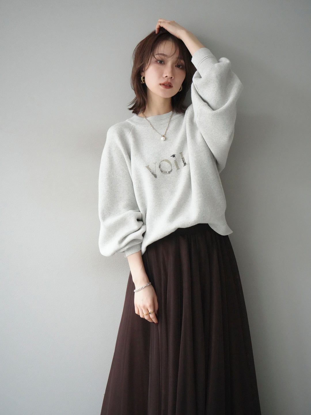 [予約]スウェットライクビーズロゴ刺繍ニットプルオーバー/charcoal
