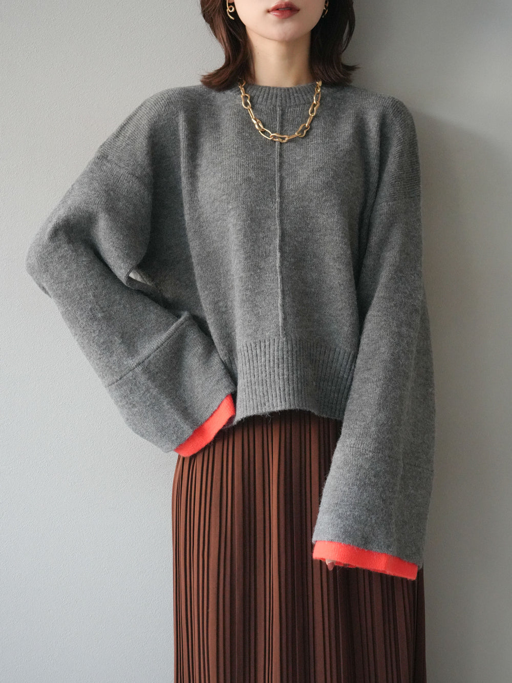 [予約]袖レイヤード配色ニットプルオーバー/charcoal