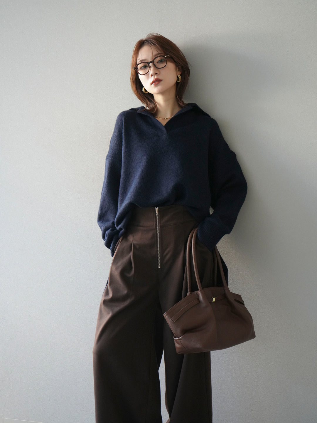 [予約]スキッパーオーバーニットプルオーバー/navy