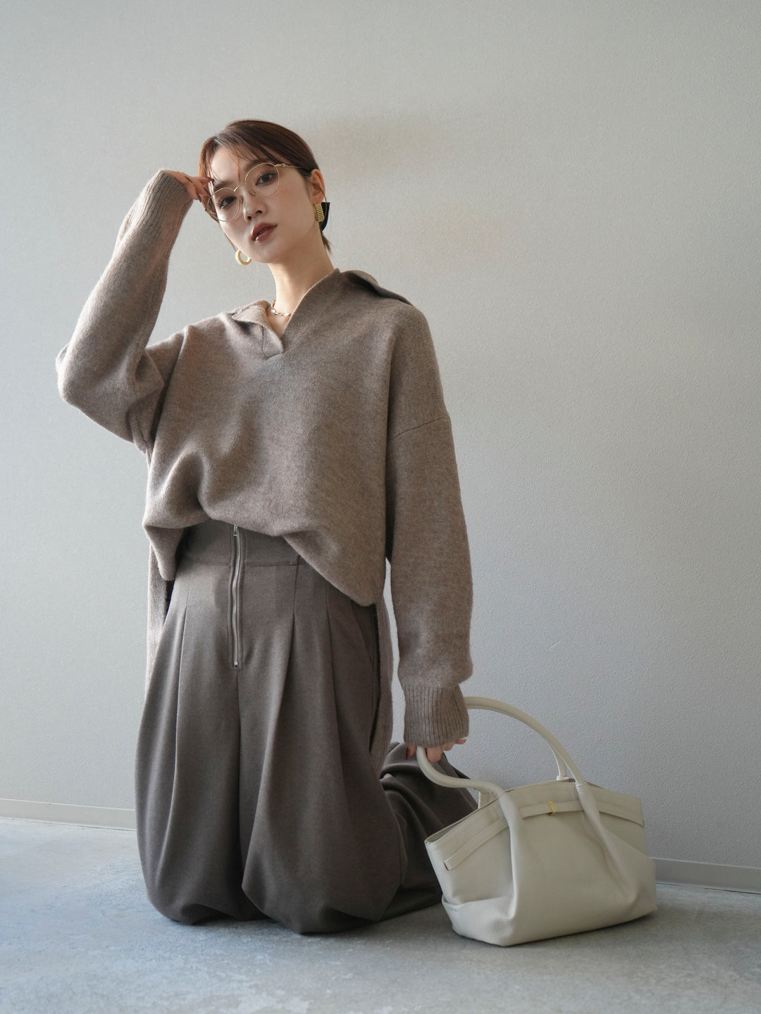 [予約]スキッパーオーバーニットプルオーバー/greige