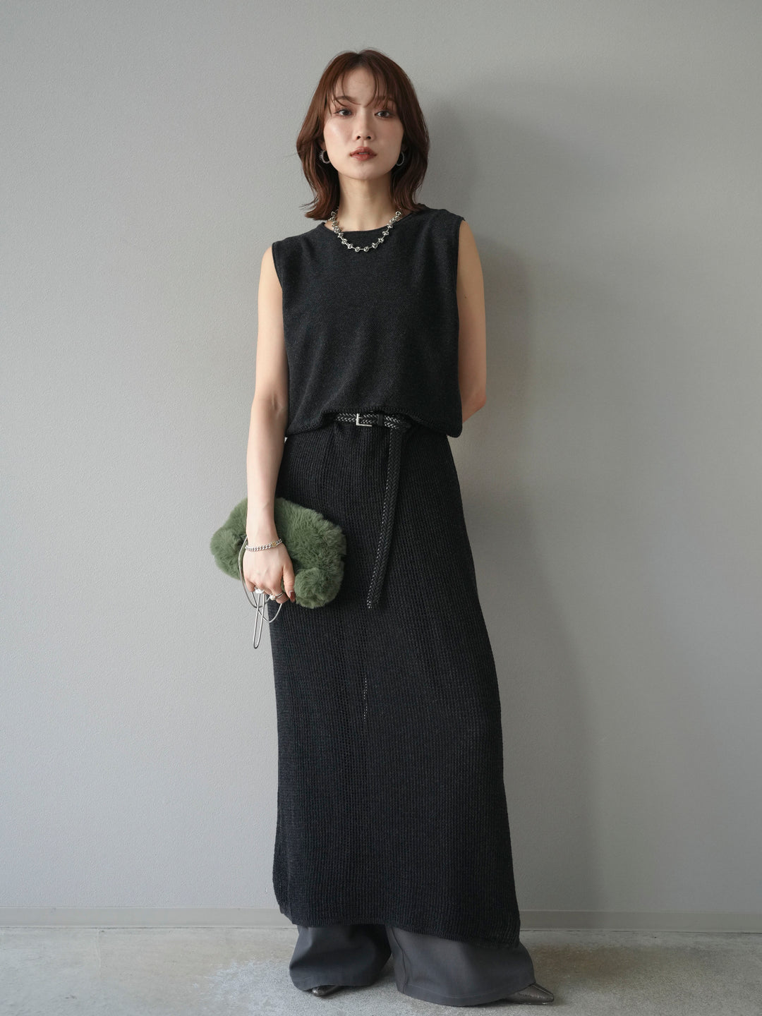 [予約]メッシュ切替ノースリーニットワンピース/darkgray