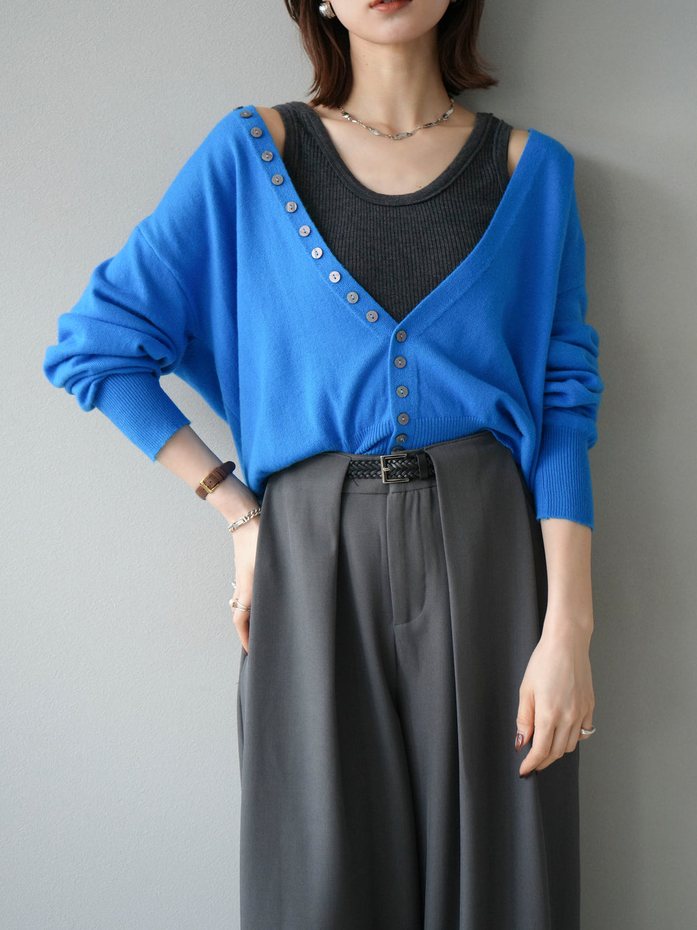 [予約]デザインボタンニットカーディガン&タンクトップSET/ブルー