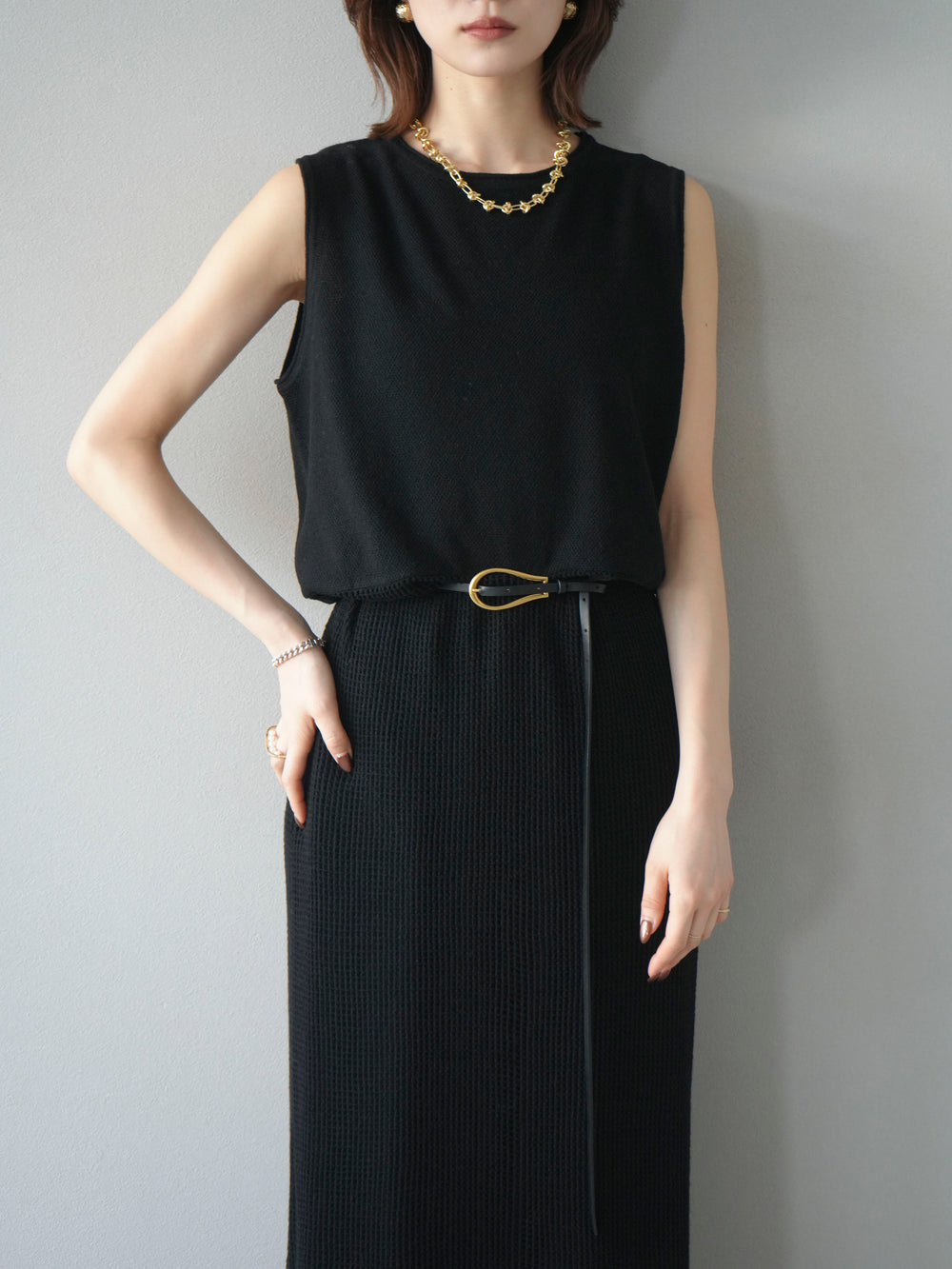 [予約]メッシュ切替ノースリーニットワンピース/black