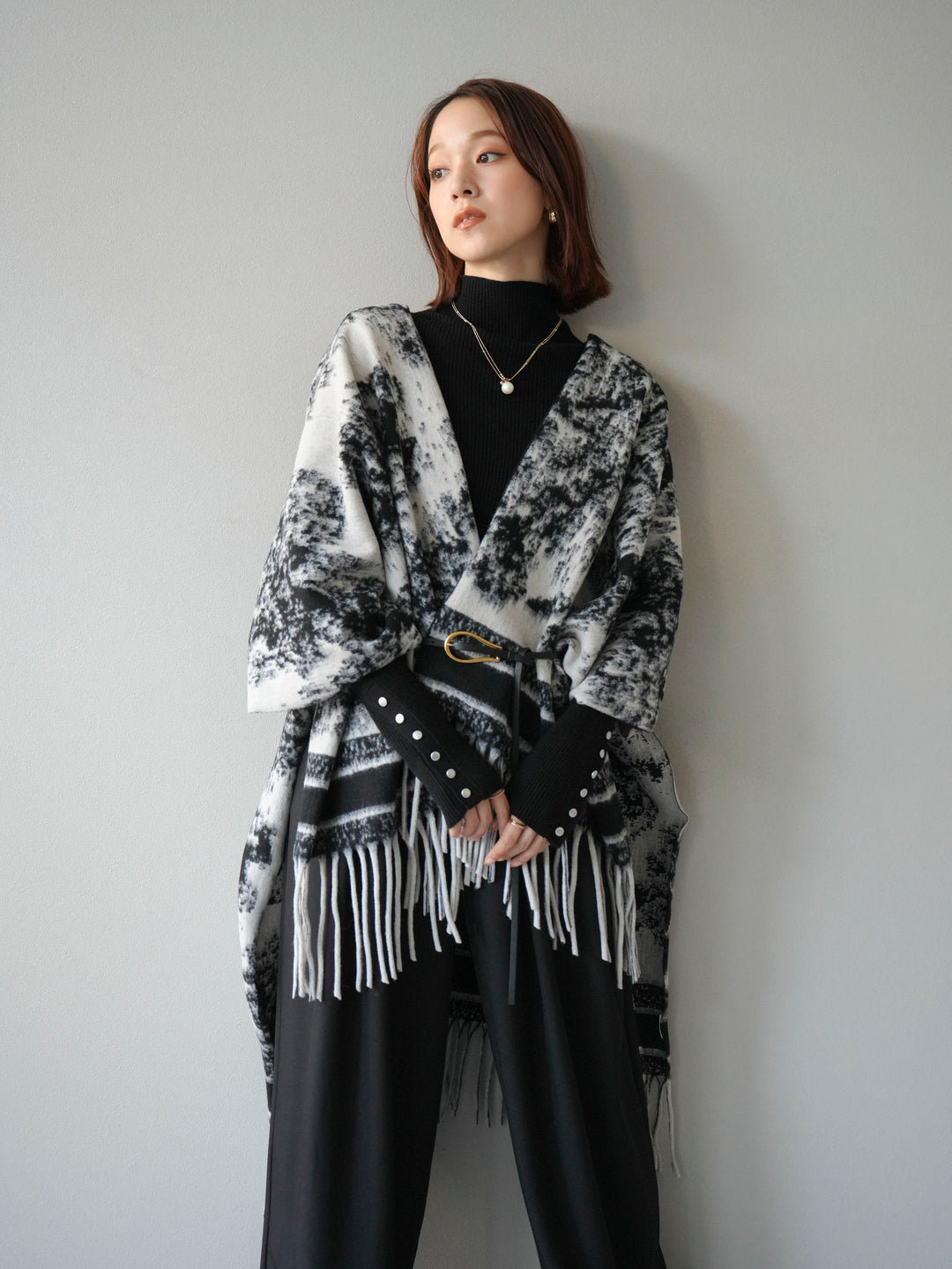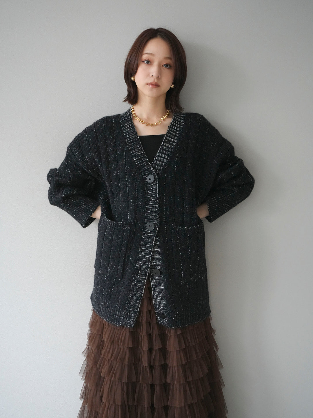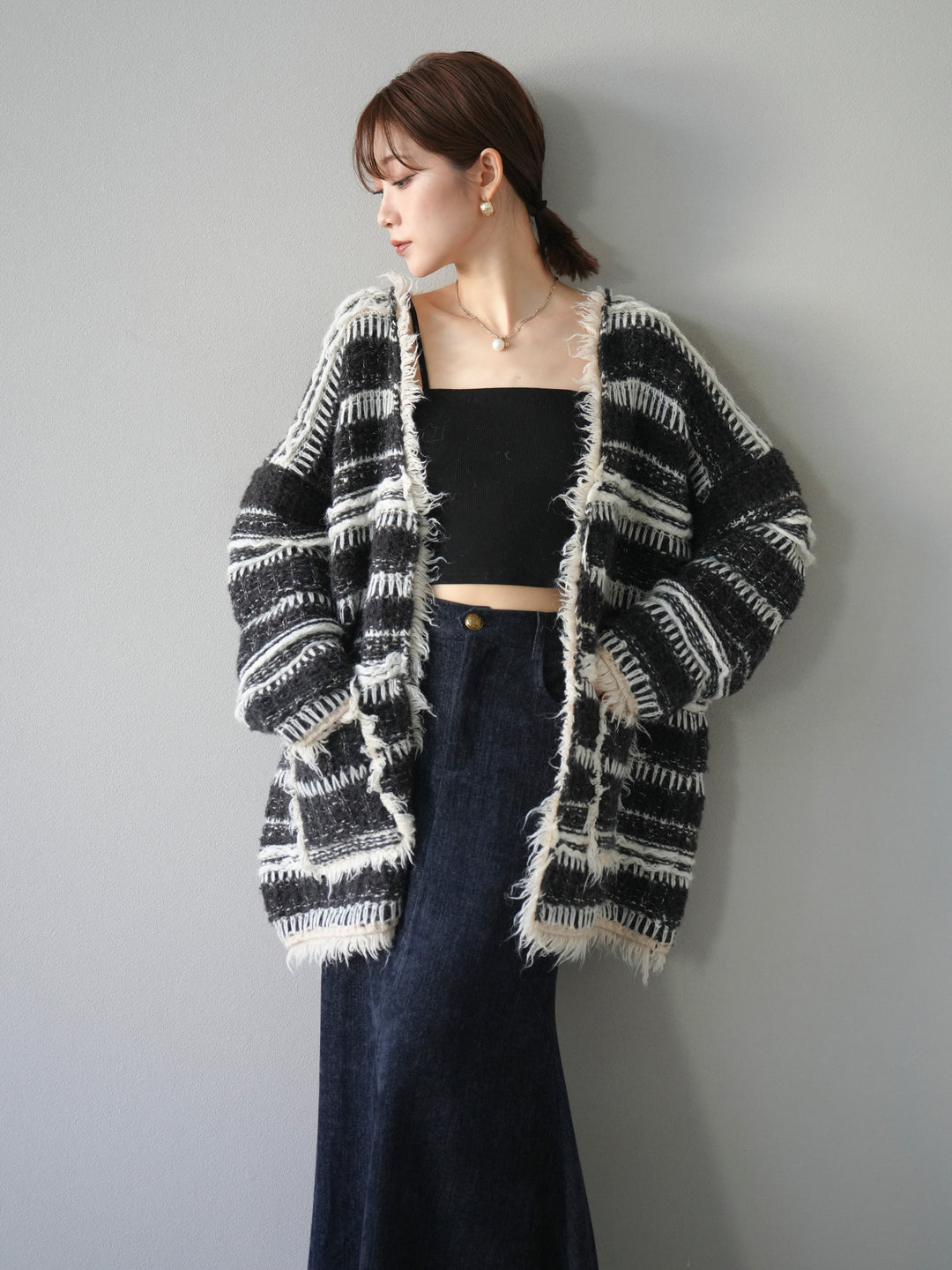 [予約]ミックスフリンジオーバーニットカーディガン/black