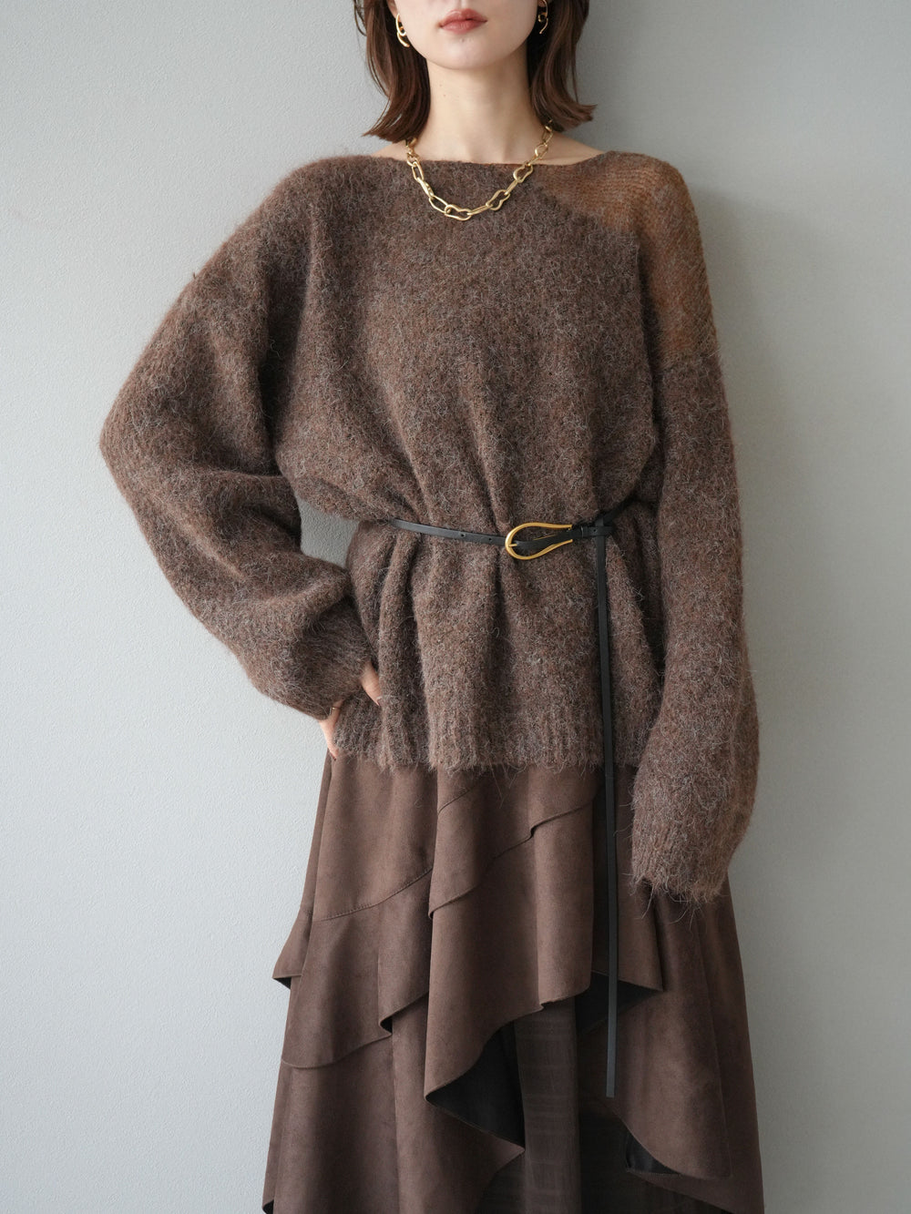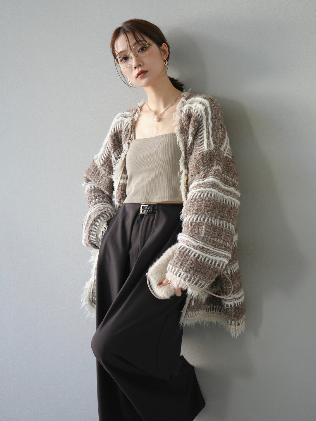 [予約]ミックスフリンジオーバーニットカーディガン/brown