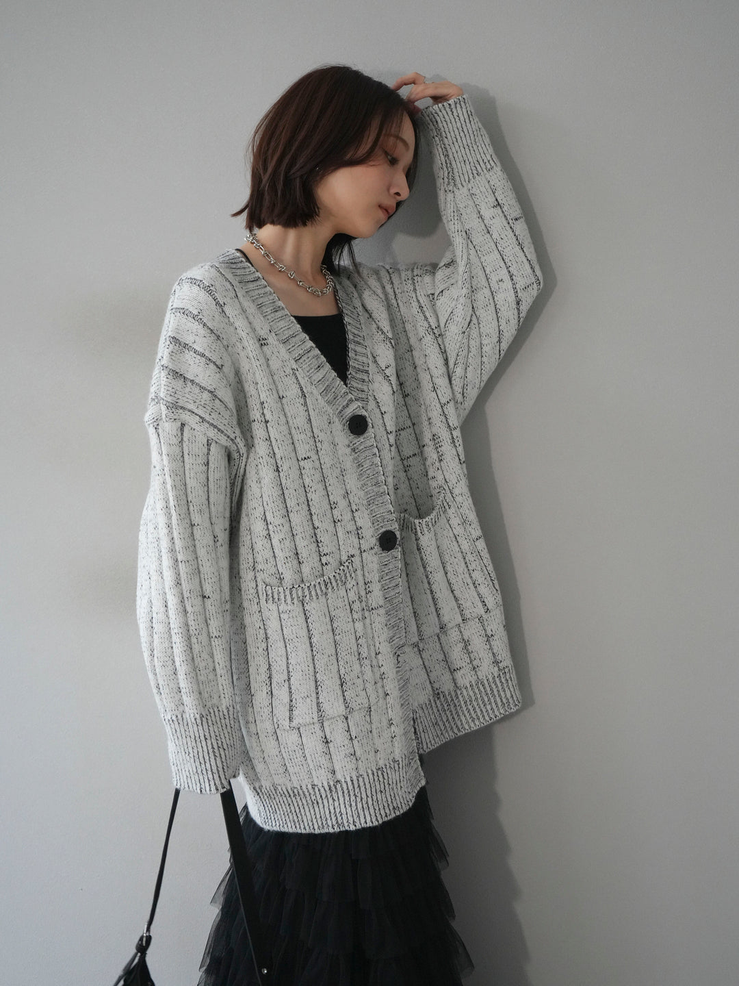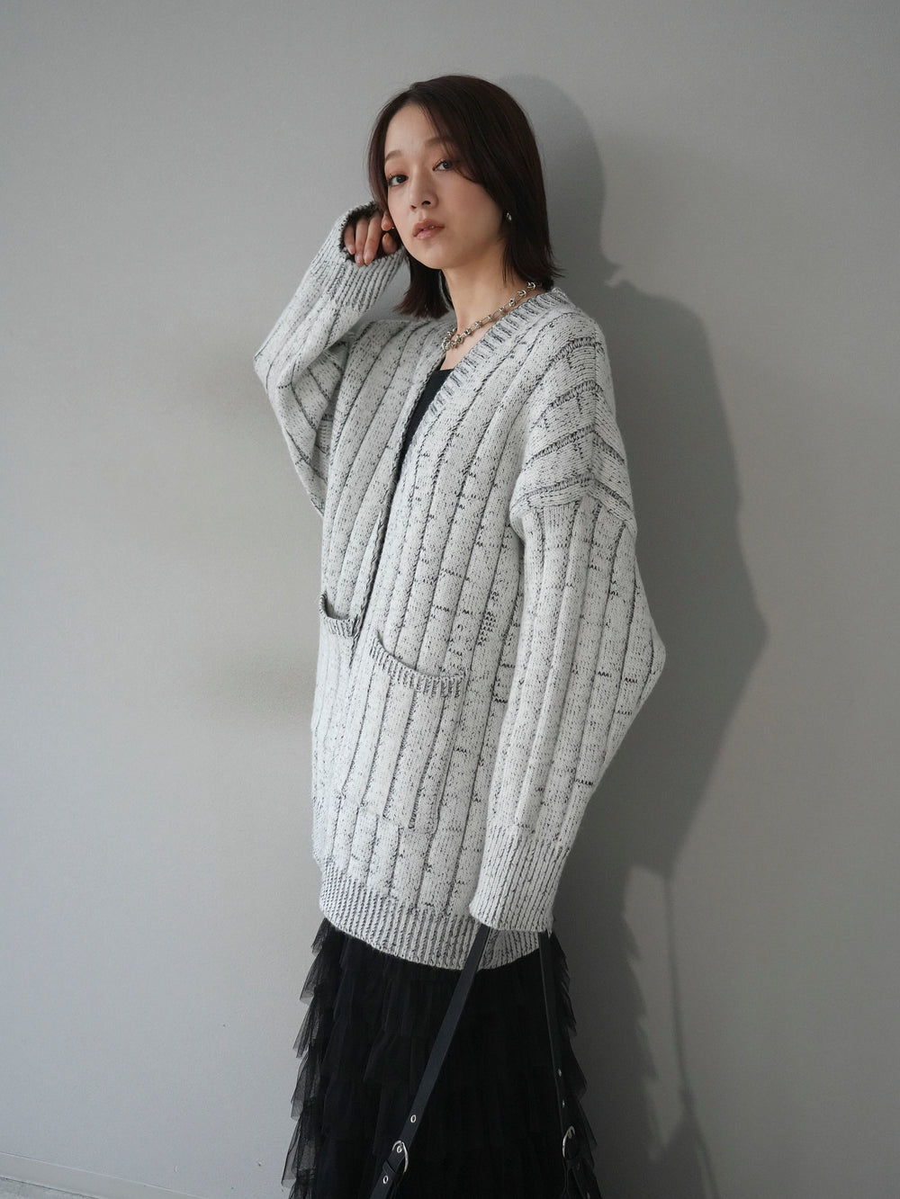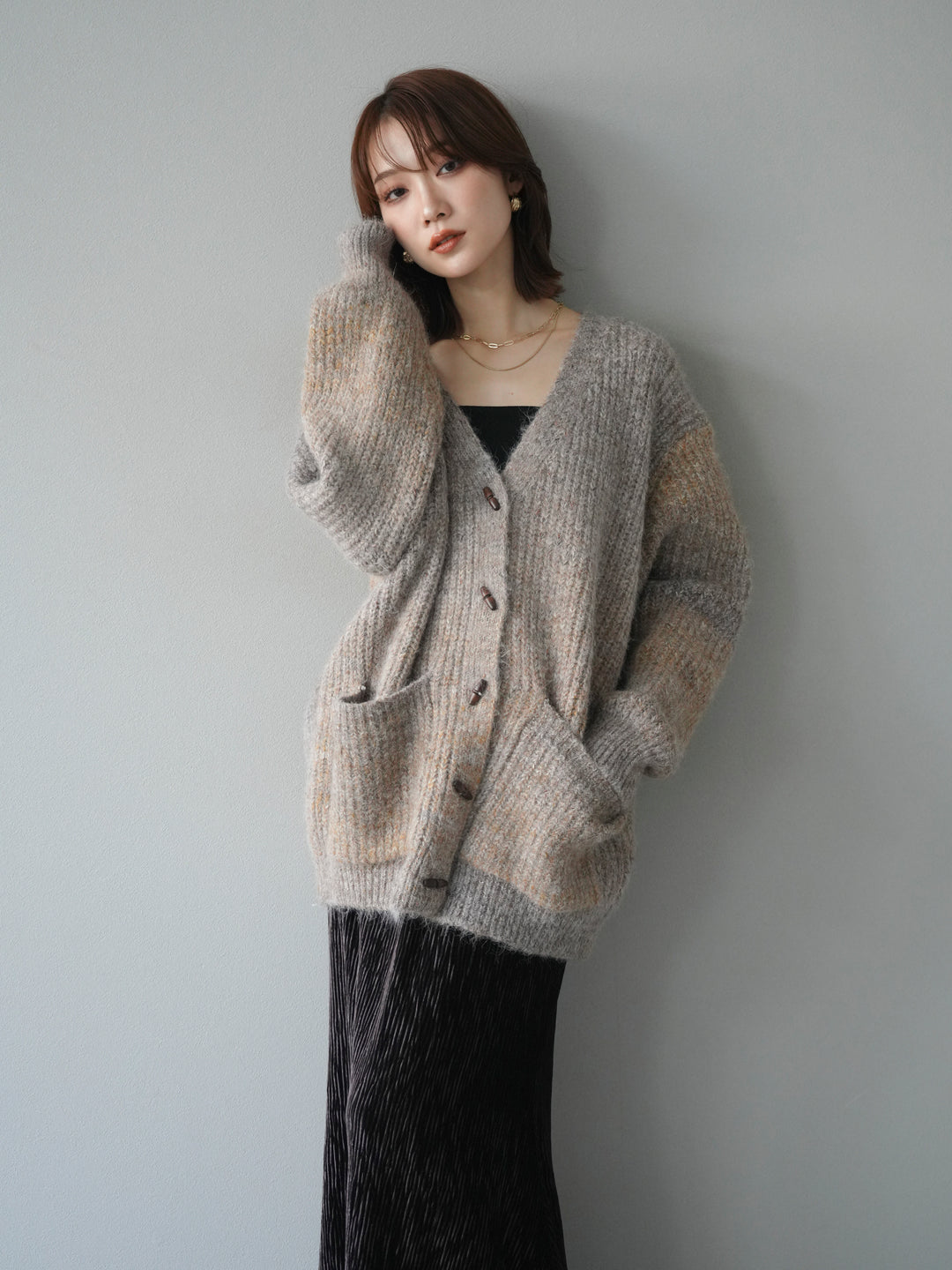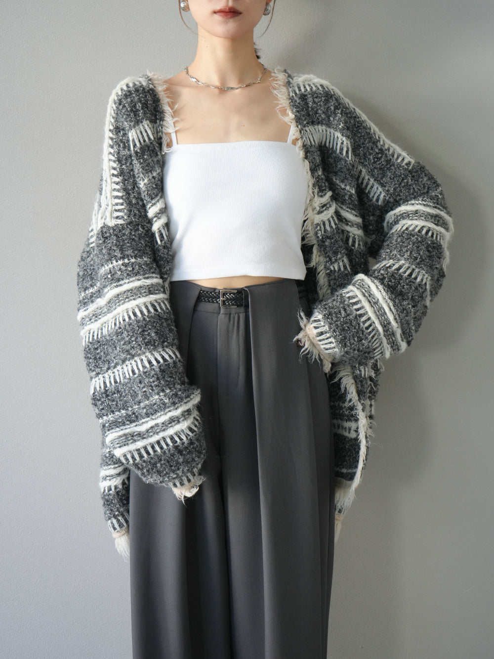 [予約]ミックスフリンジオーバーニットカーディガン/gray