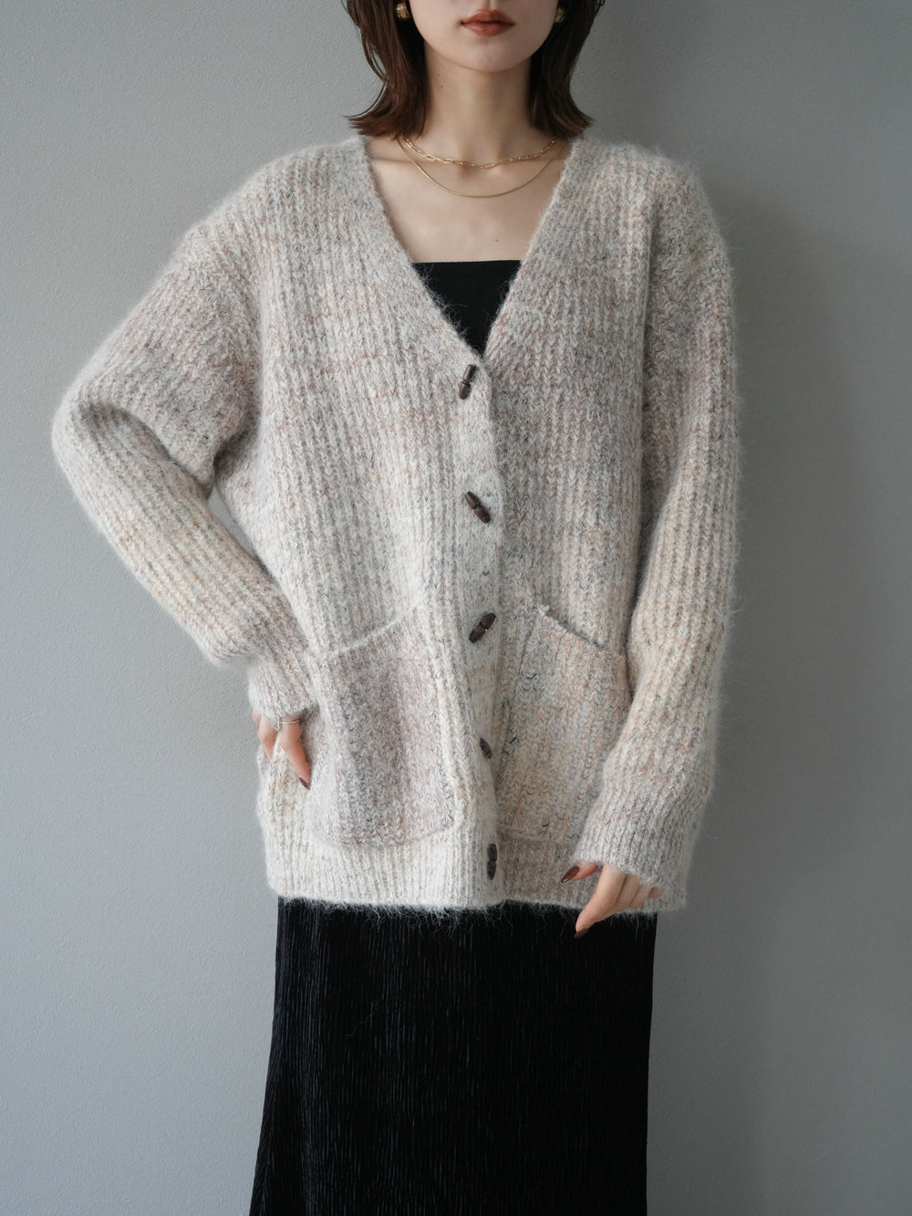 [予約]トグルボタン畦編みオーバニットカーディガン/beige