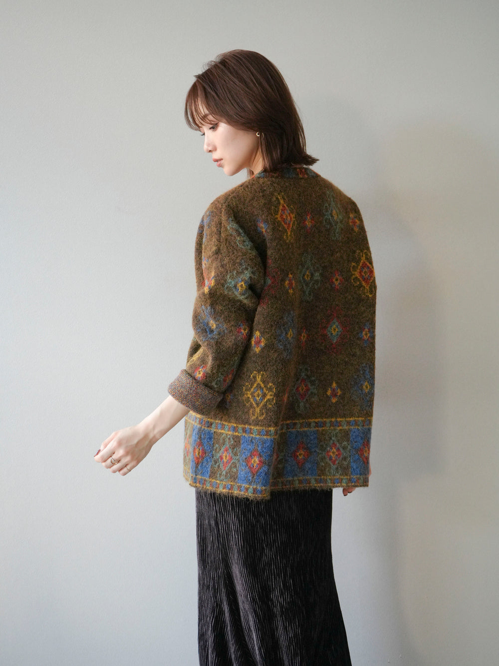 [予約]ミックスヤーンペイズリー柄ニットカーディガン/ブラウン