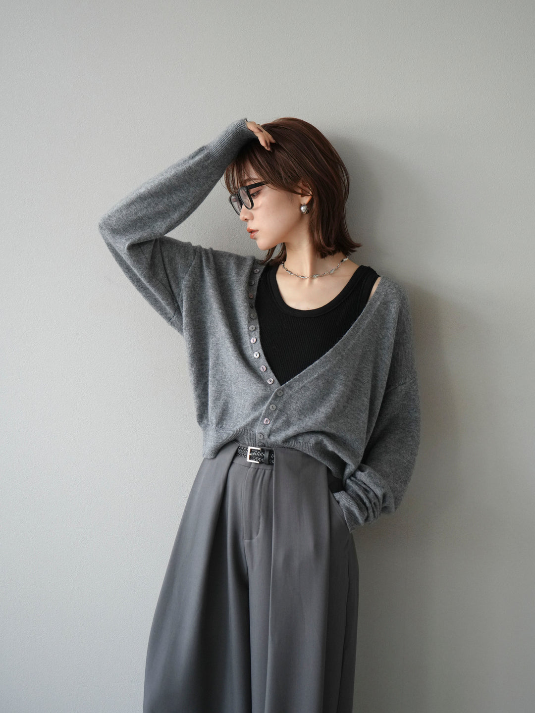 [予約]デザインボタンニットカーディガン&タンクトップSET/グレー