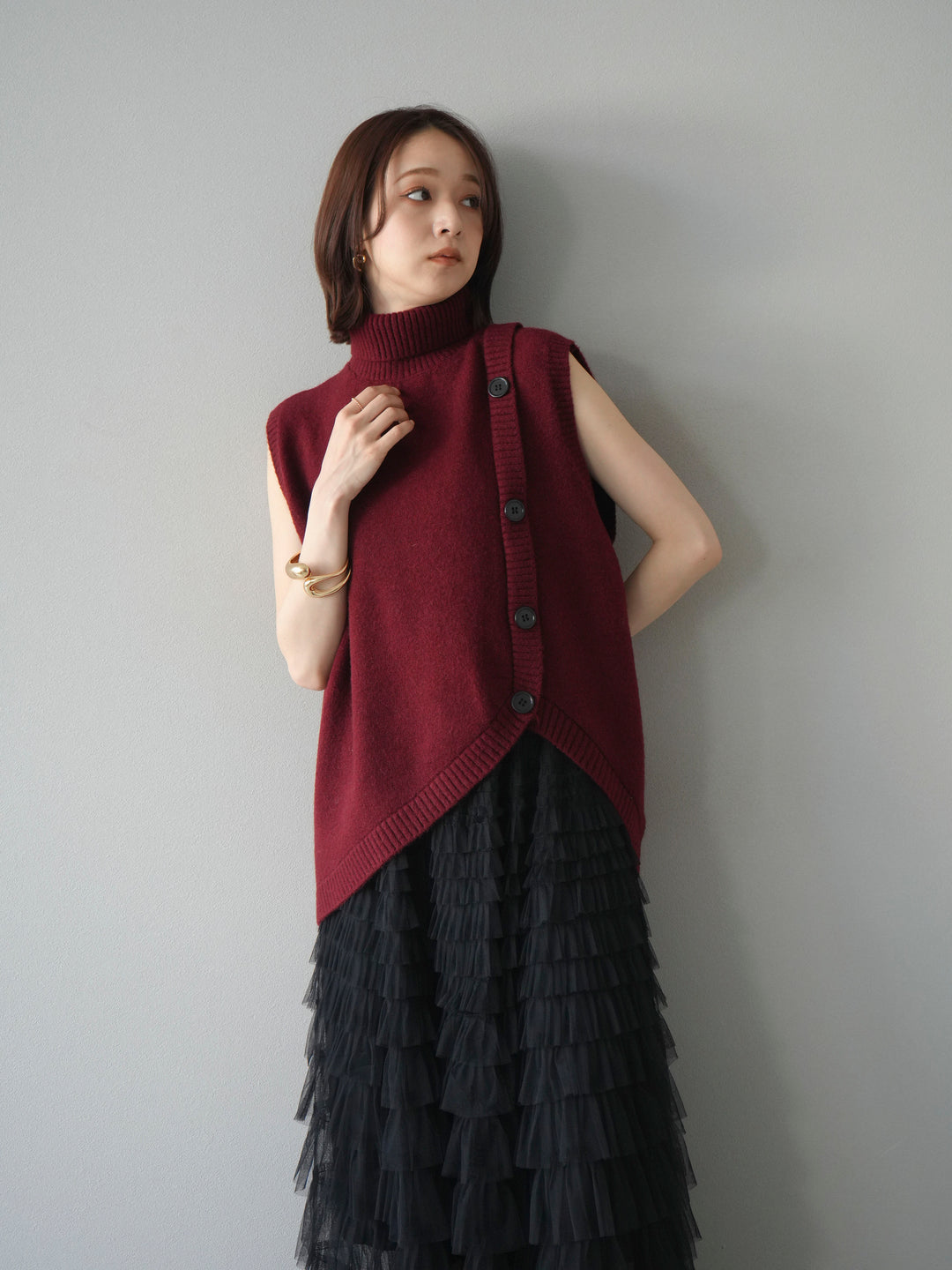 [予約]スタンドネックダブルZIPニットカーディガン/ivory