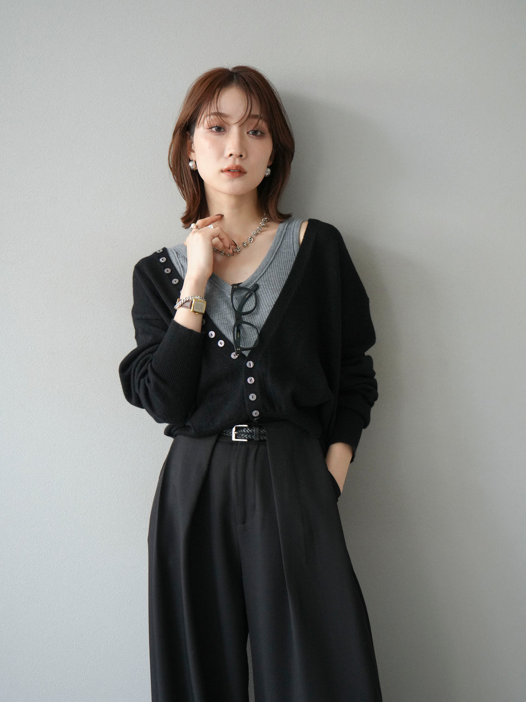 [予約]デザインボタンニットカーディガン&タンクトップSET/ブラック