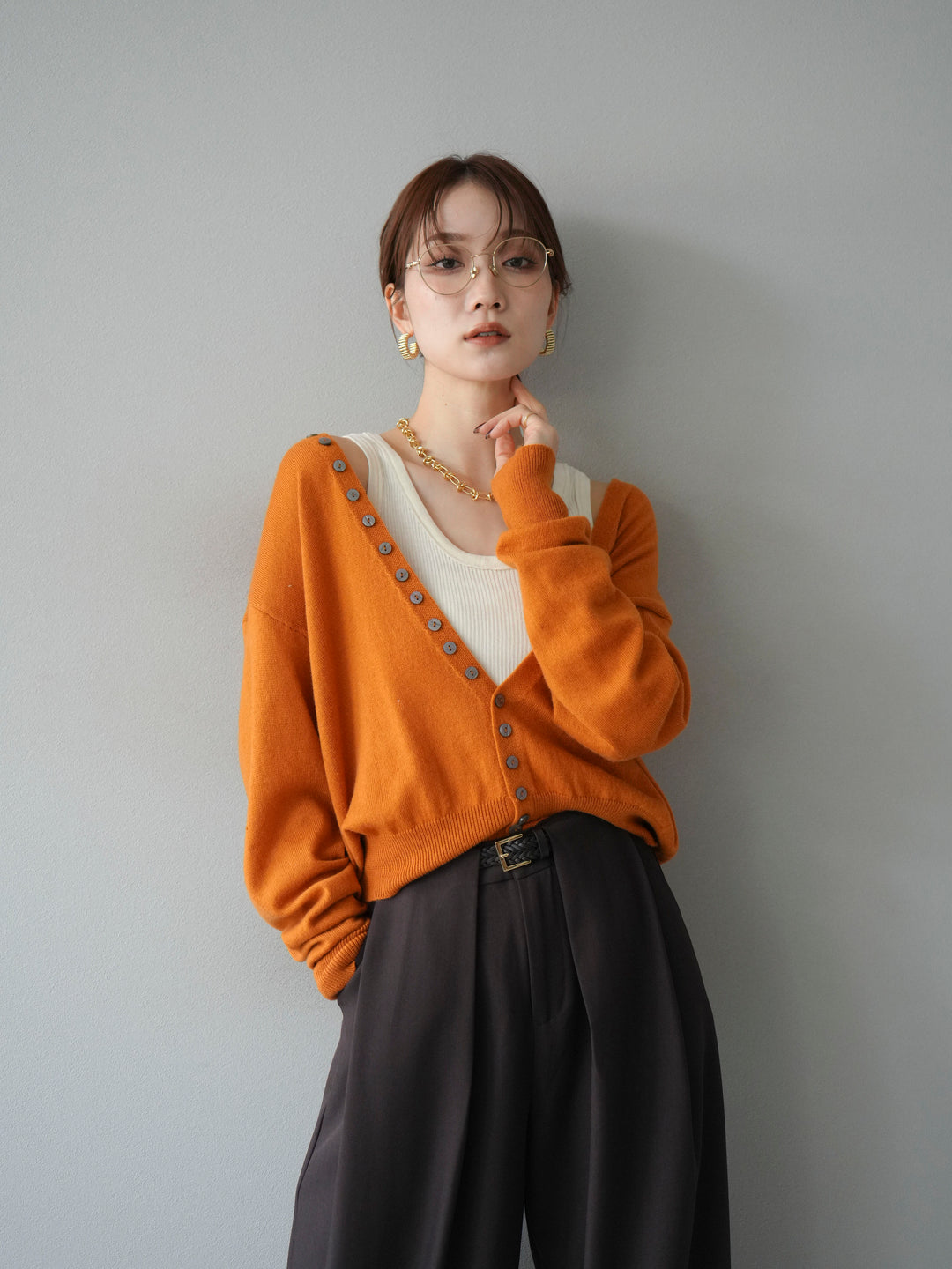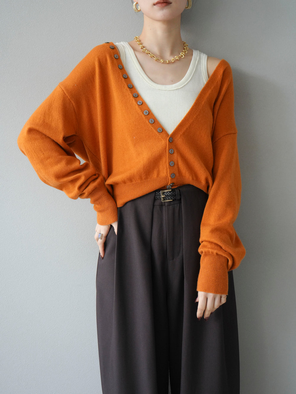 [予約]デザインボタンニットカーディガン&タンクトップSET/オレンジ
