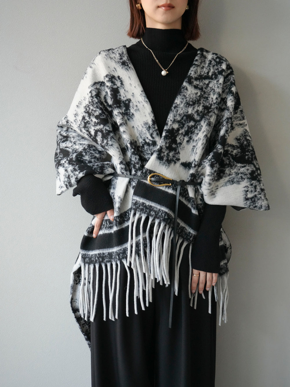 [予約]アブストラクト柄ストールポンチョ/グレー