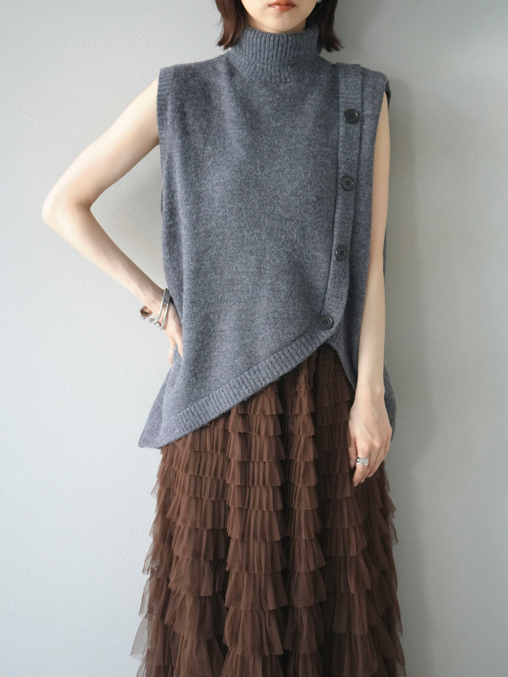 [予約]スタンドネックダブルZIPニットカーディガン/darkgray