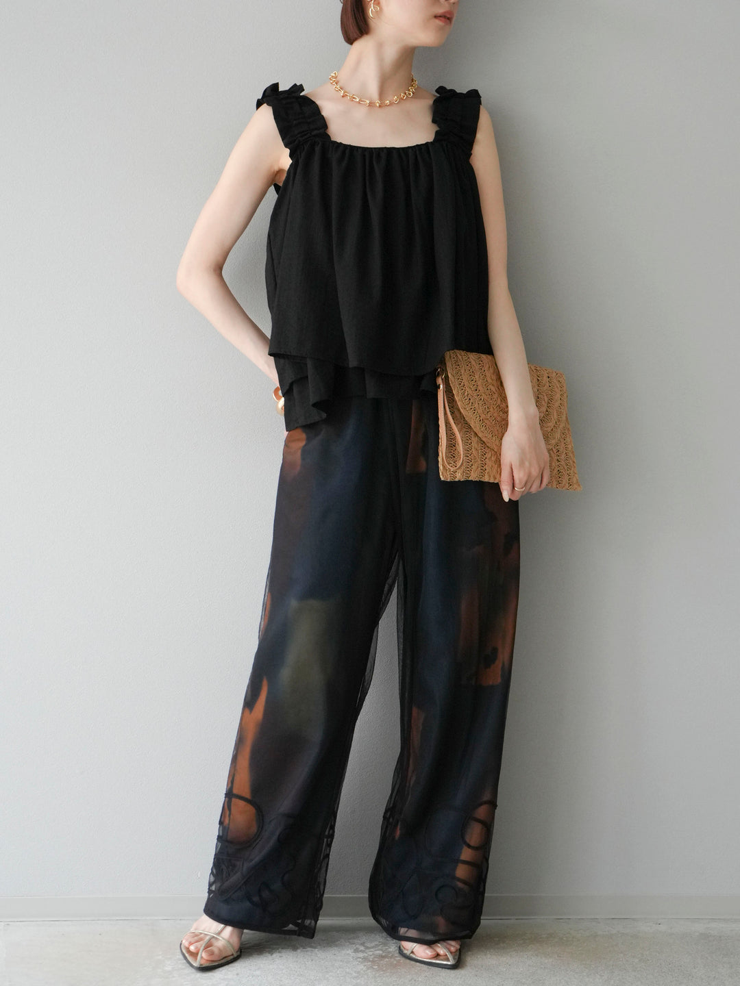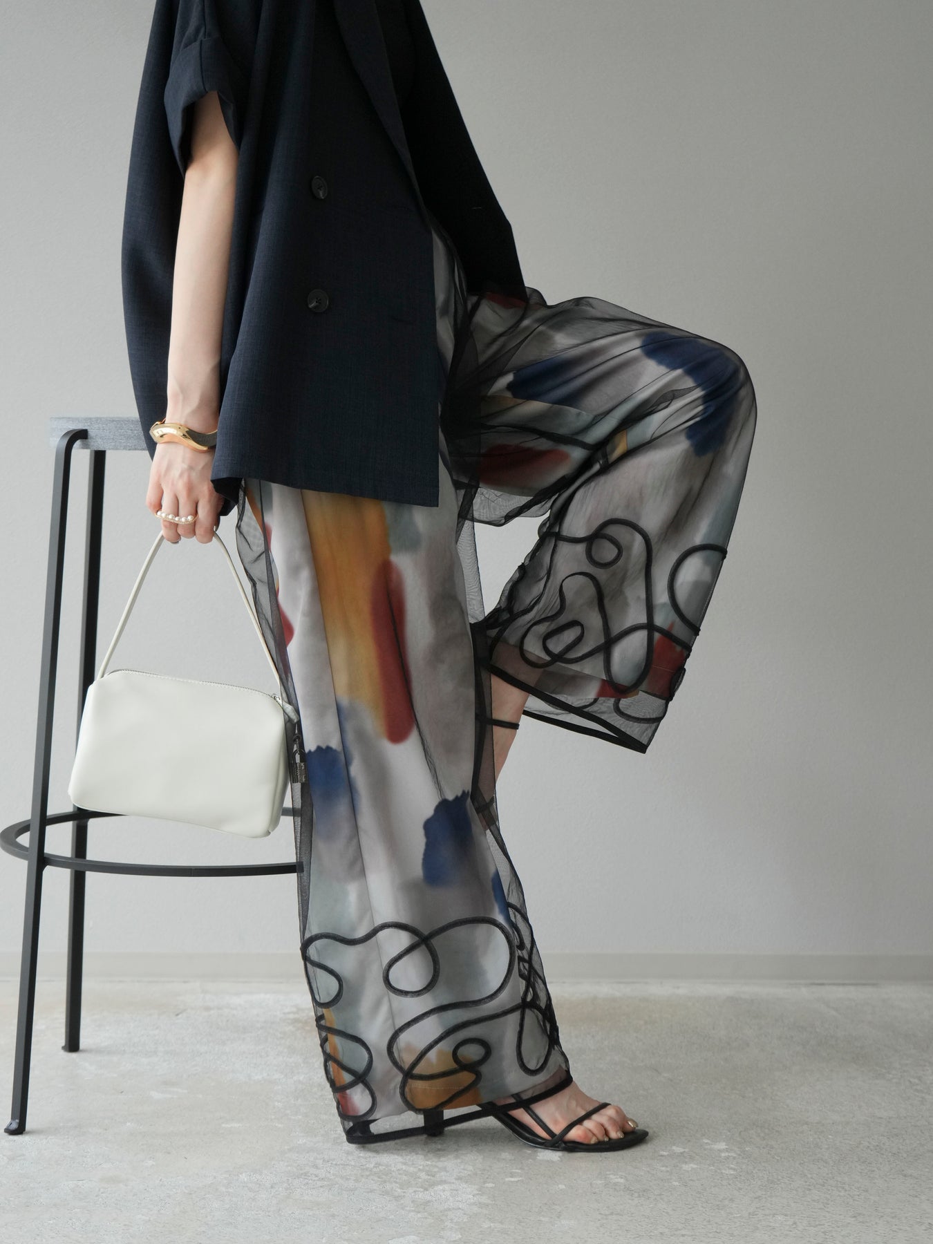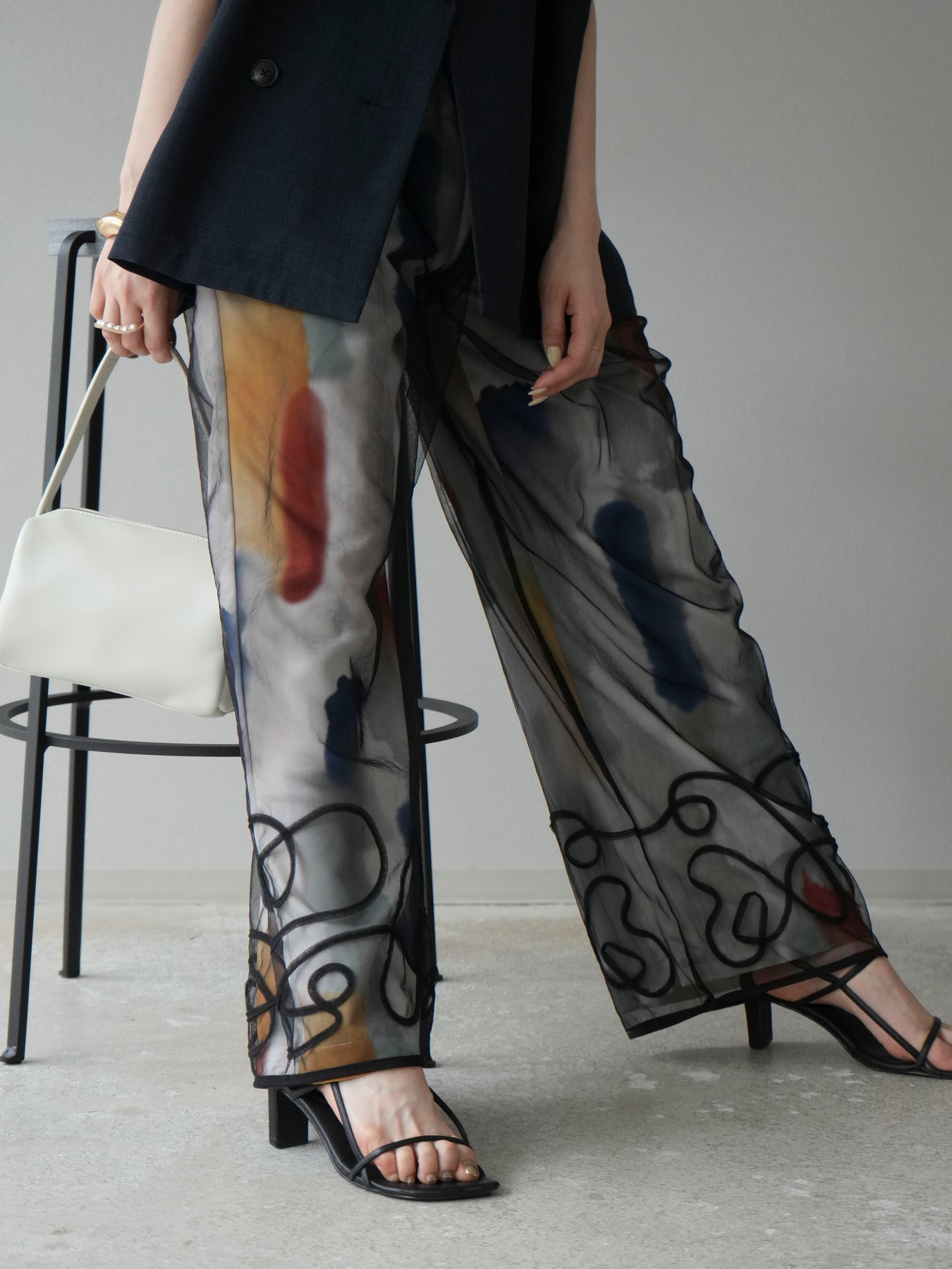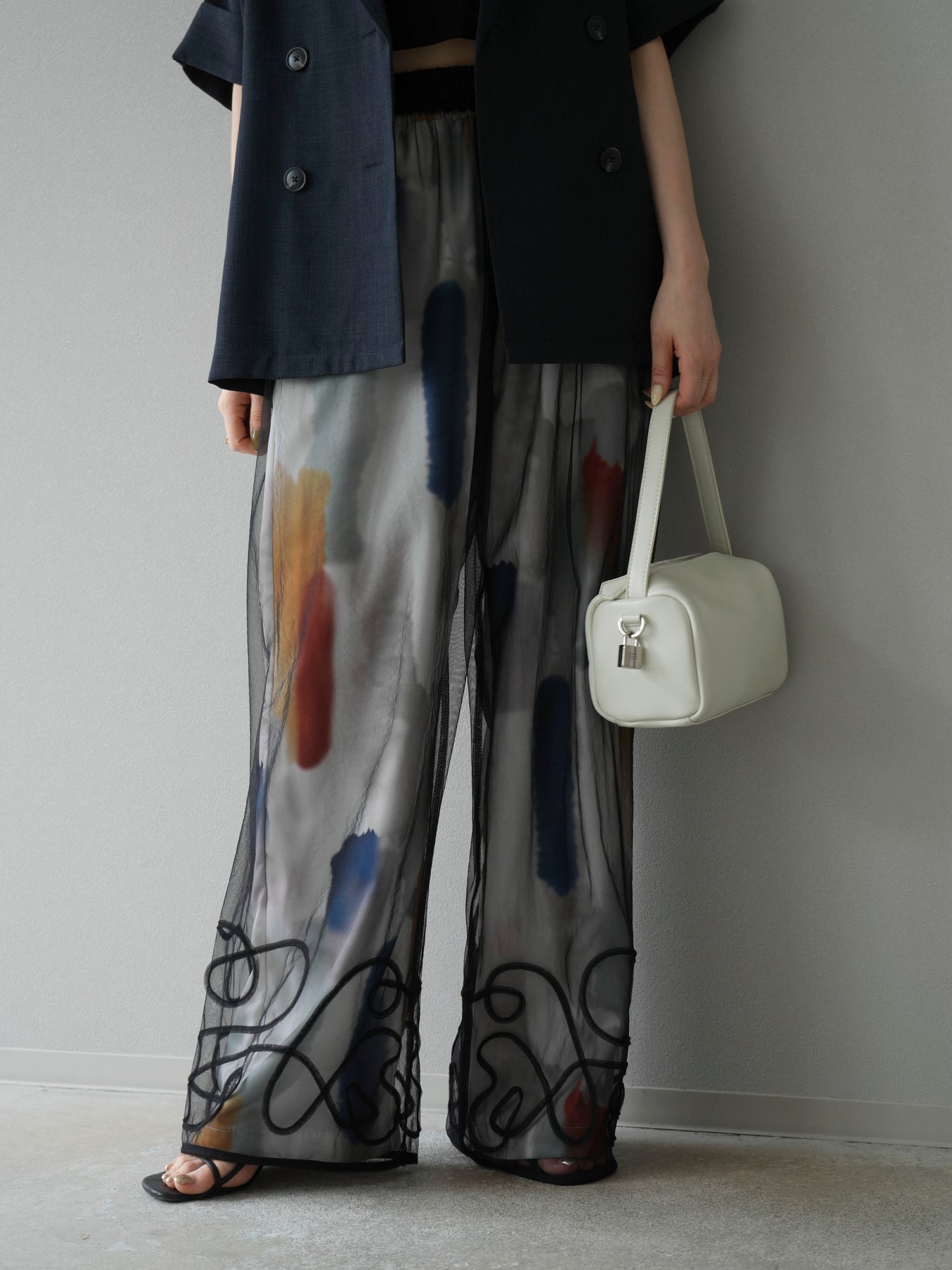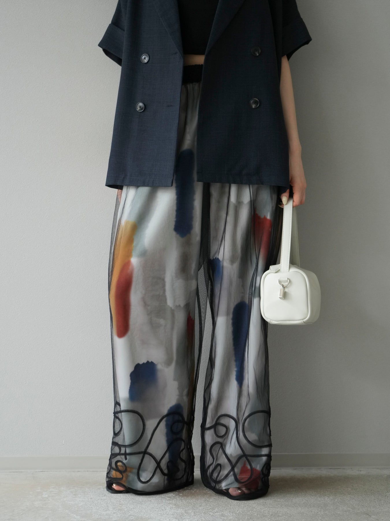 [SET]水彩アートイージーパンツ+コード刺繍チュールレイヤードパンツ(2set)