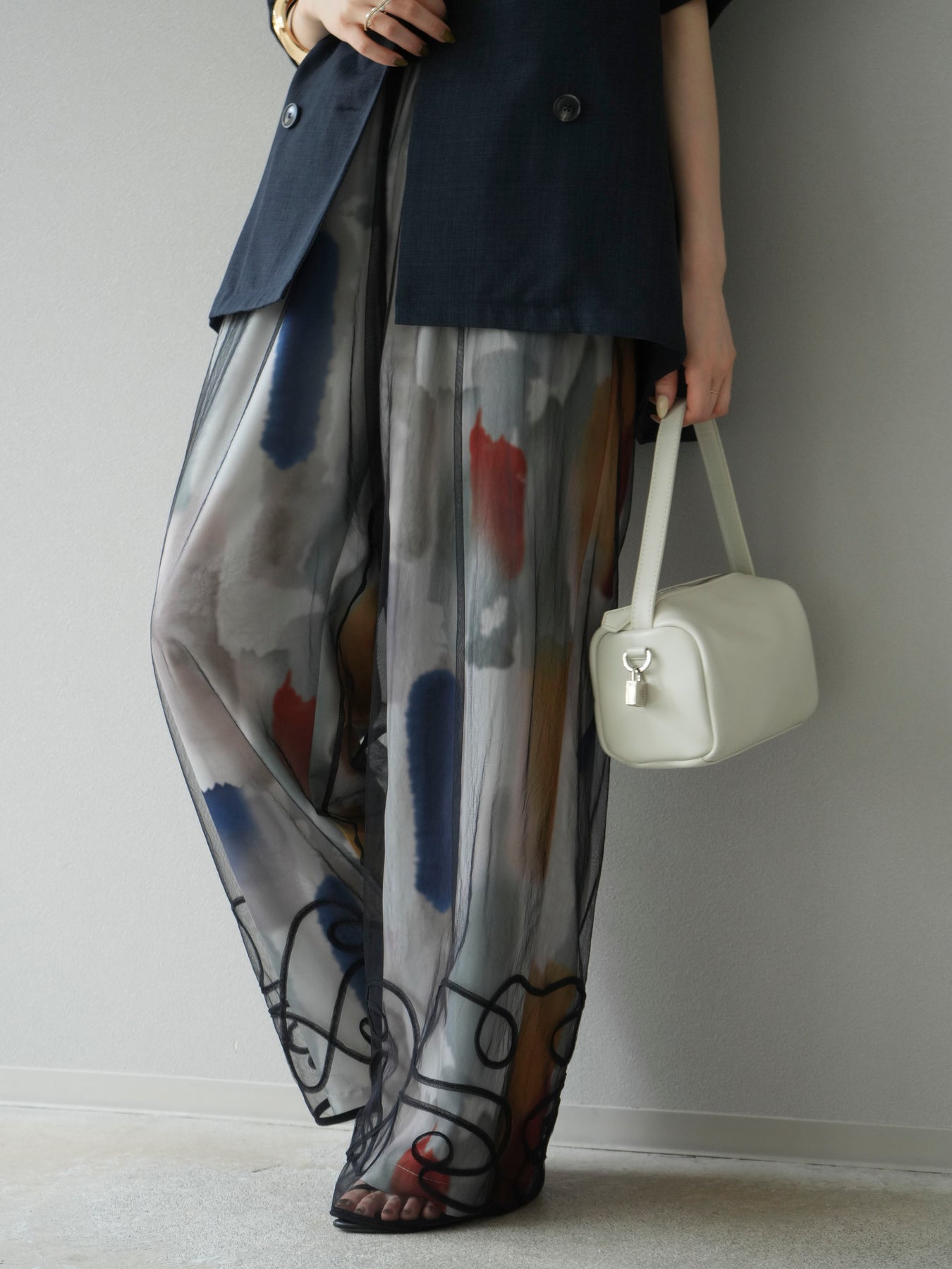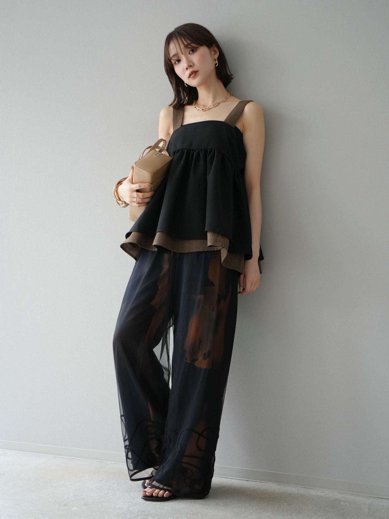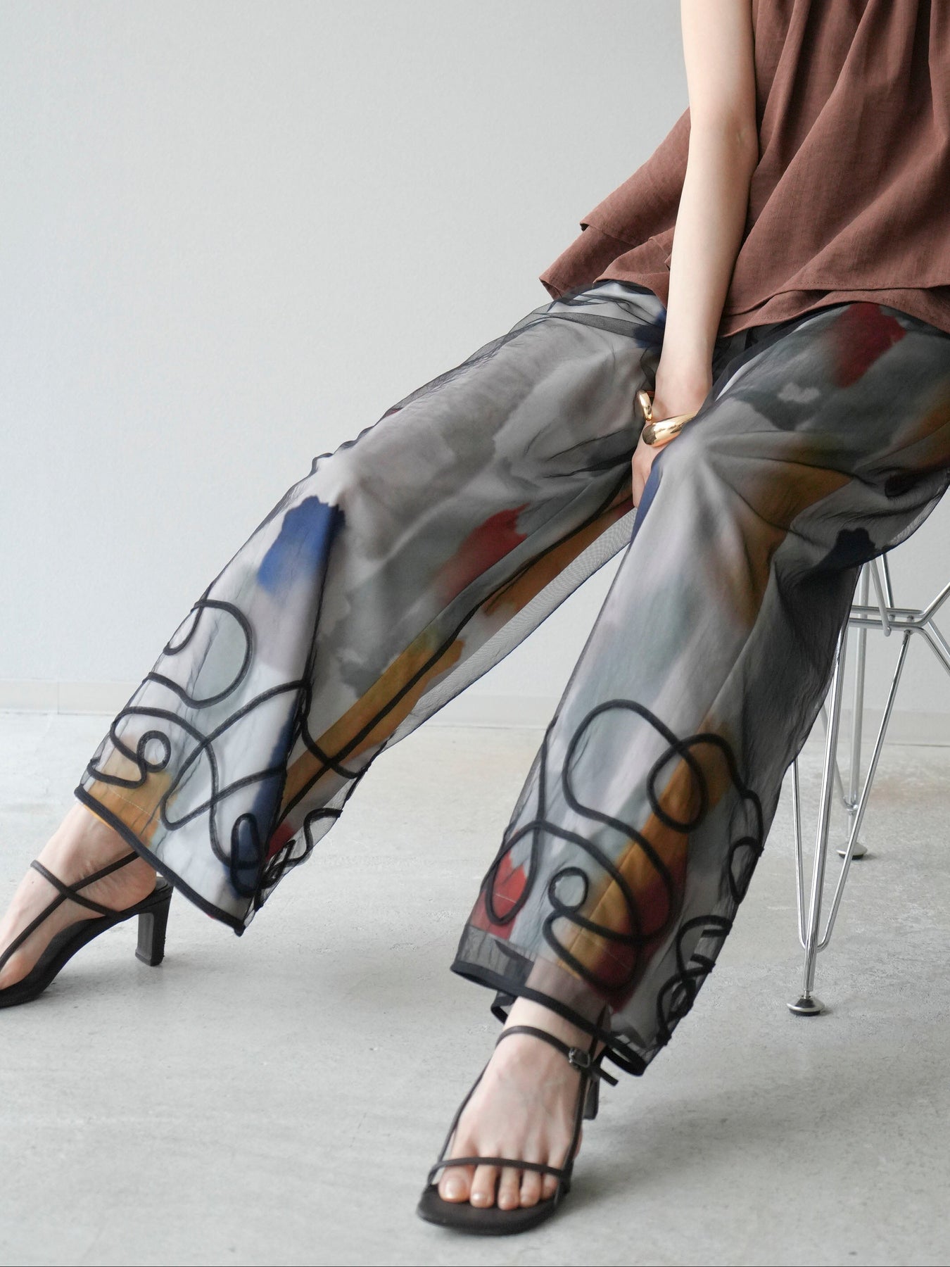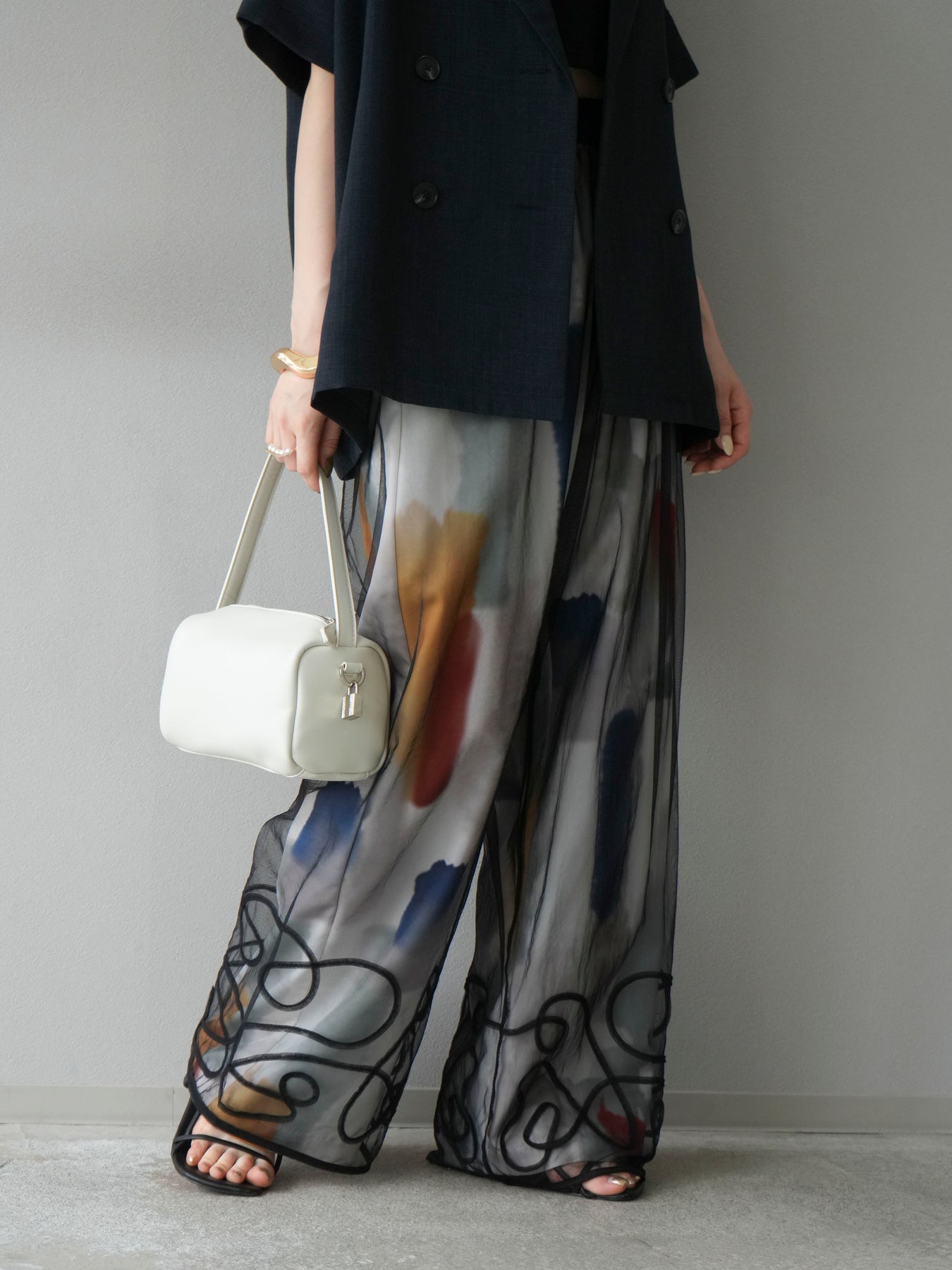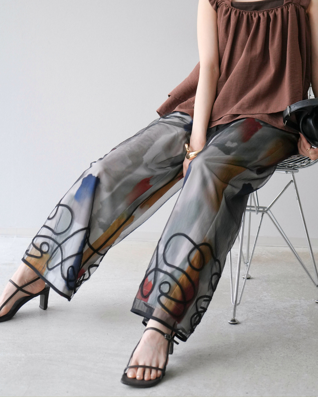 [SET]水彩アートイージーパンツ+コード刺繍チュールレイヤードパンツ(2set)