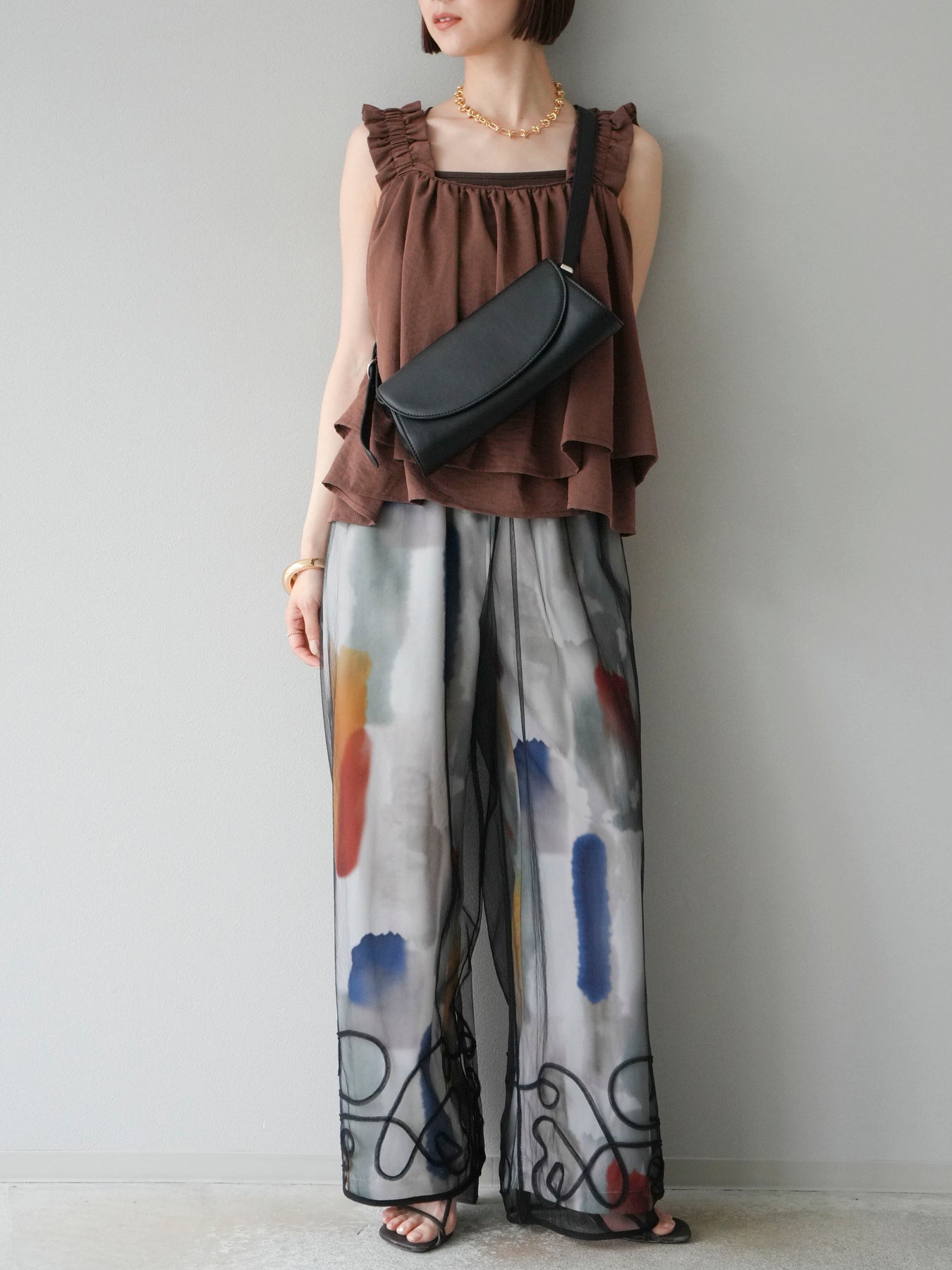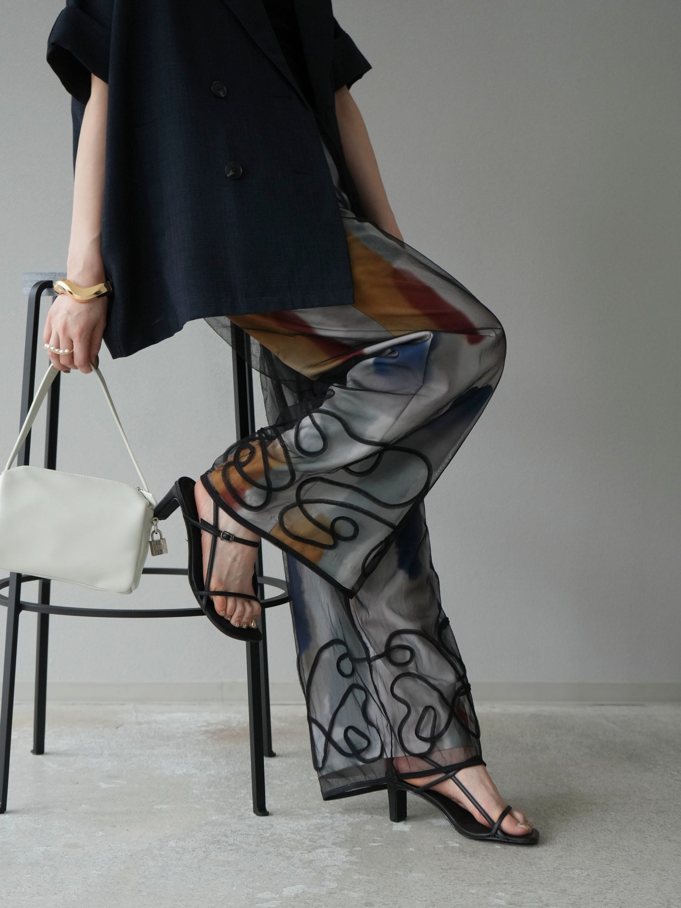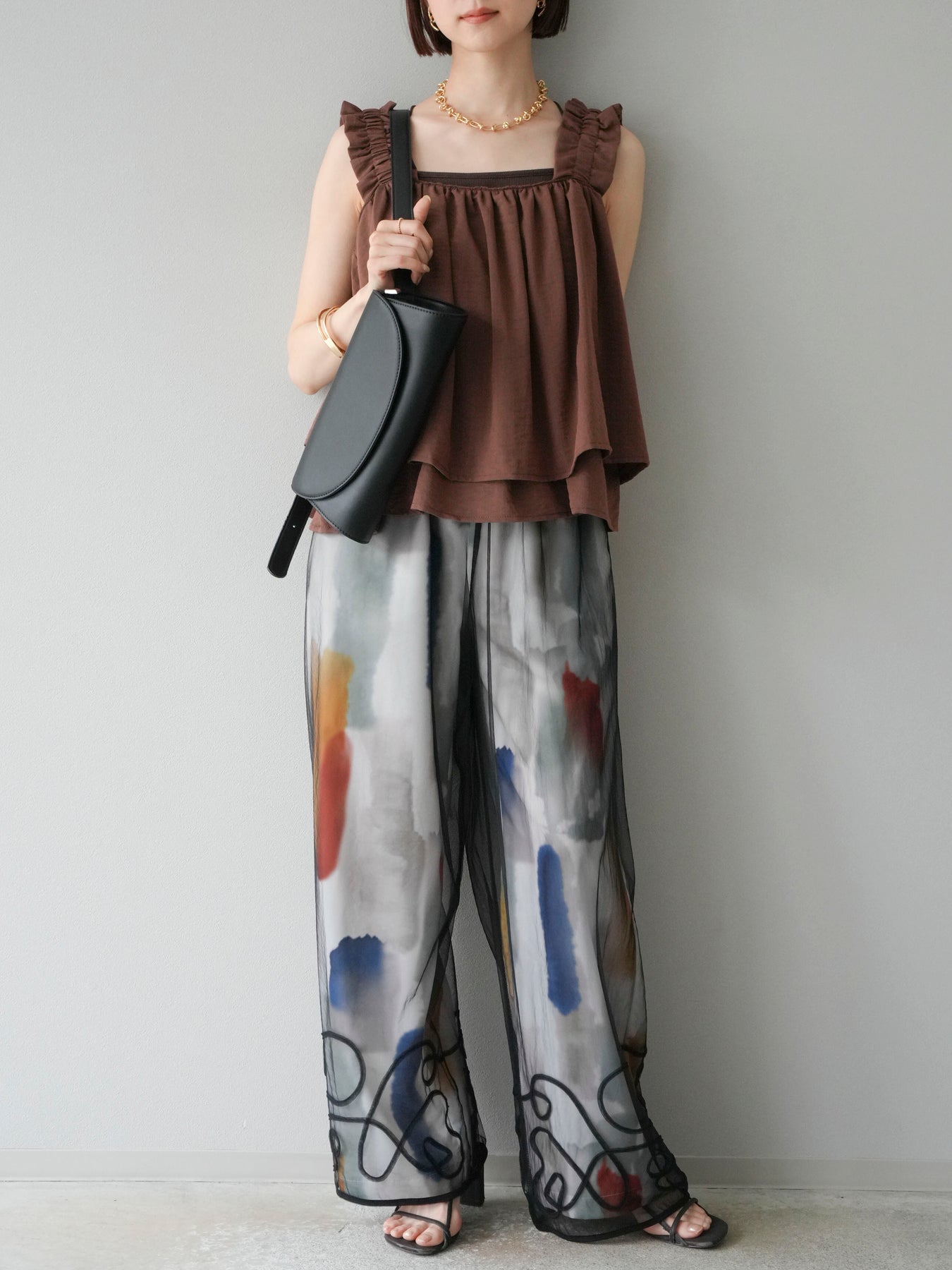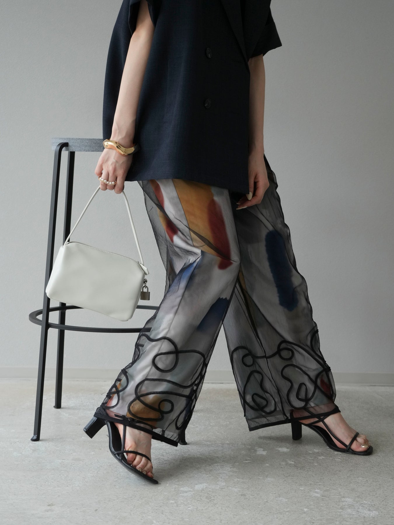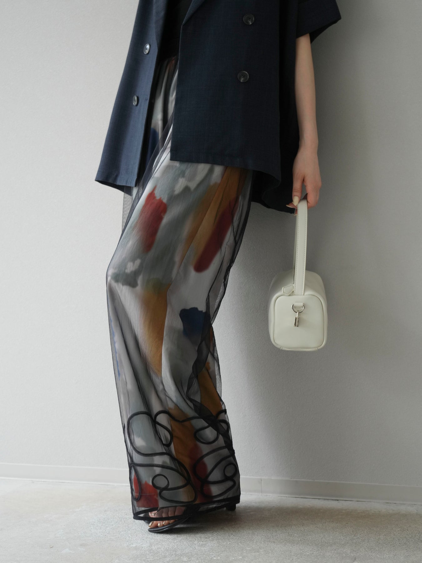 [SET]水彩アートイージーパンツ+コード刺繍チュールレイヤードパンツ(2set)