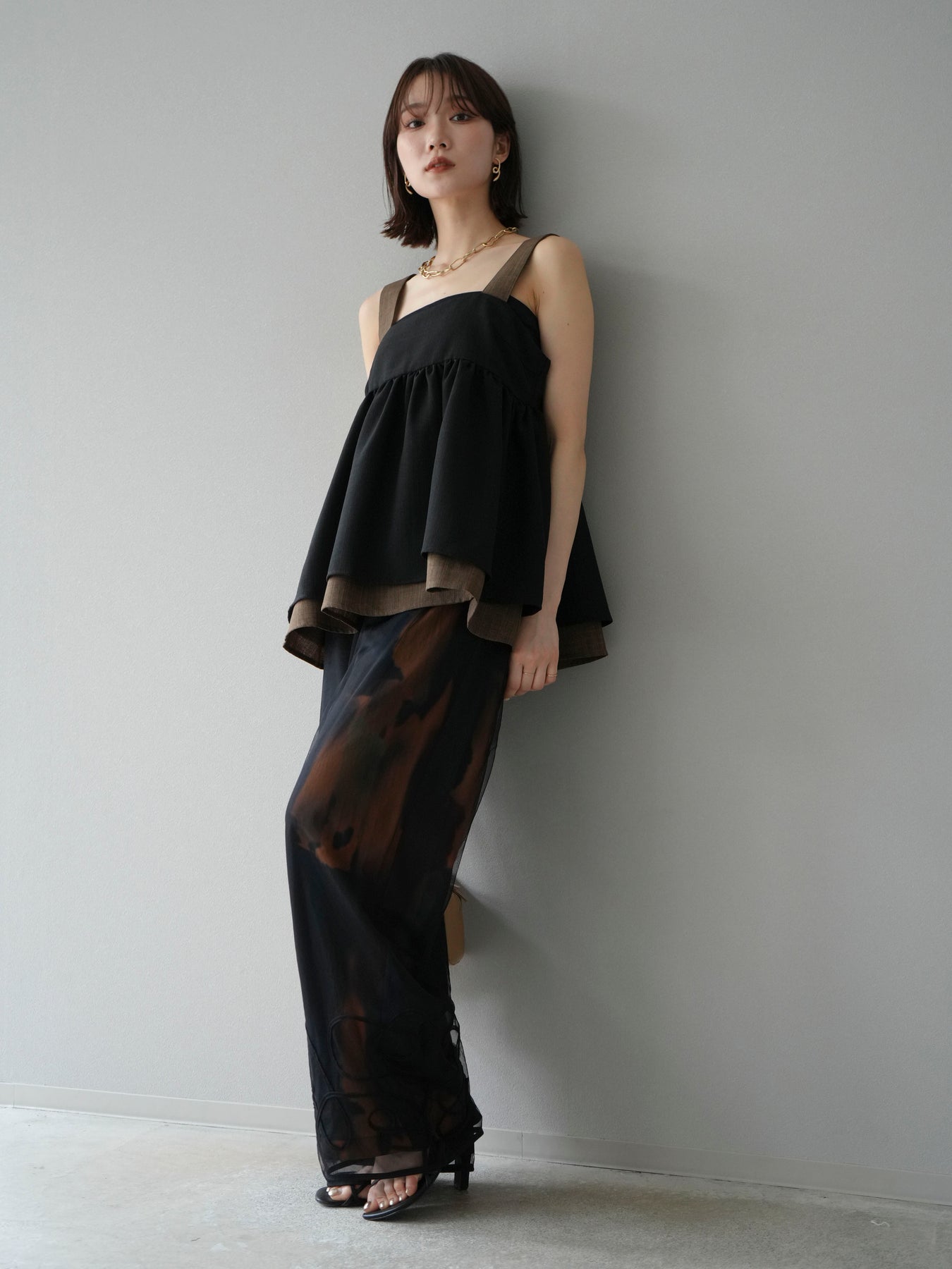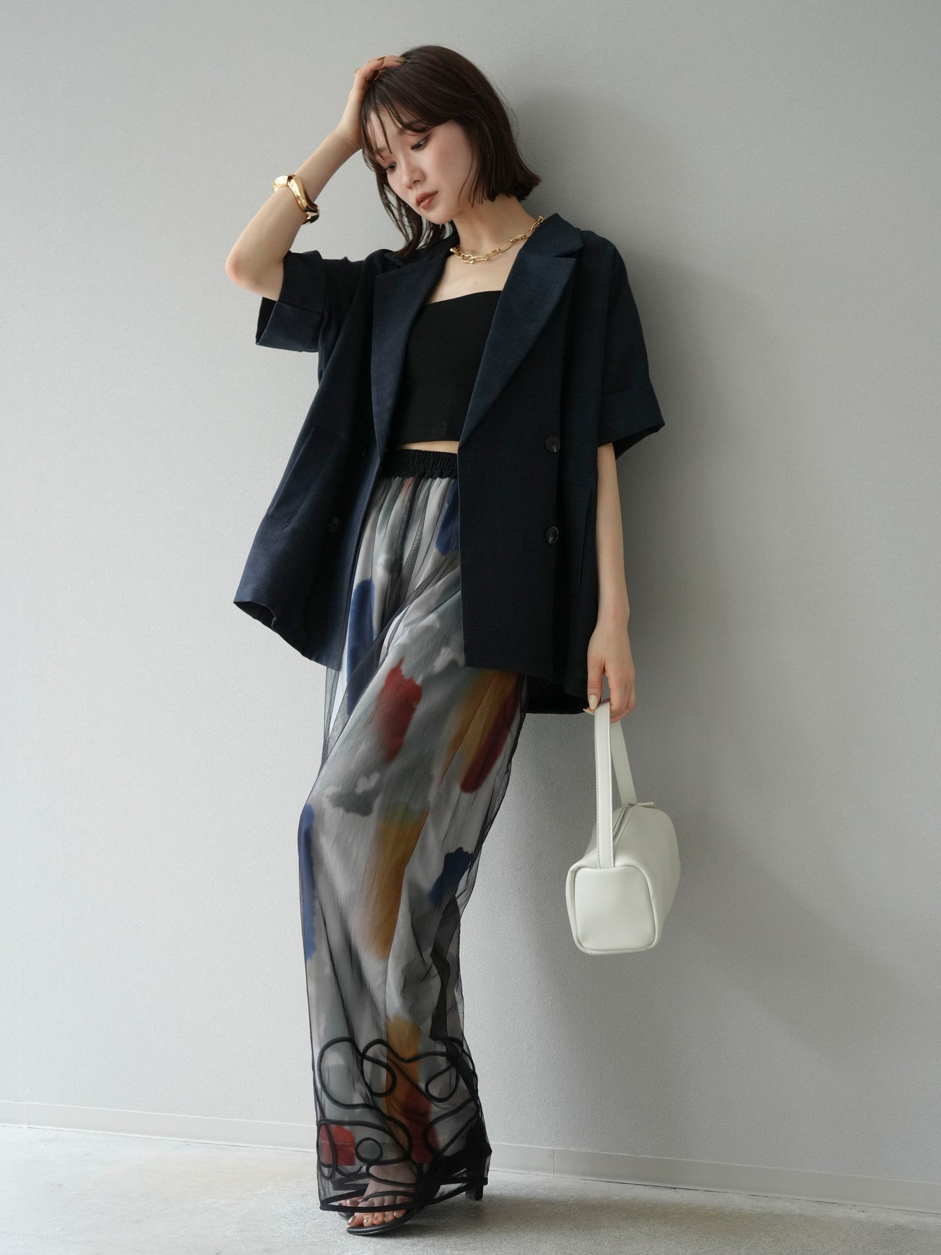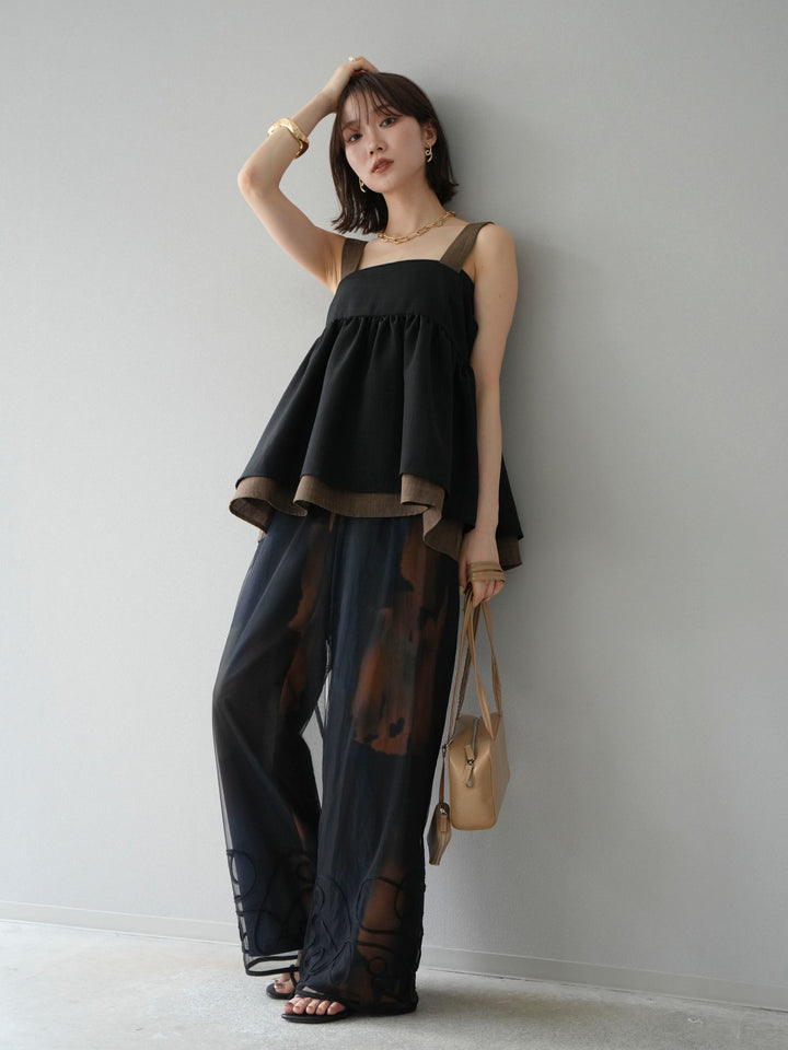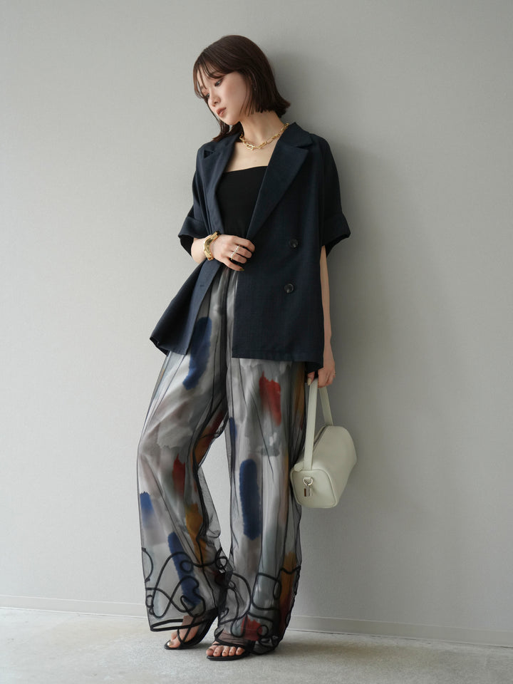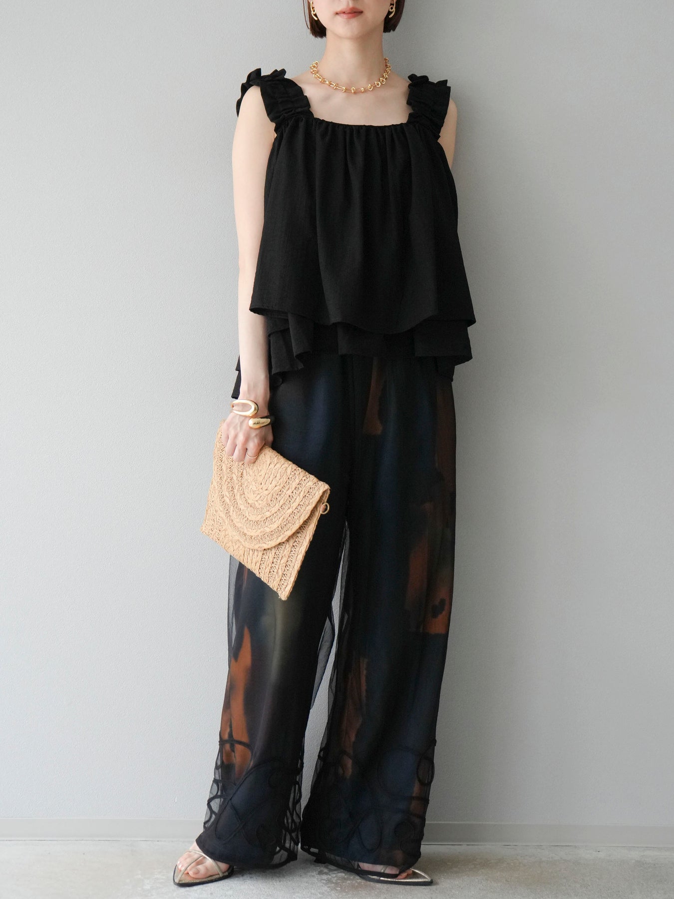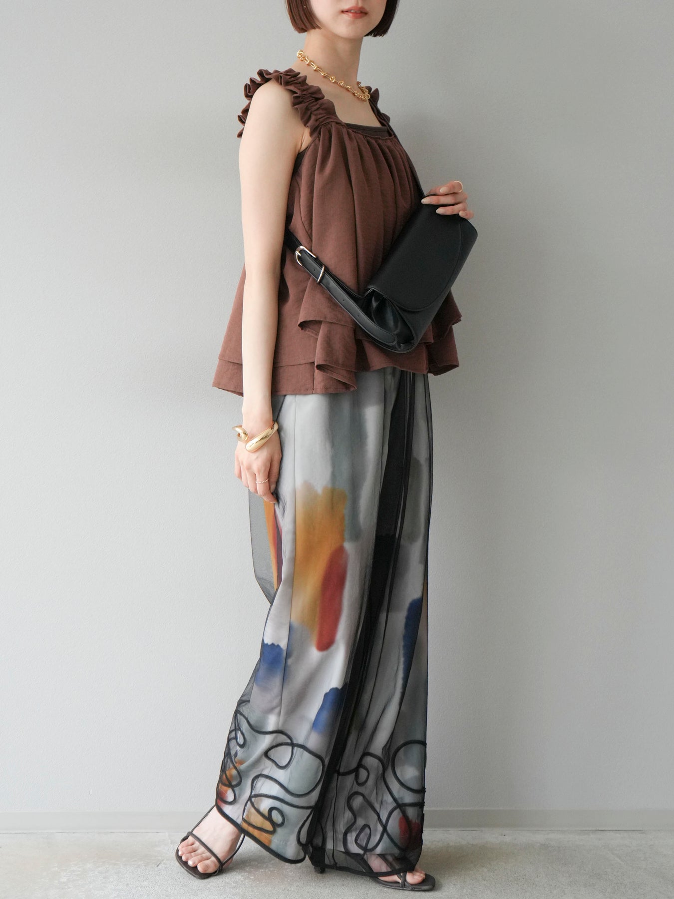 [SET]水彩アートイージーパンツ+コード刺繍チュールレイヤードパンツ(2set)