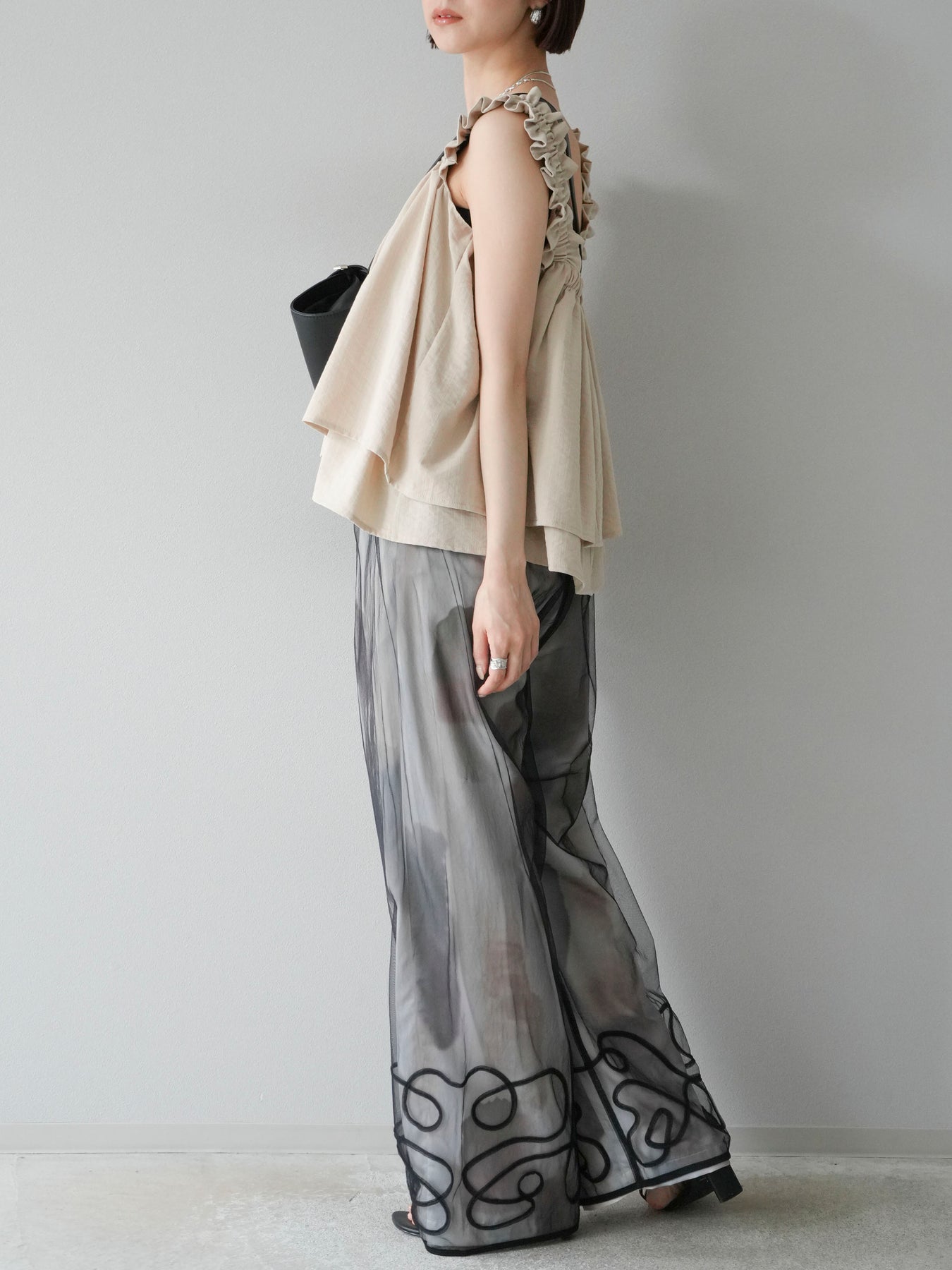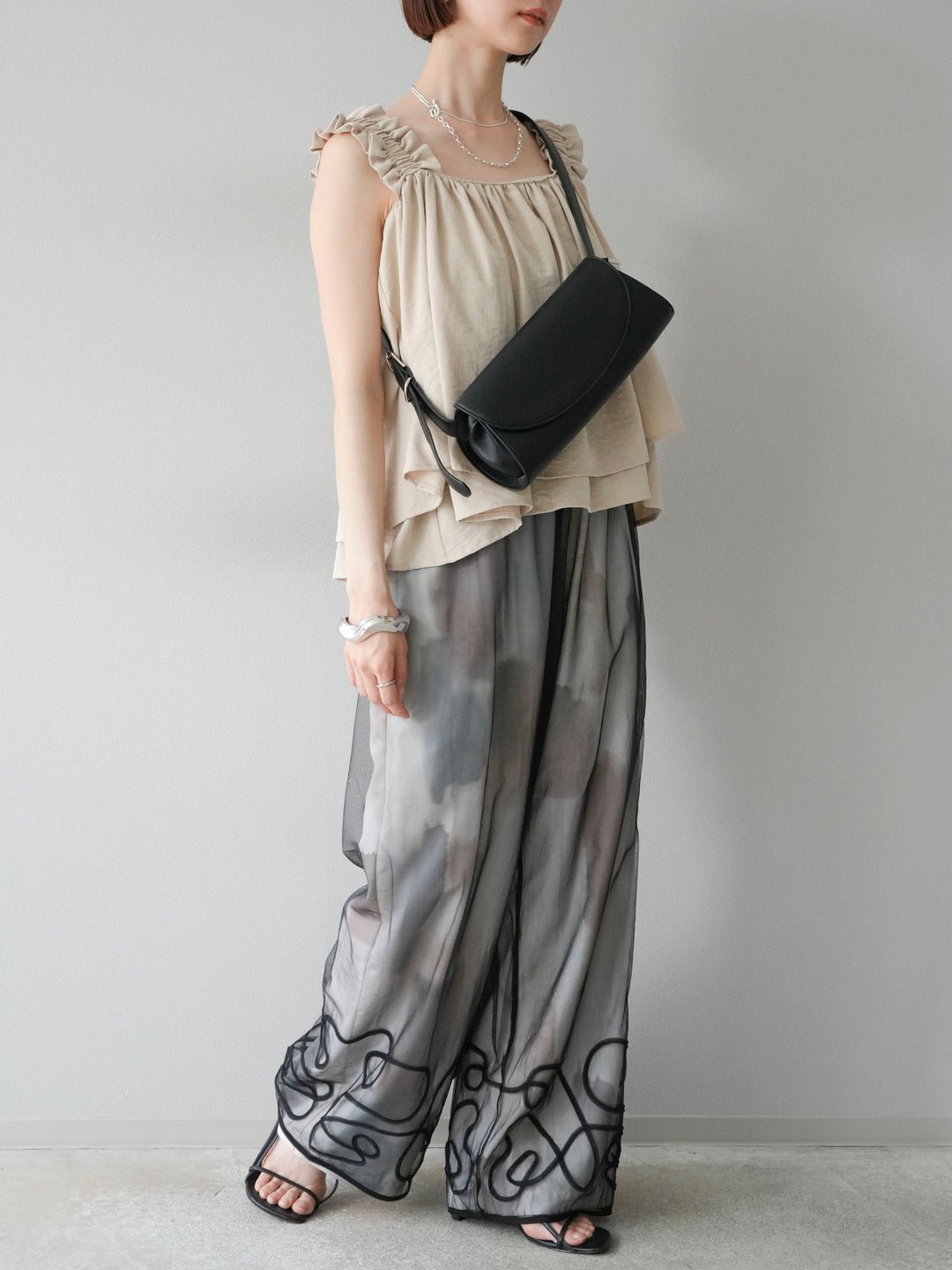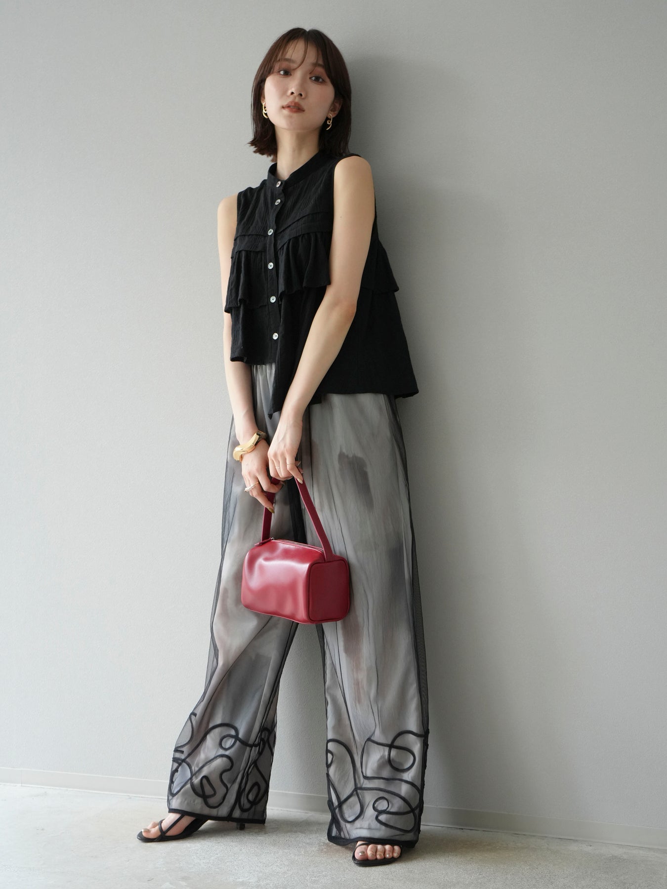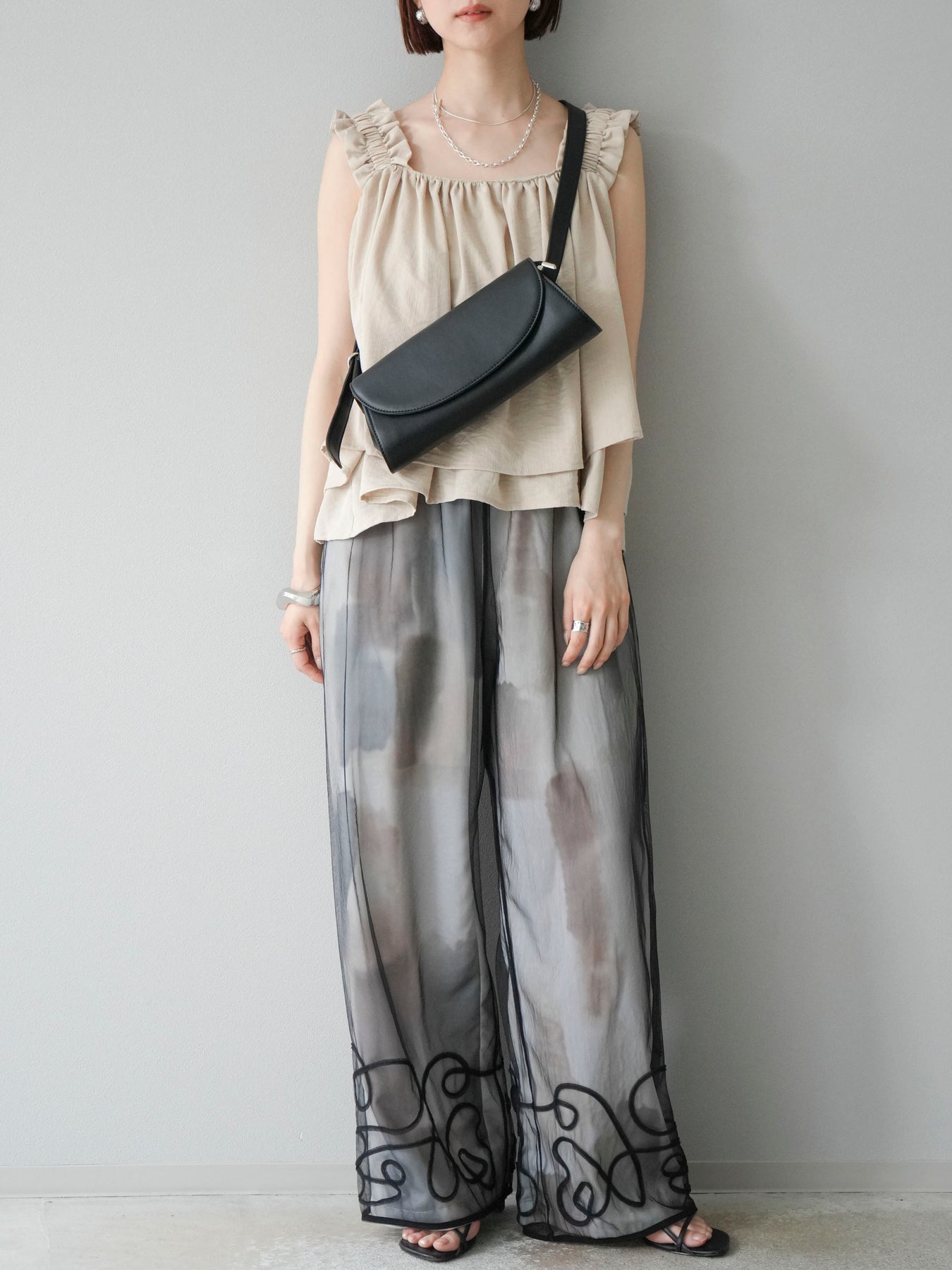 ◆ [予約]コード刺繍チュールレイヤードパンツ