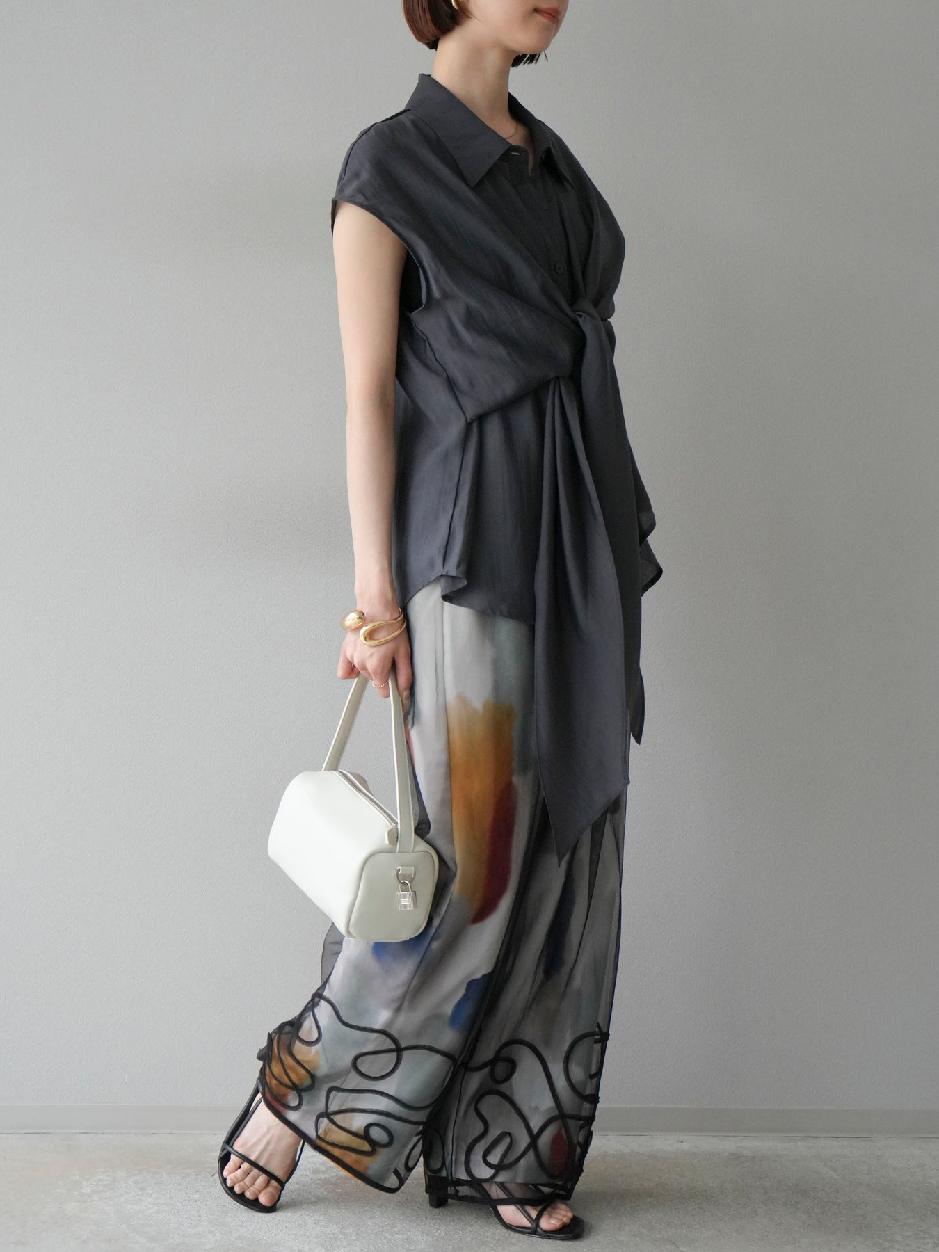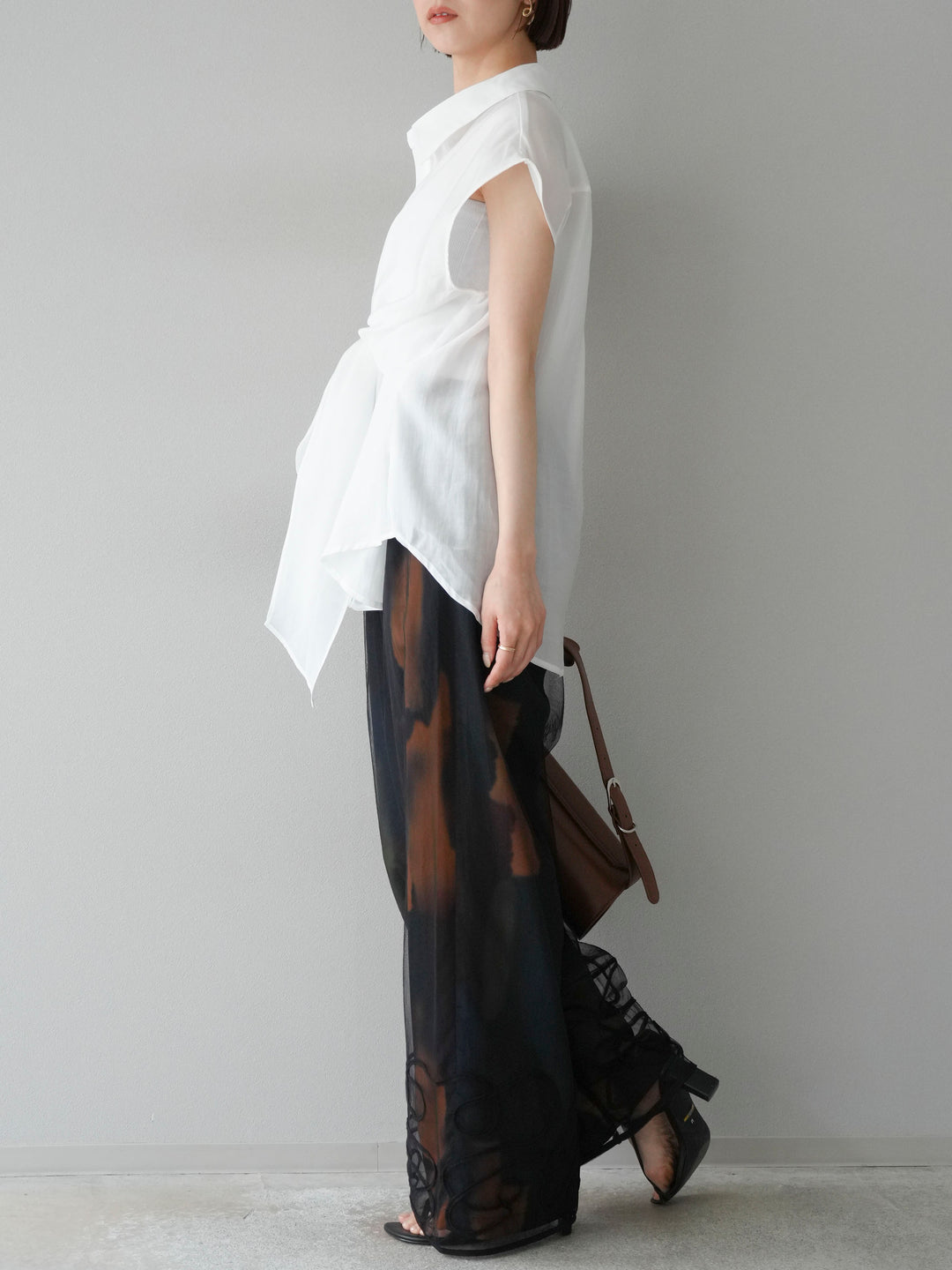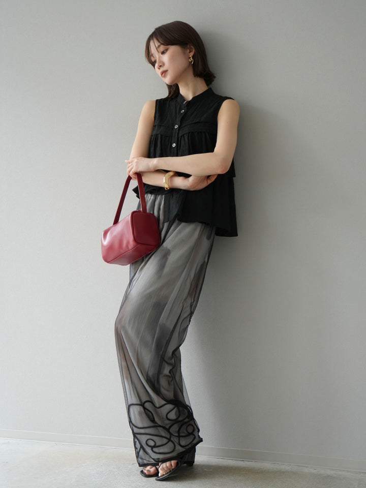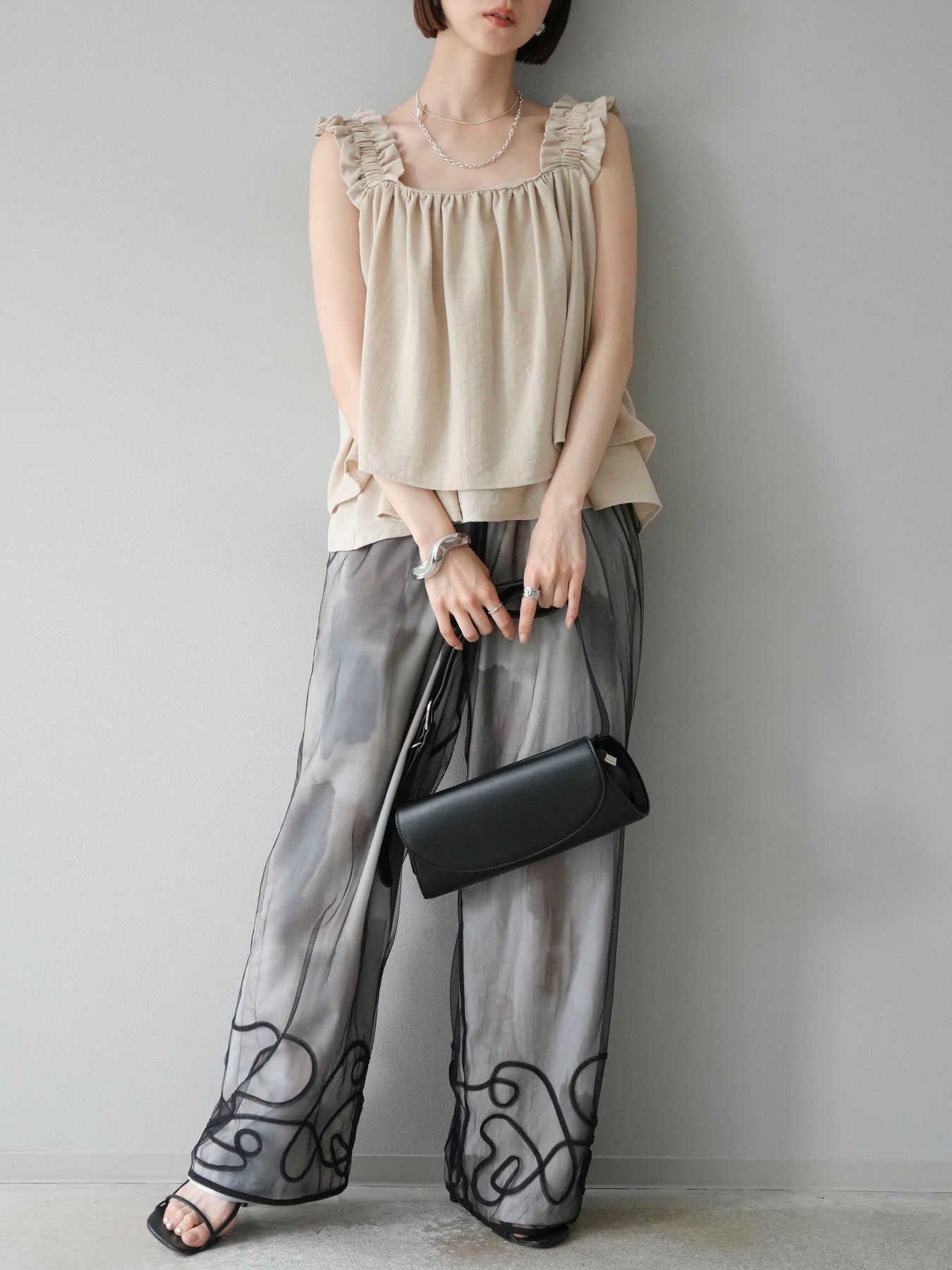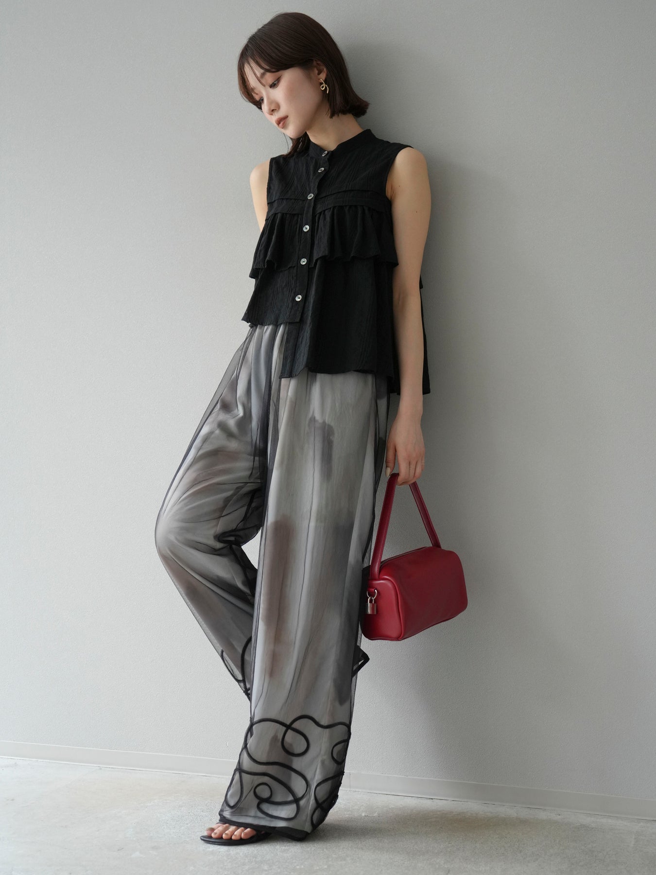 ◆ [予約]コード刺繍チュールレイヤードパンツ