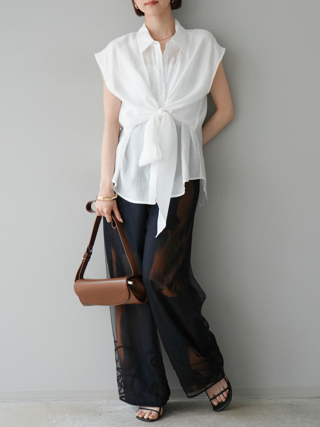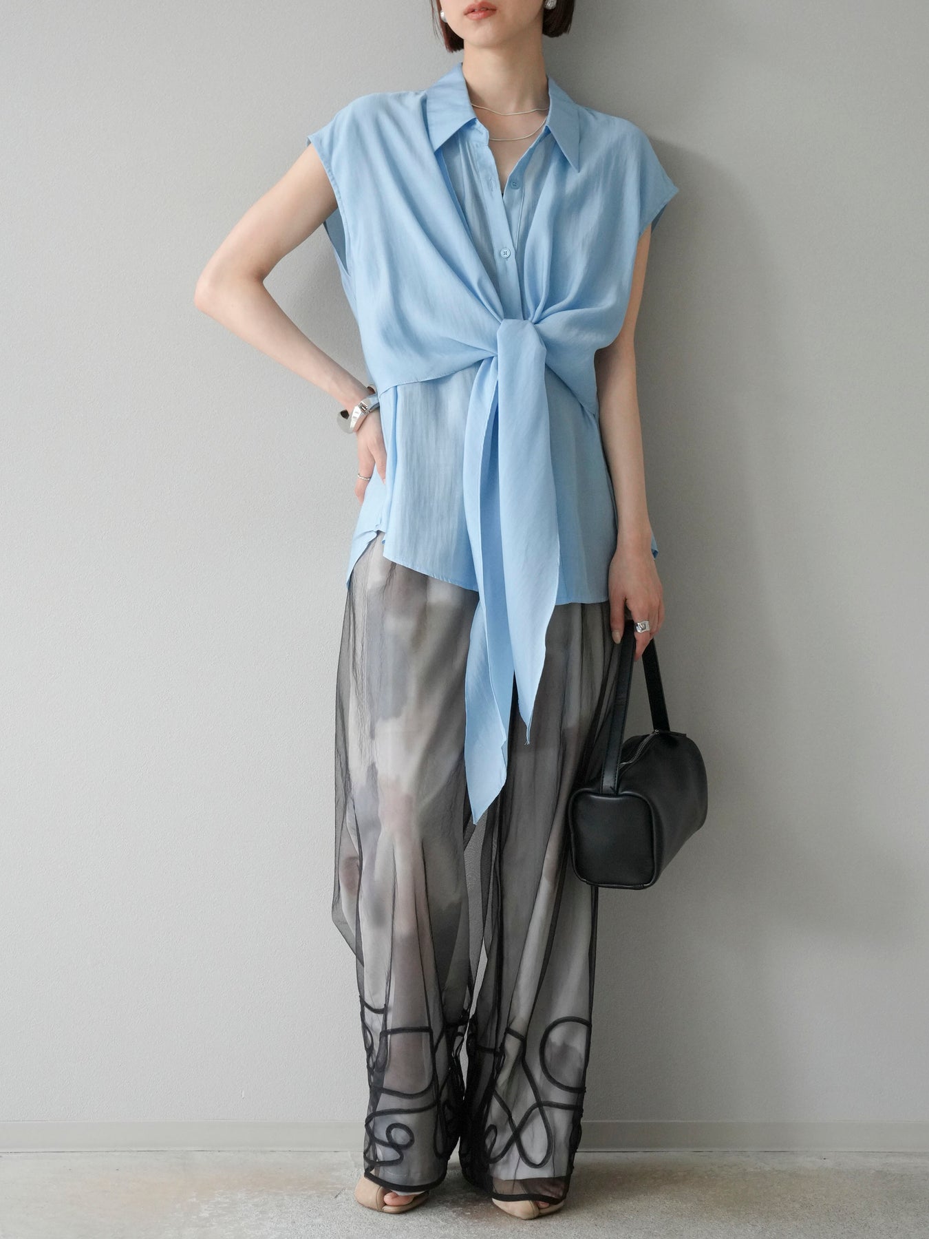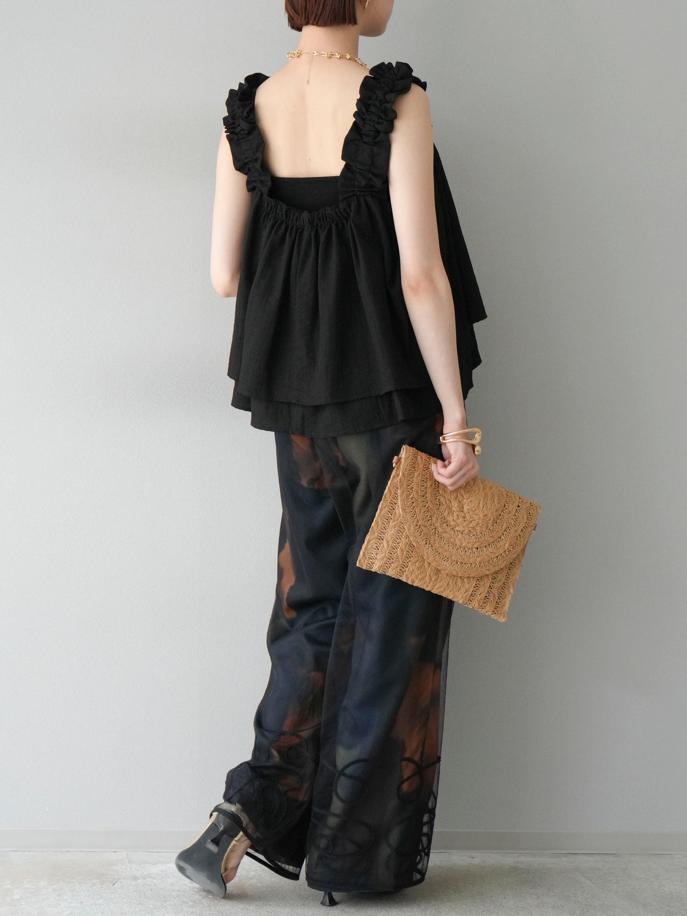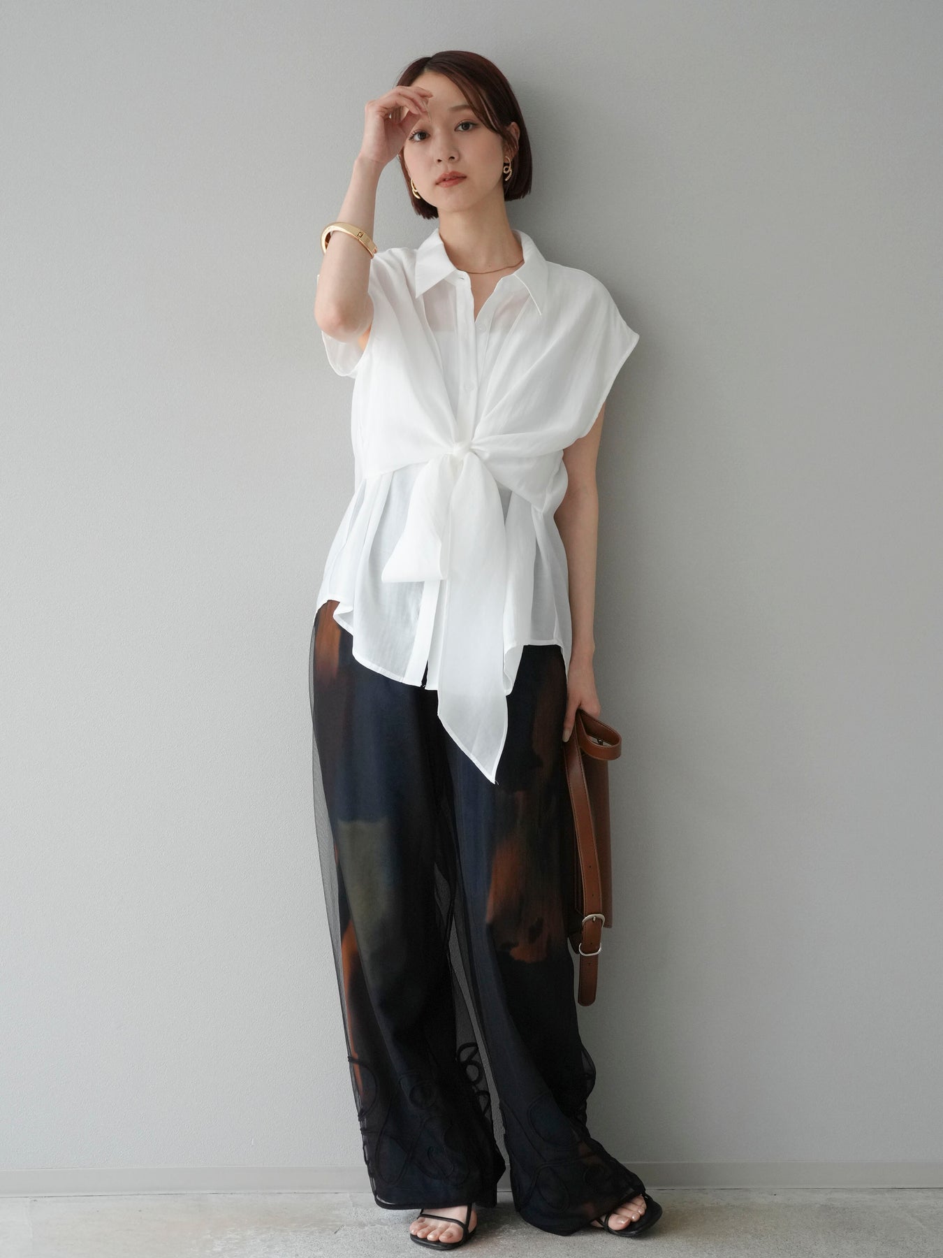 ◆ [予約]コード刺繍チュールレイヤードパンツ