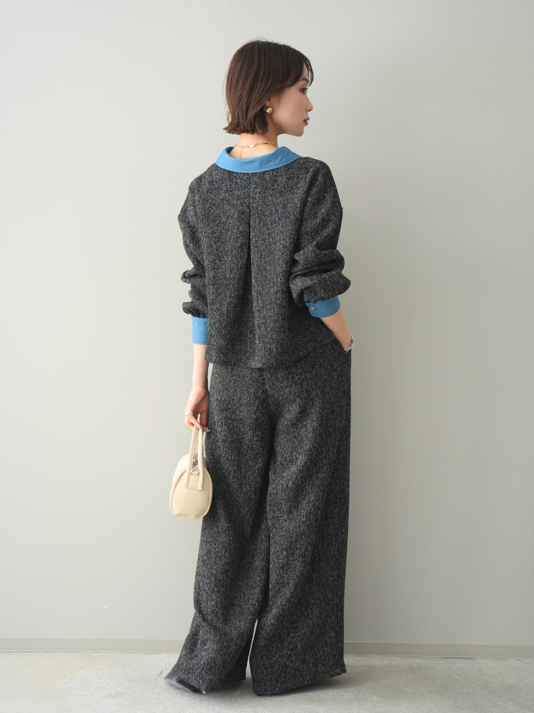 [SET]異素材サマーツイードシャツ+異素材サマーツイードワイドパンツ(2set)