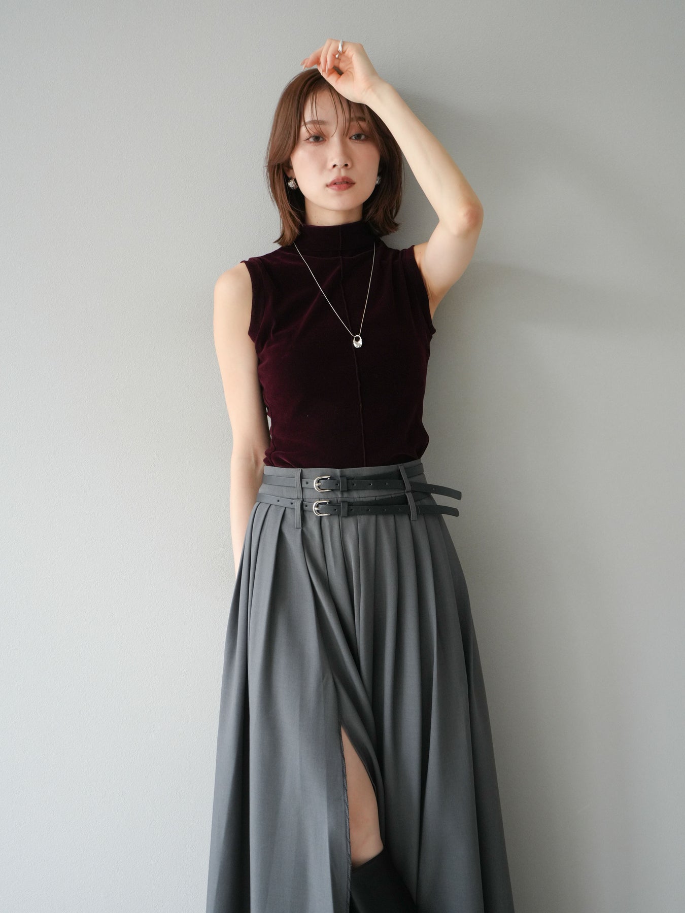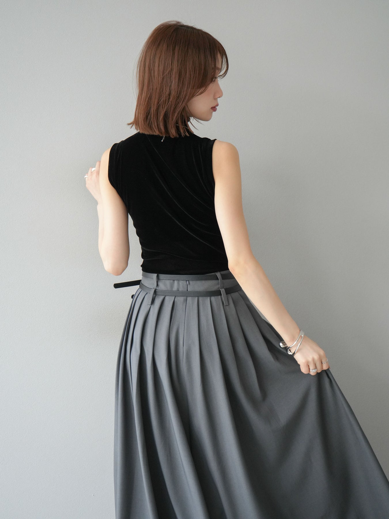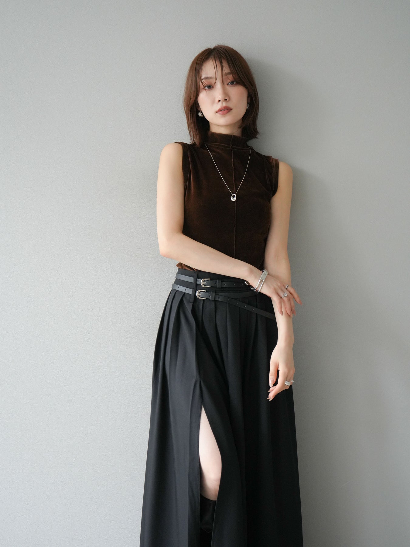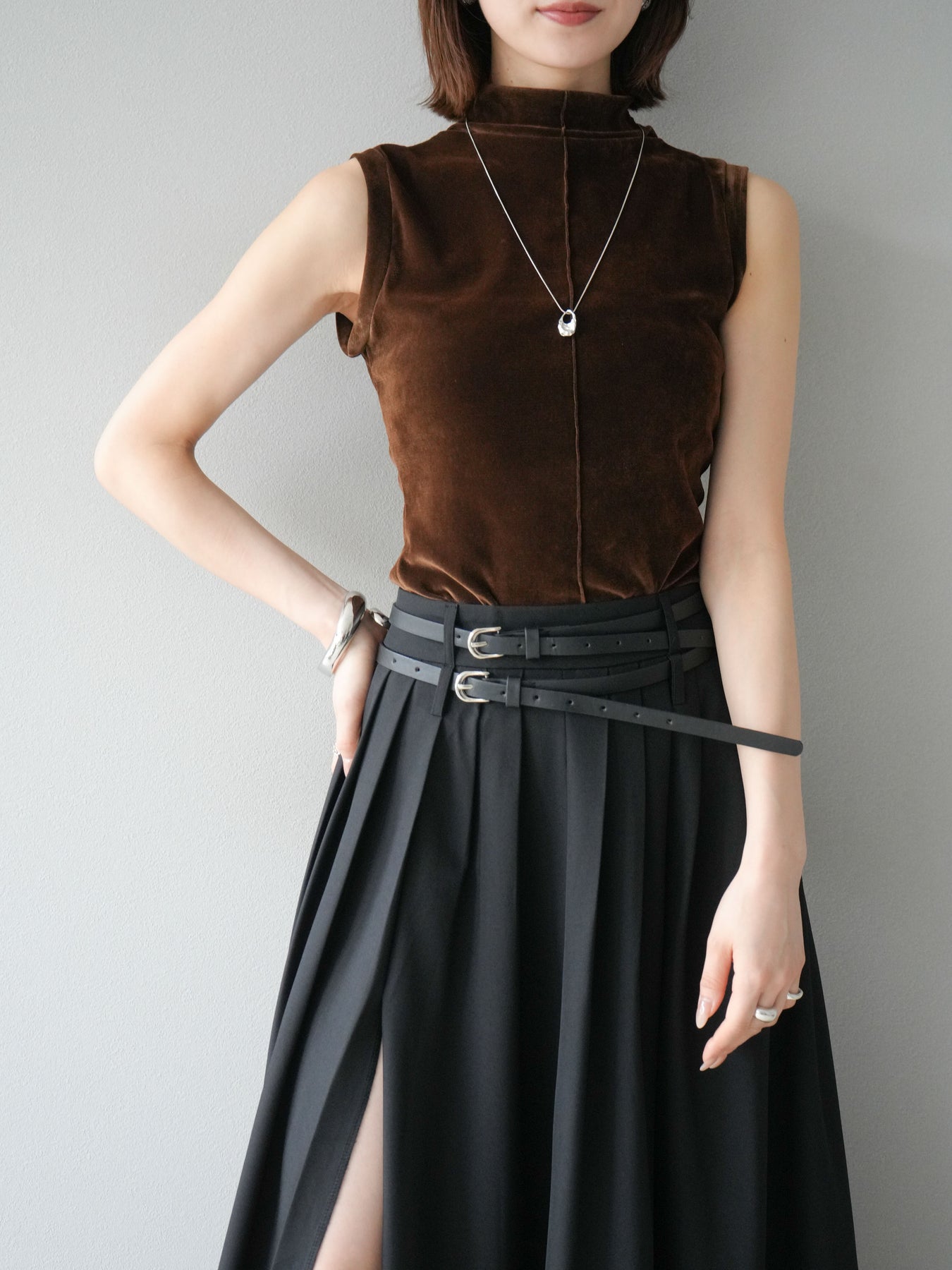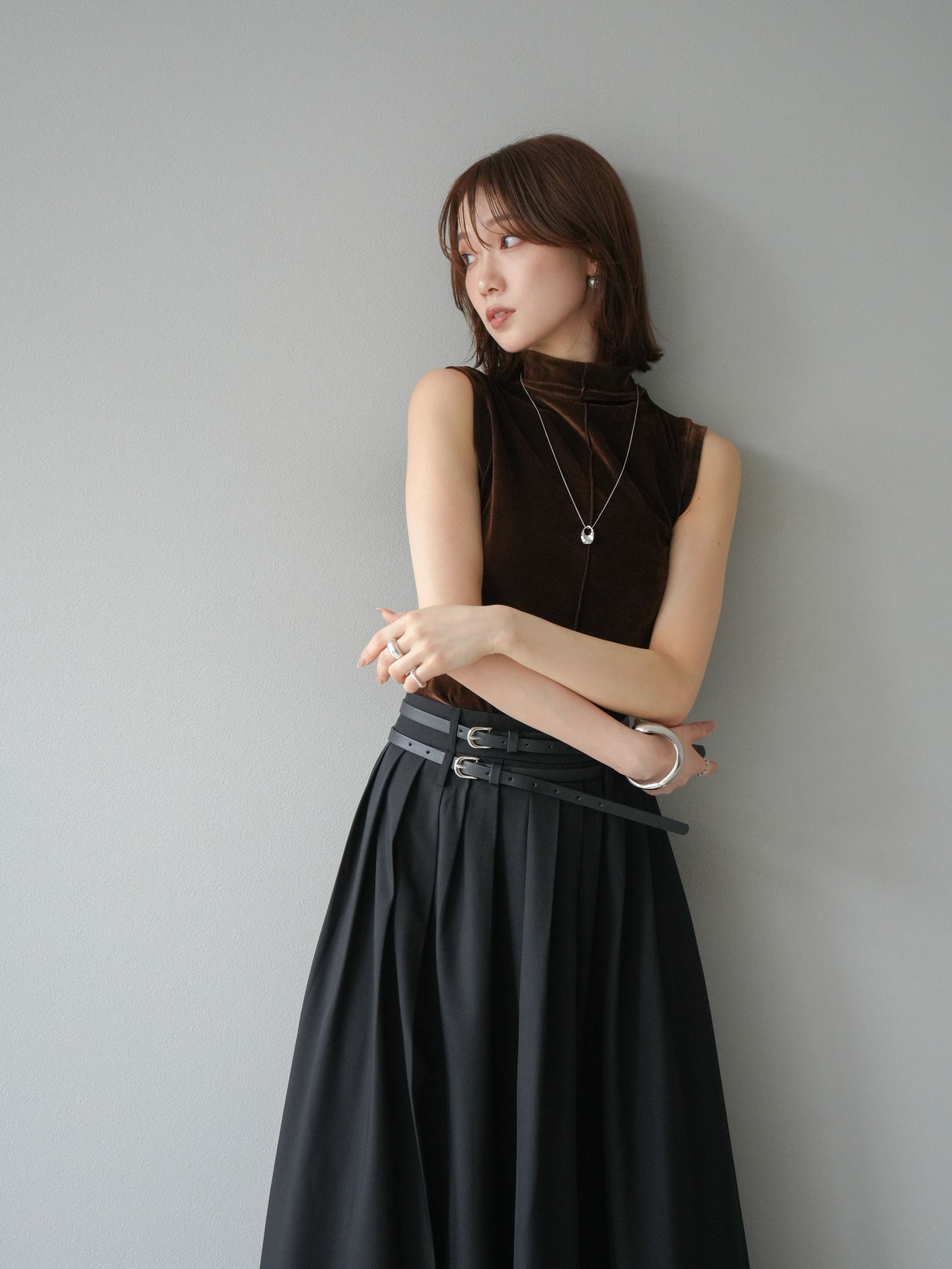 [SET]シアーベロアプチネックノースリーブトップス+エステルプリーツスリットスカート(2set)