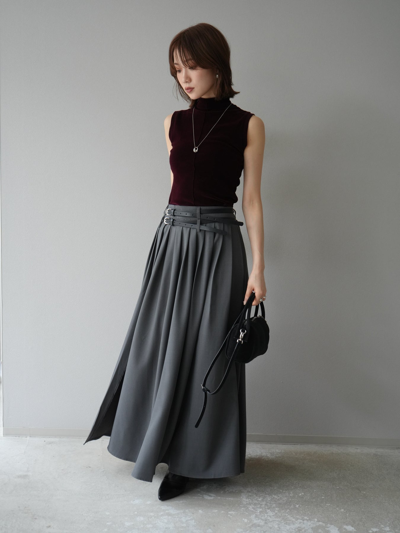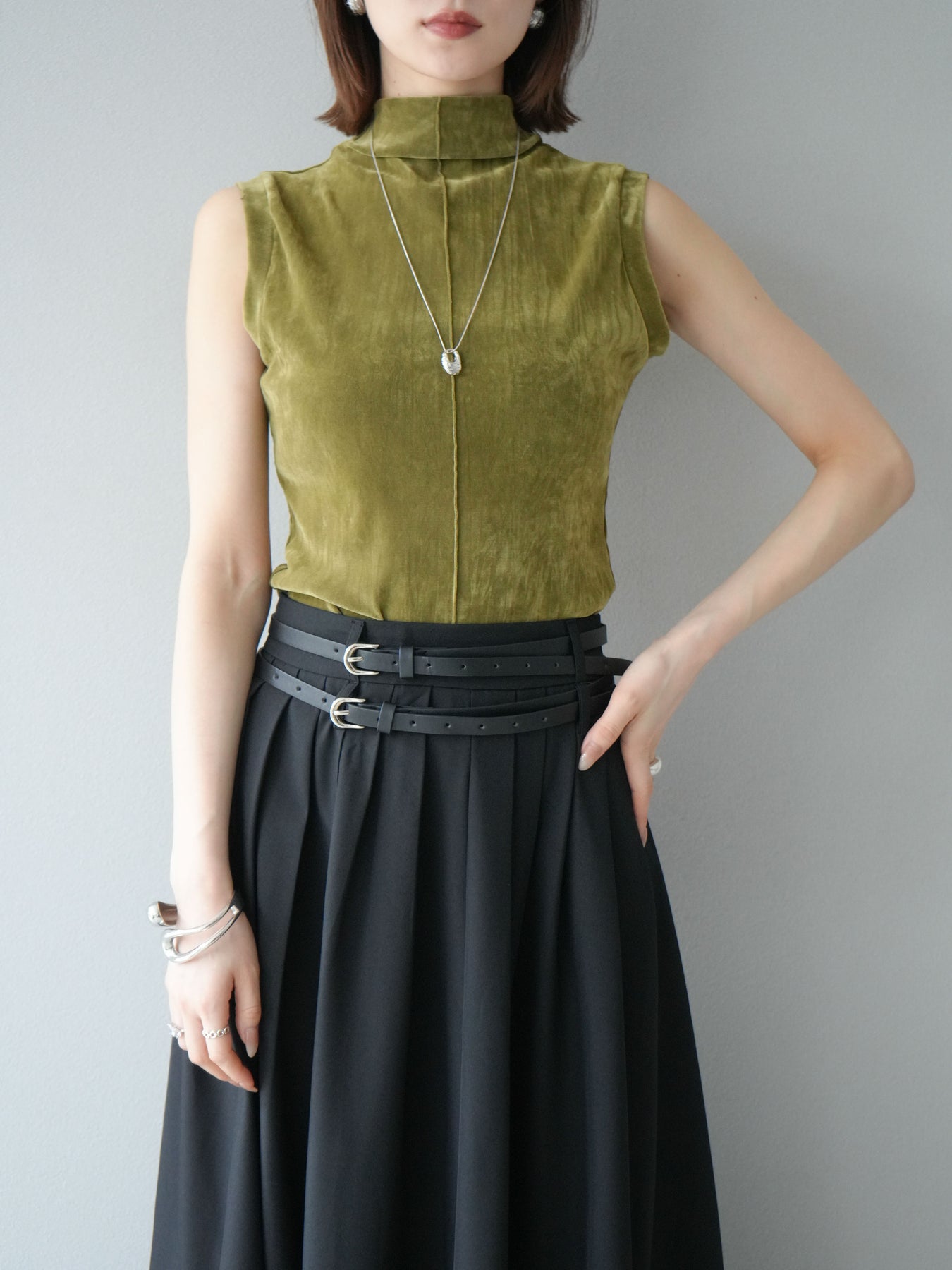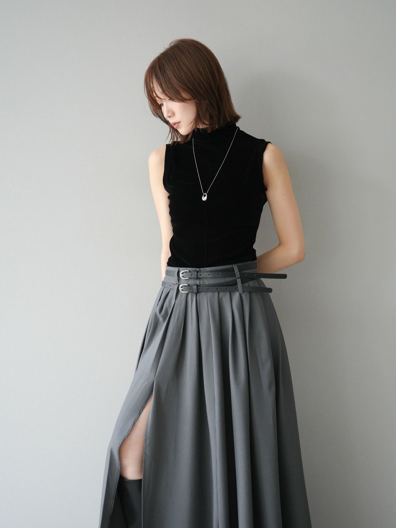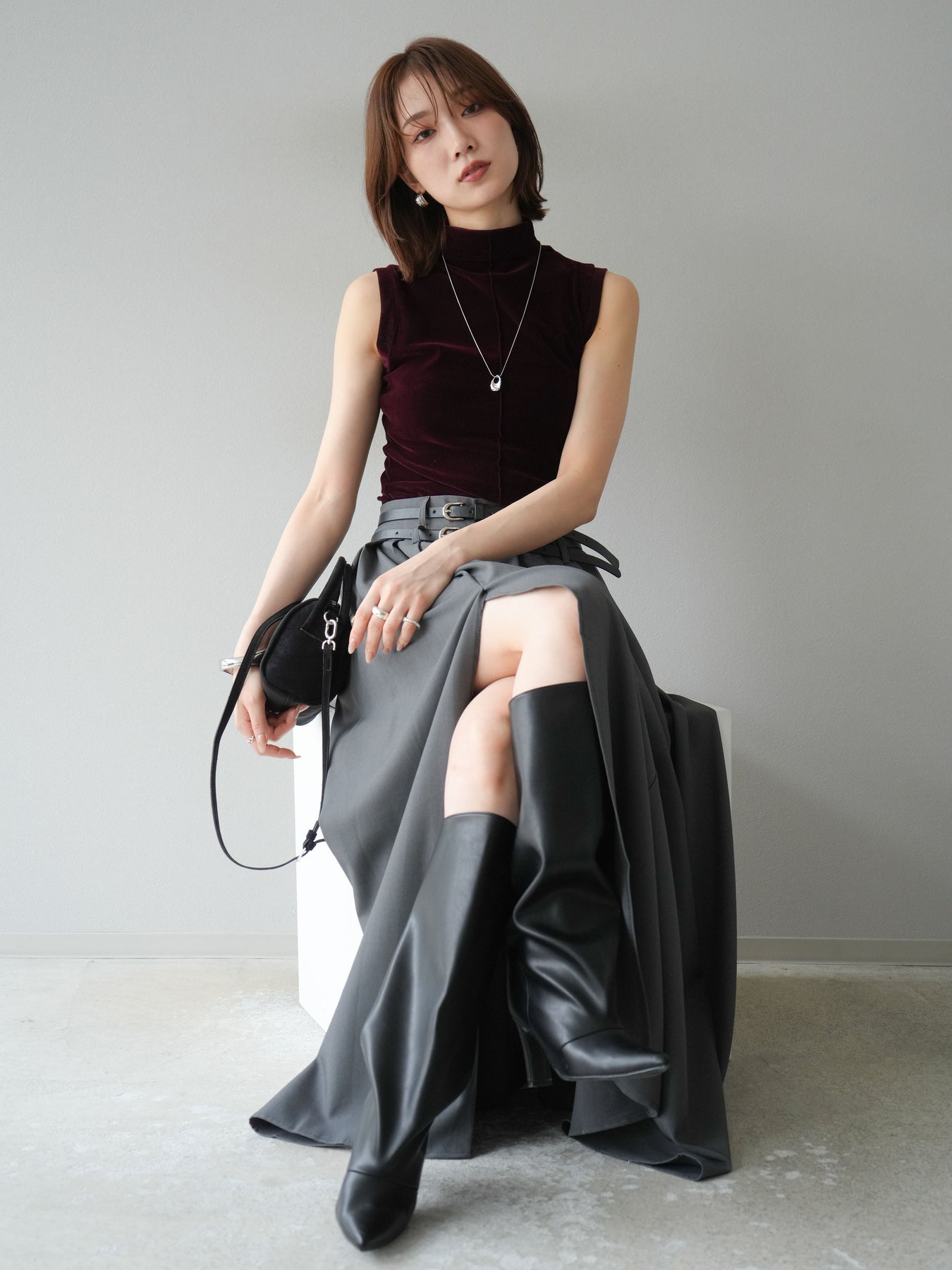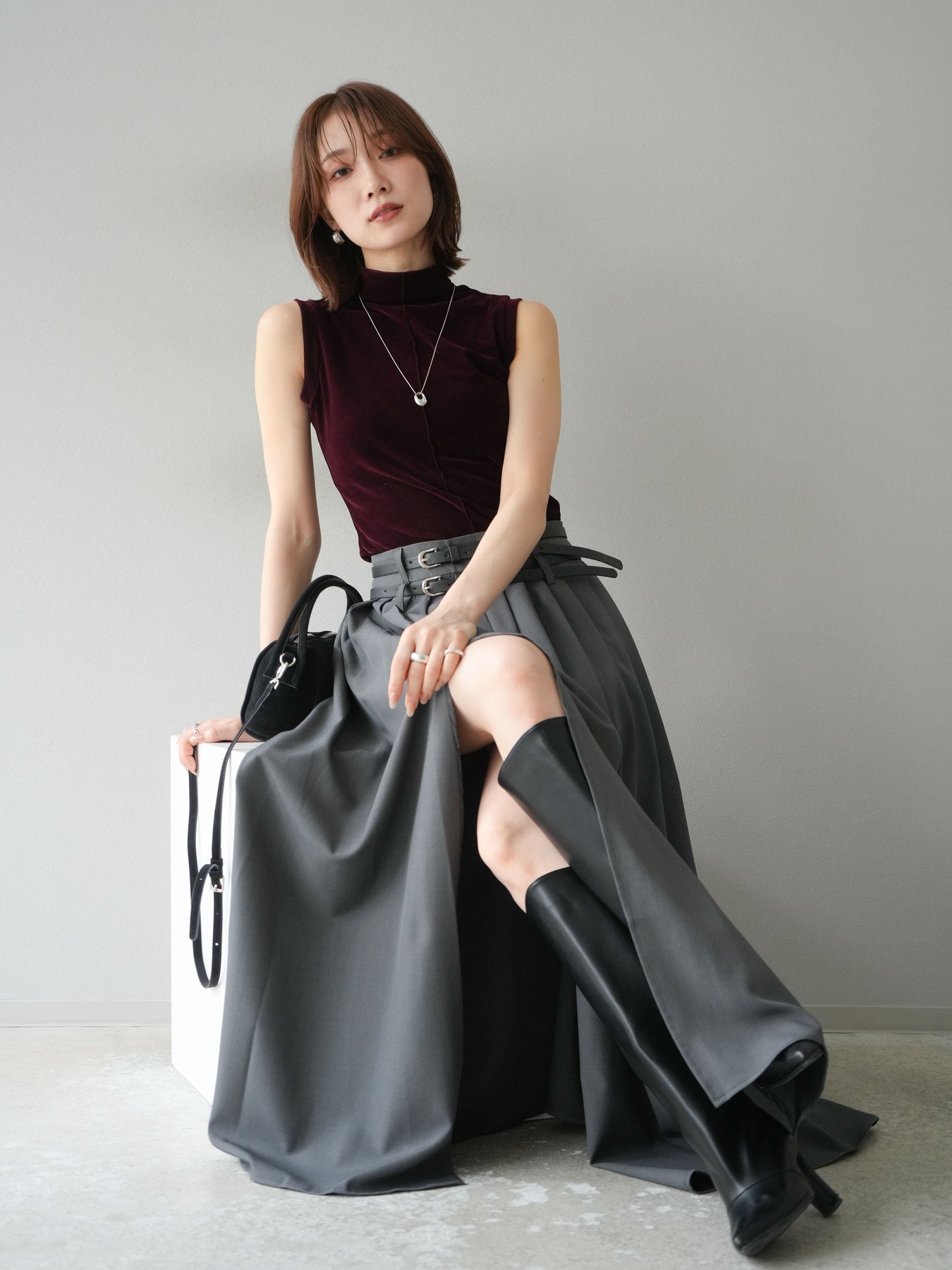[SET]シアーベロアプチネックノースリーブトップス+エステルプリーツスリットスカート(2set)
