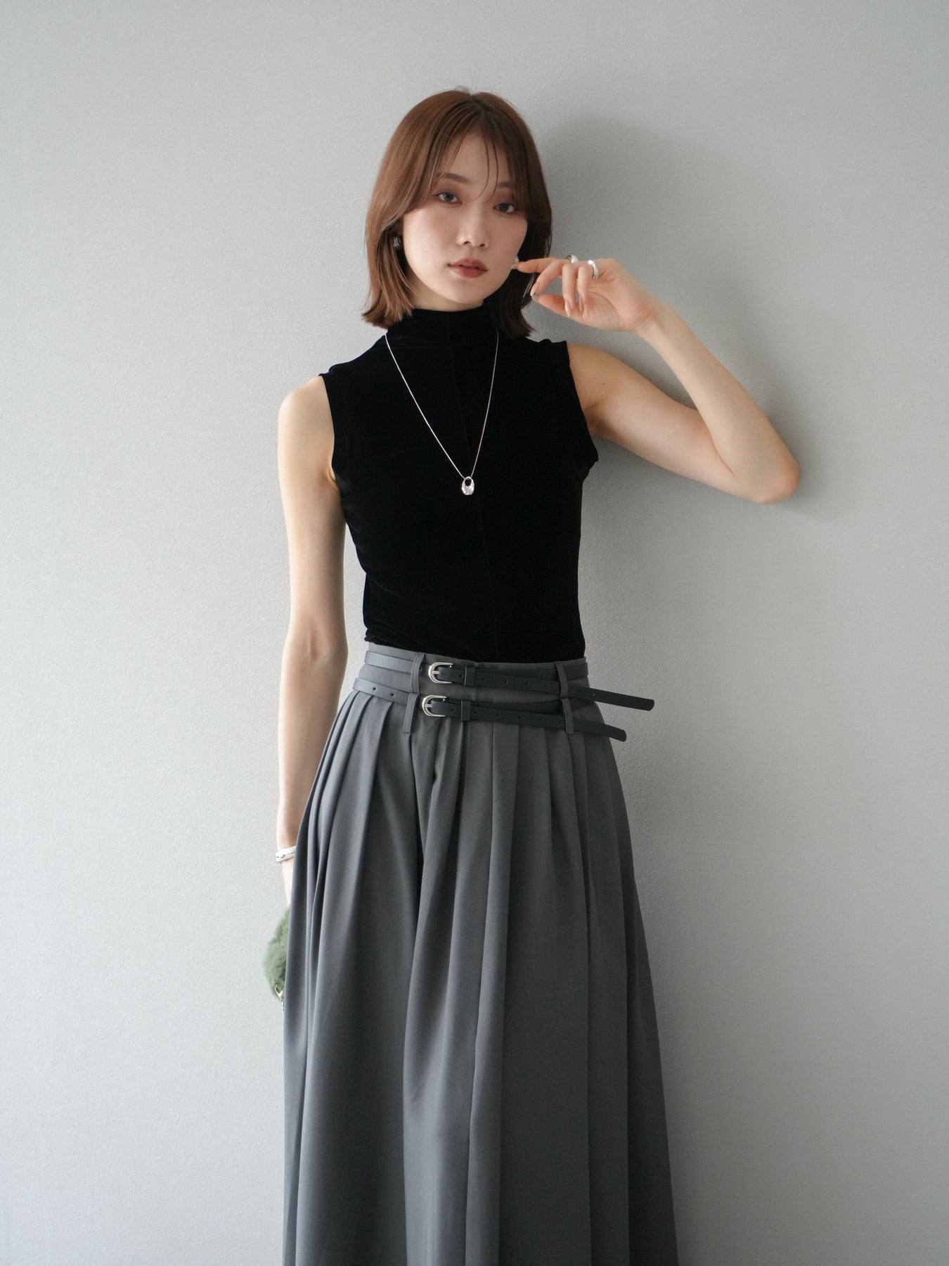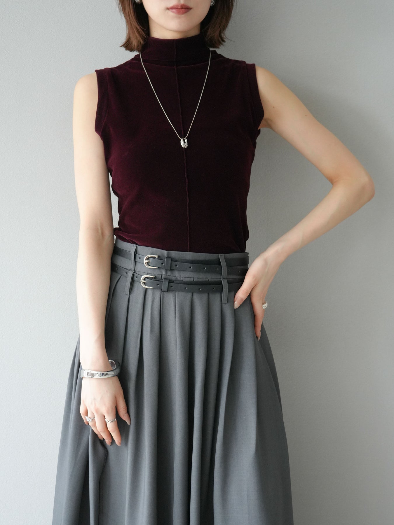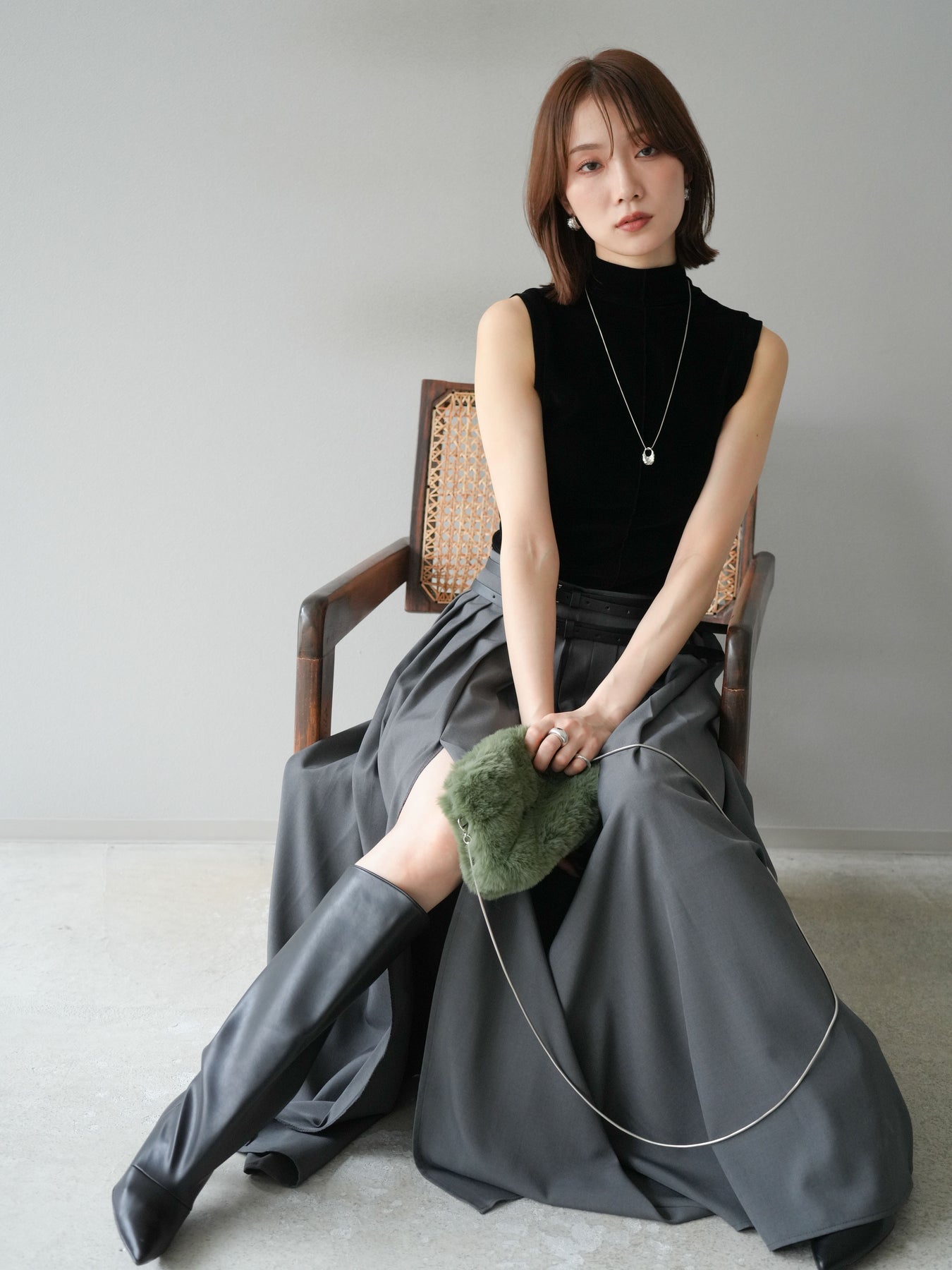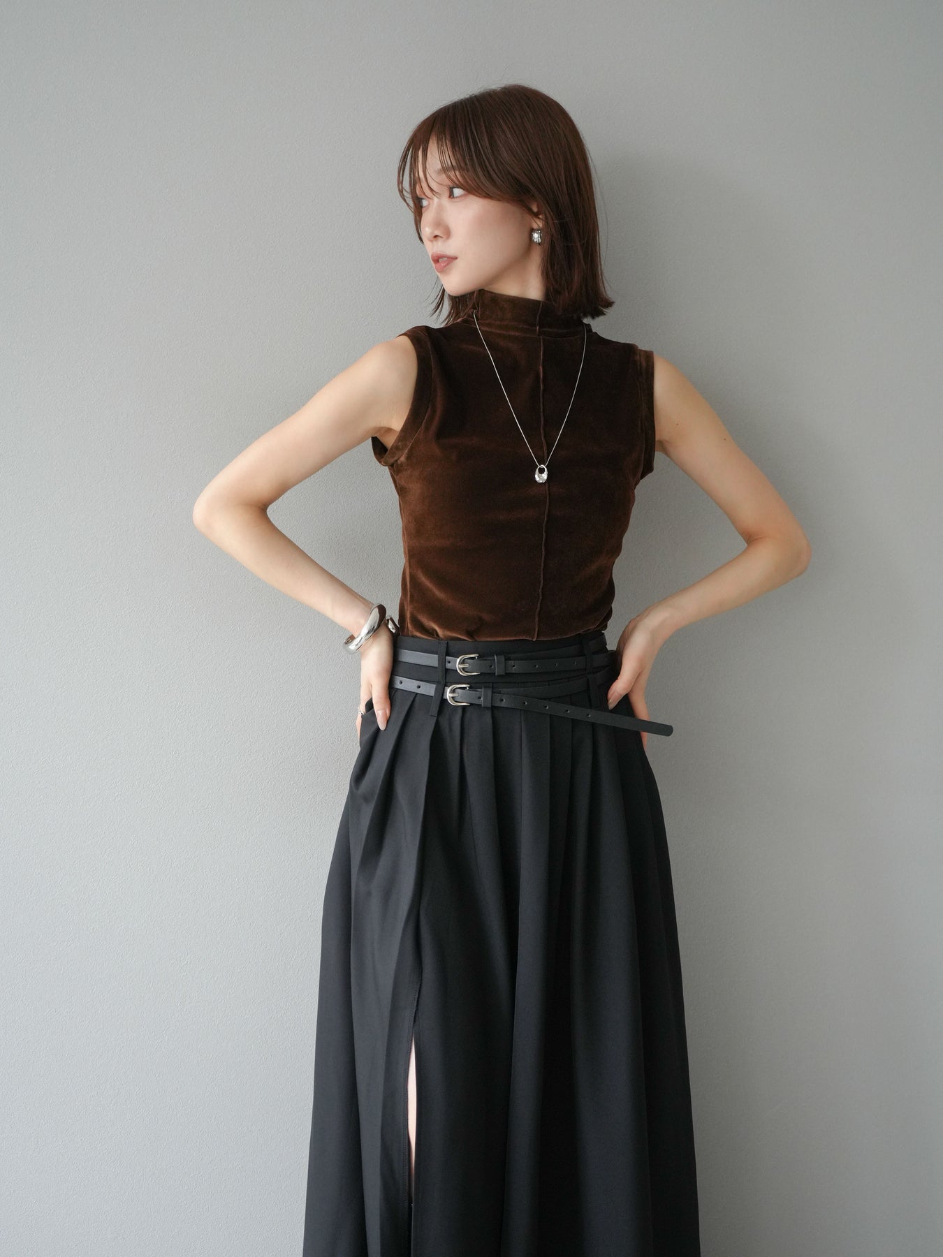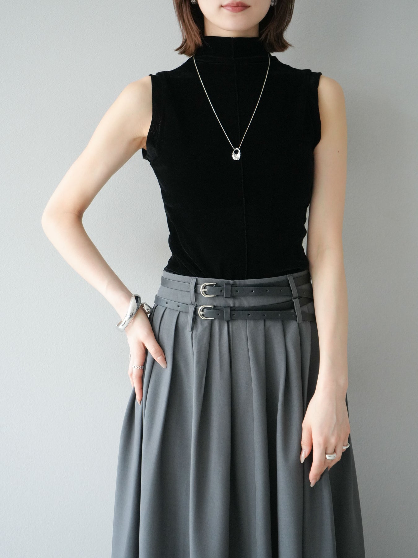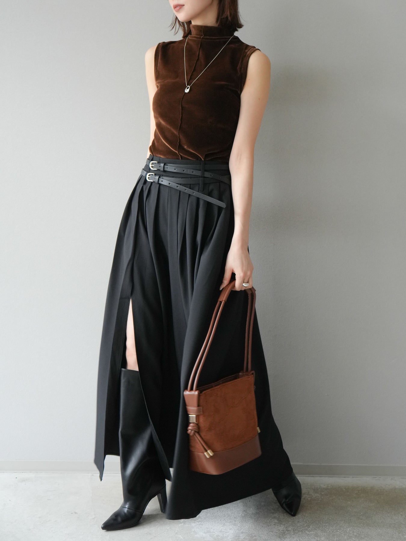 [SET]シアーベロアプチネックノースリーブトップス+エステルプリーツスリットスカート(2set)