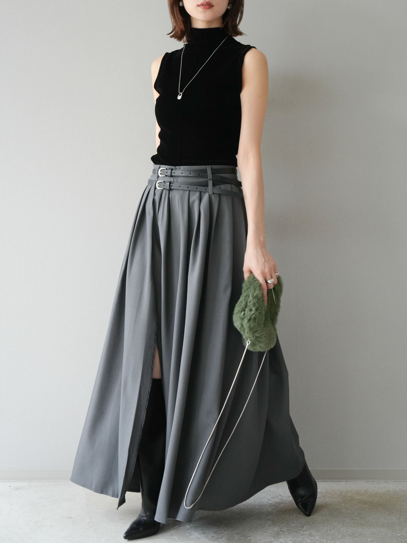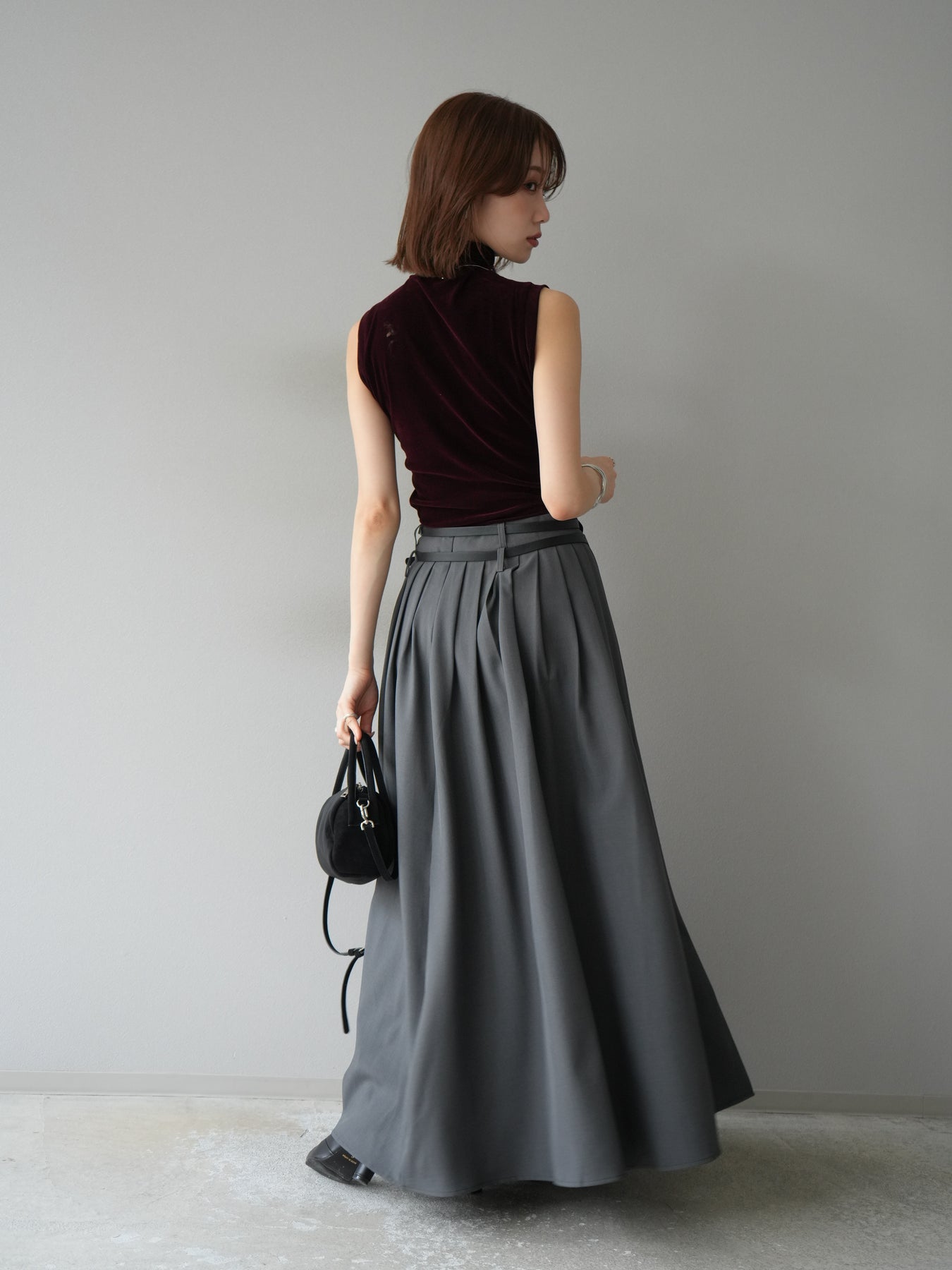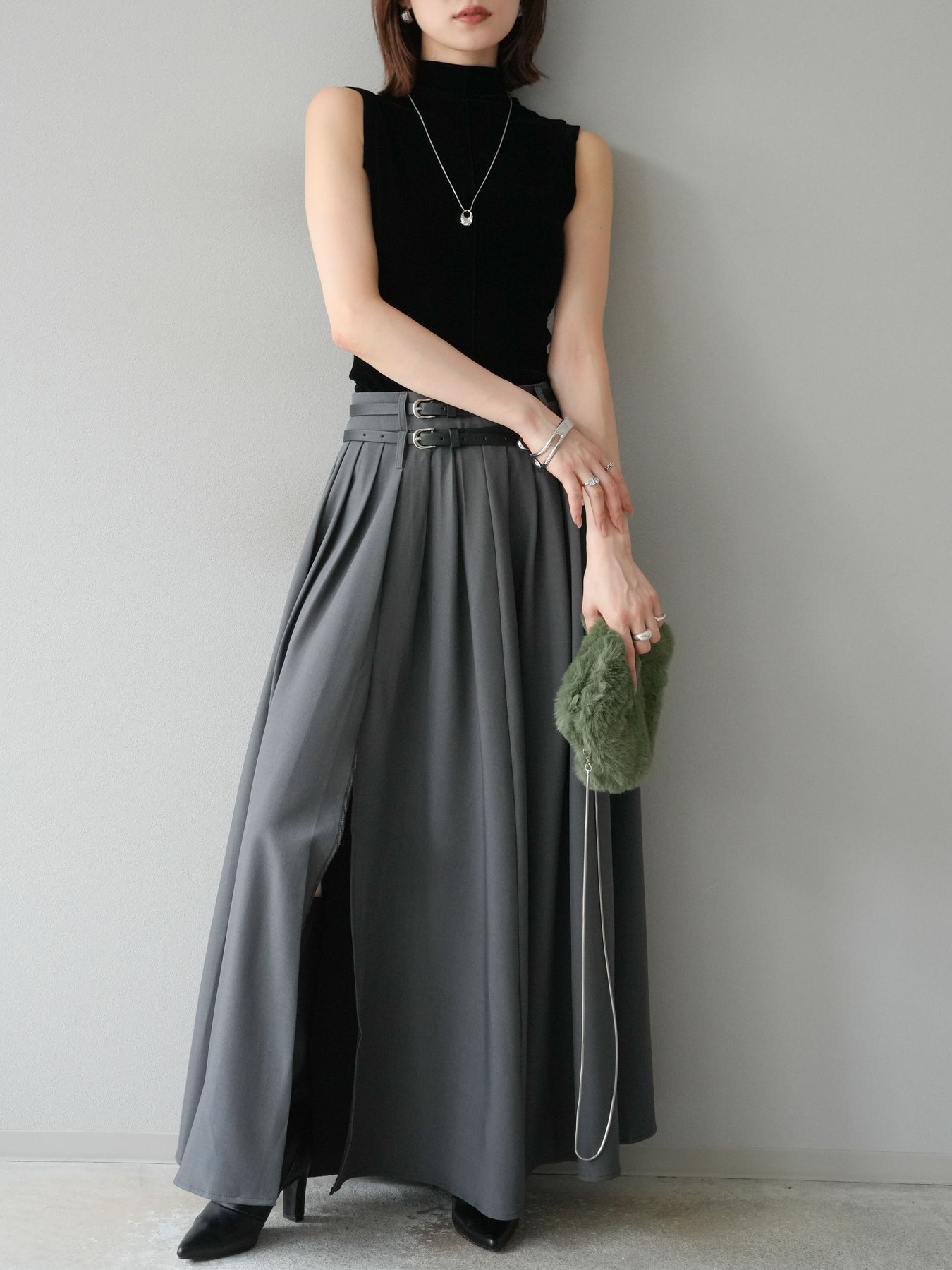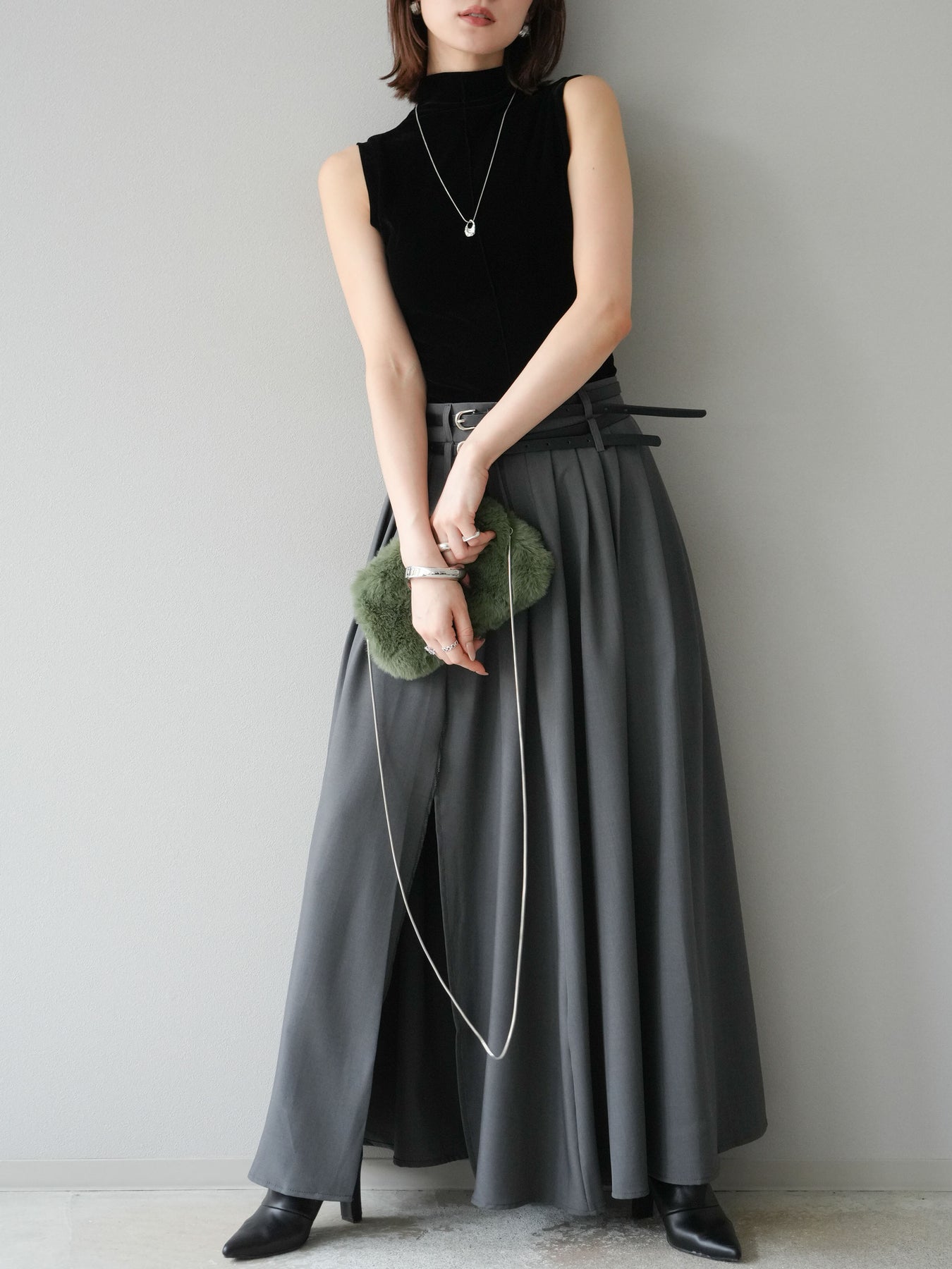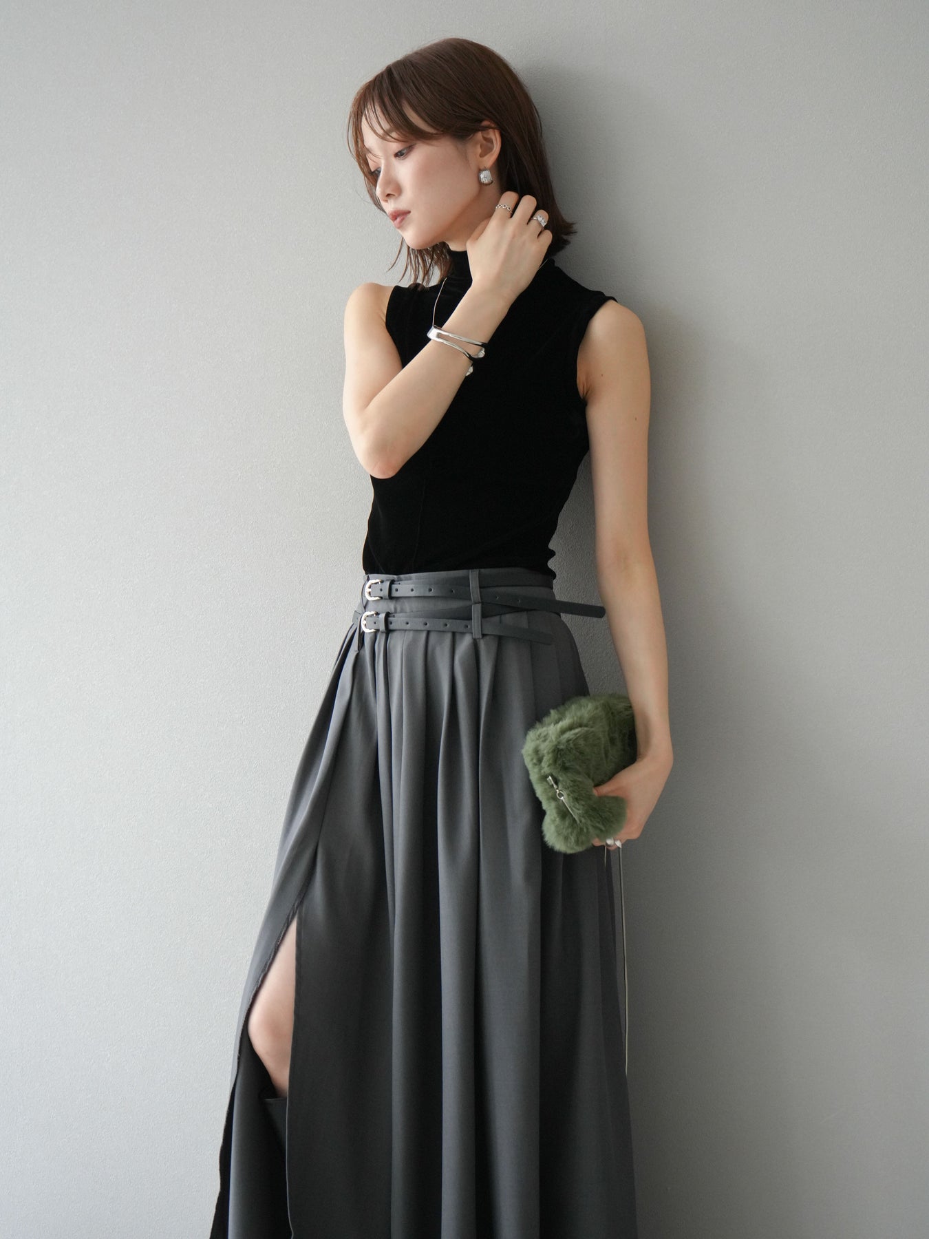 [SET]シアーベロアプチネックノースリーブトップス+エステルプリーツスリットスカート(2set)