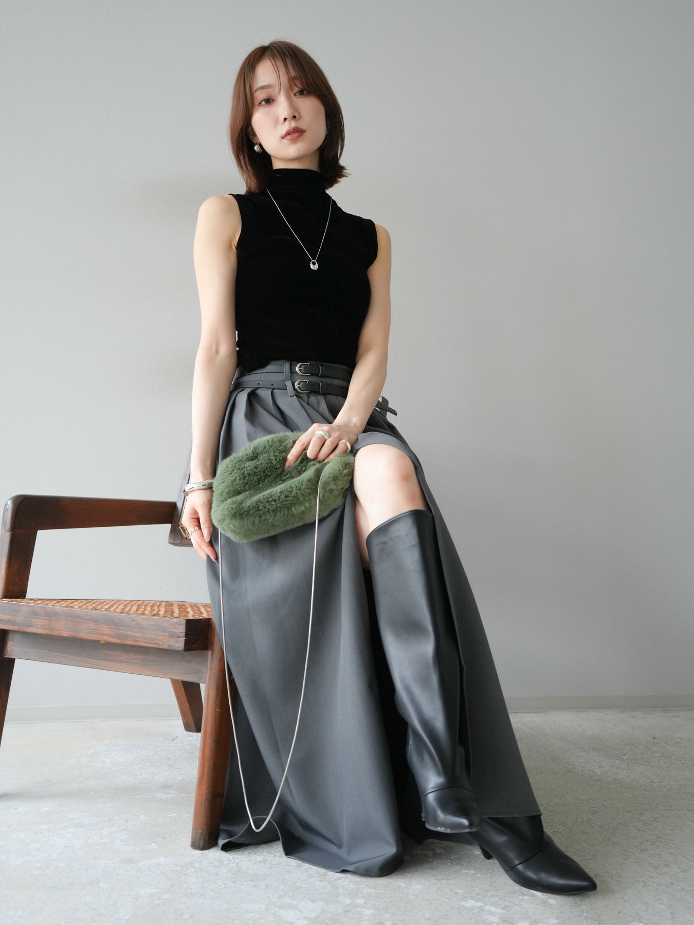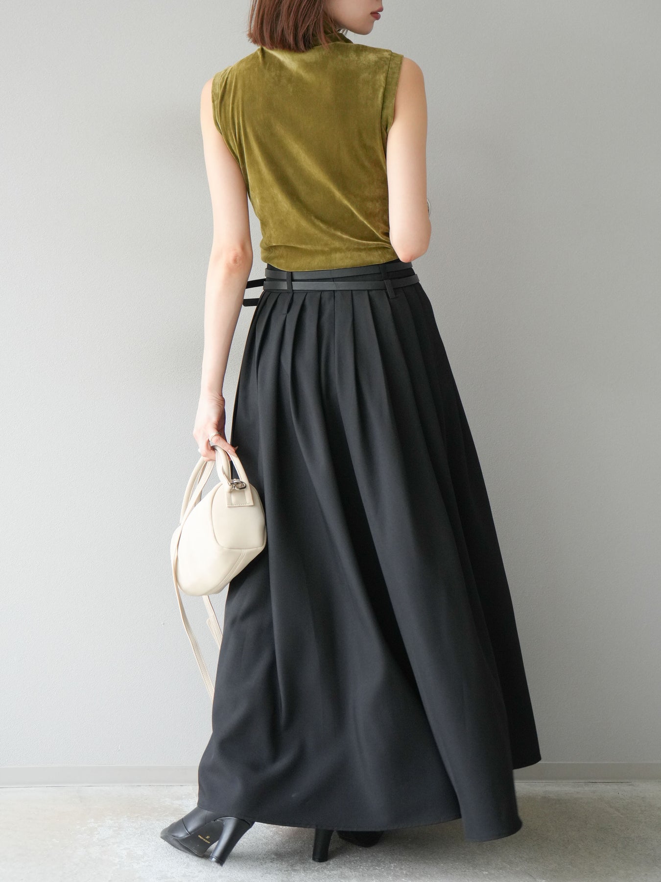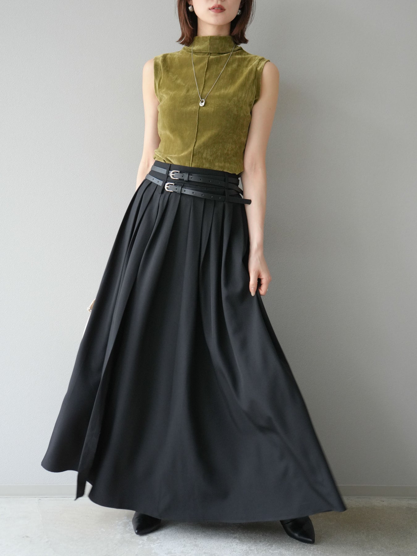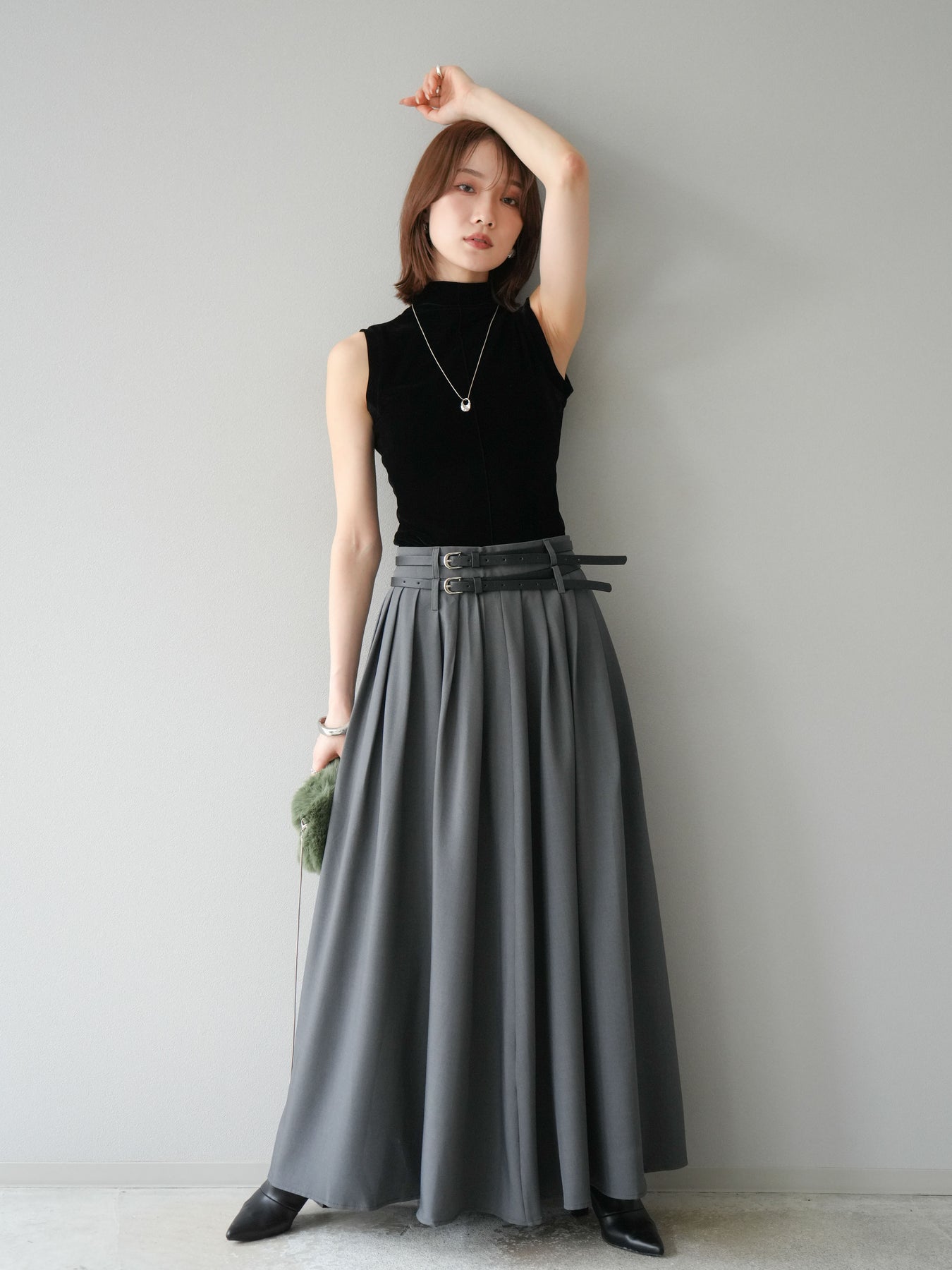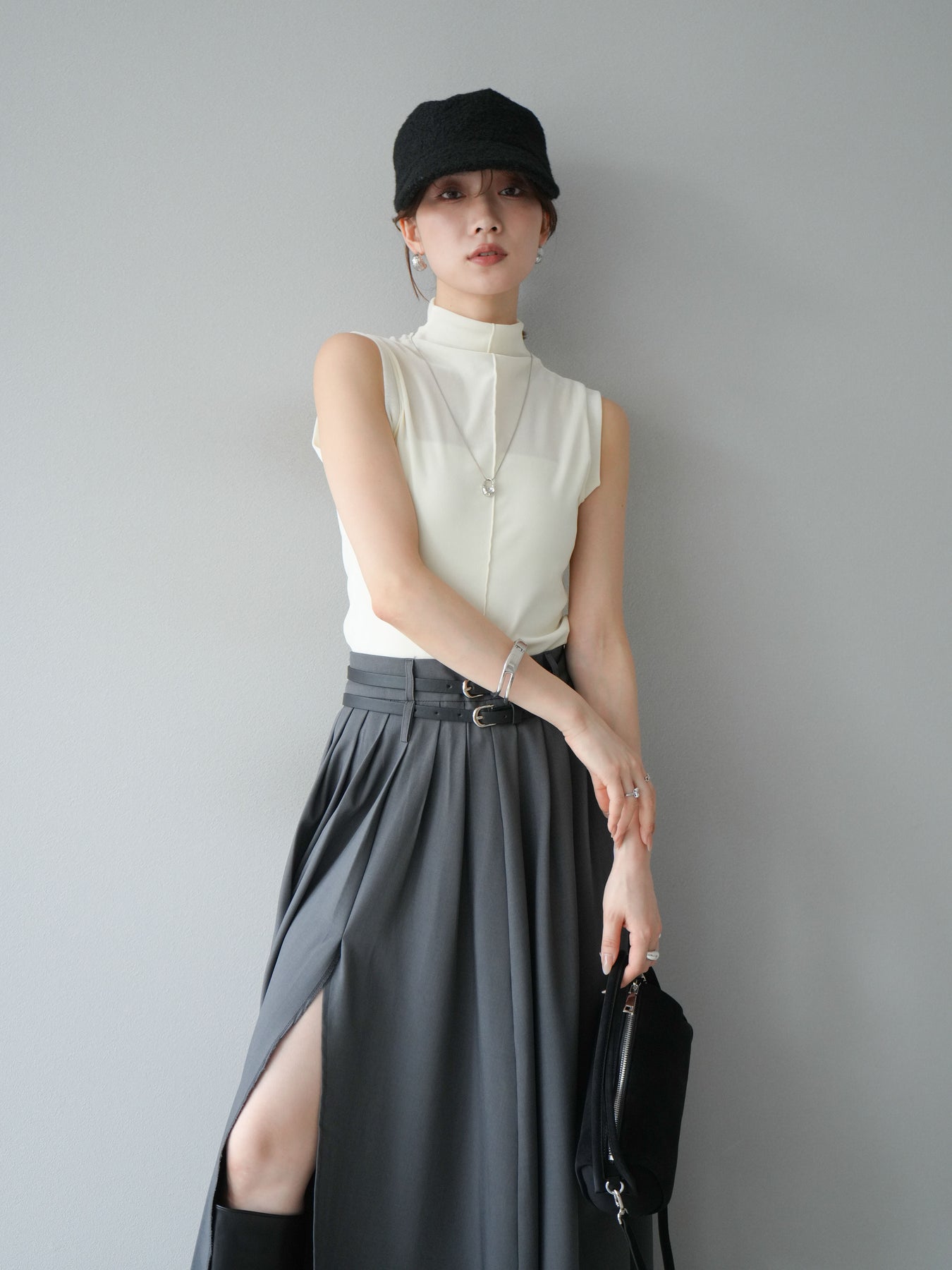 [SET]シアーベロアプチネックノースリーブトップス+エステルプリーツスリットスカート(2set)