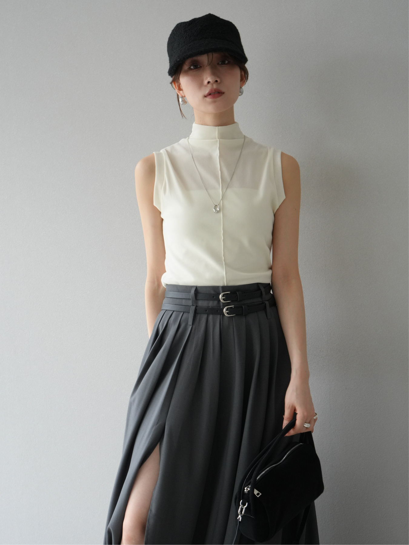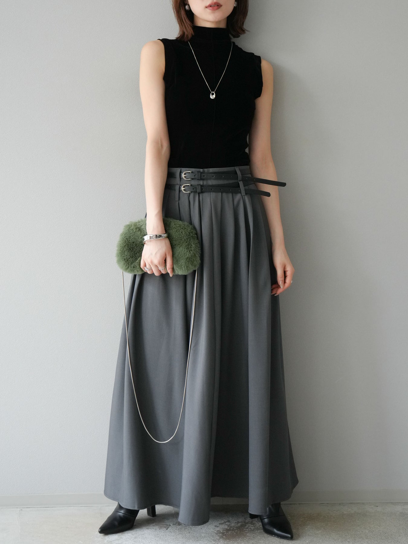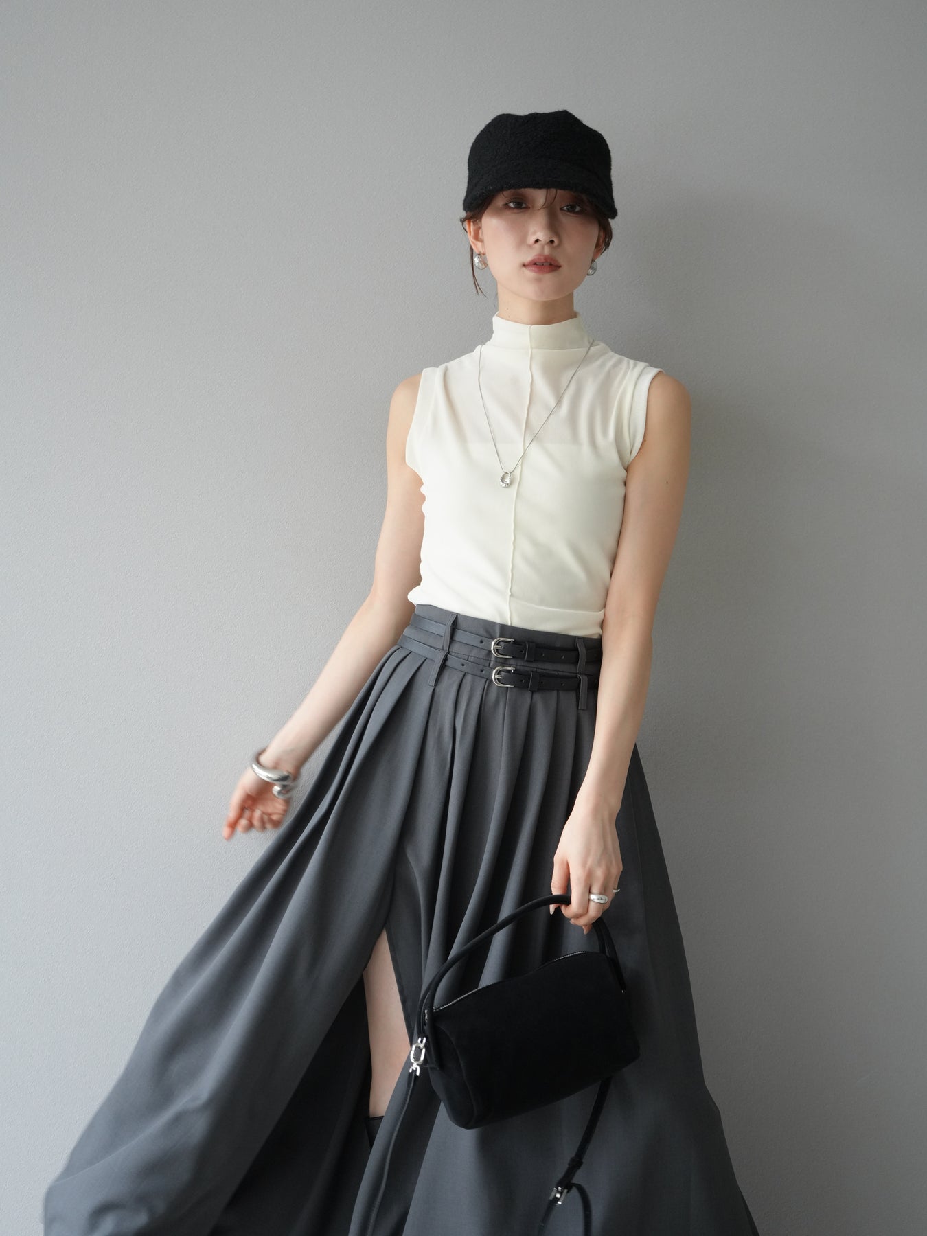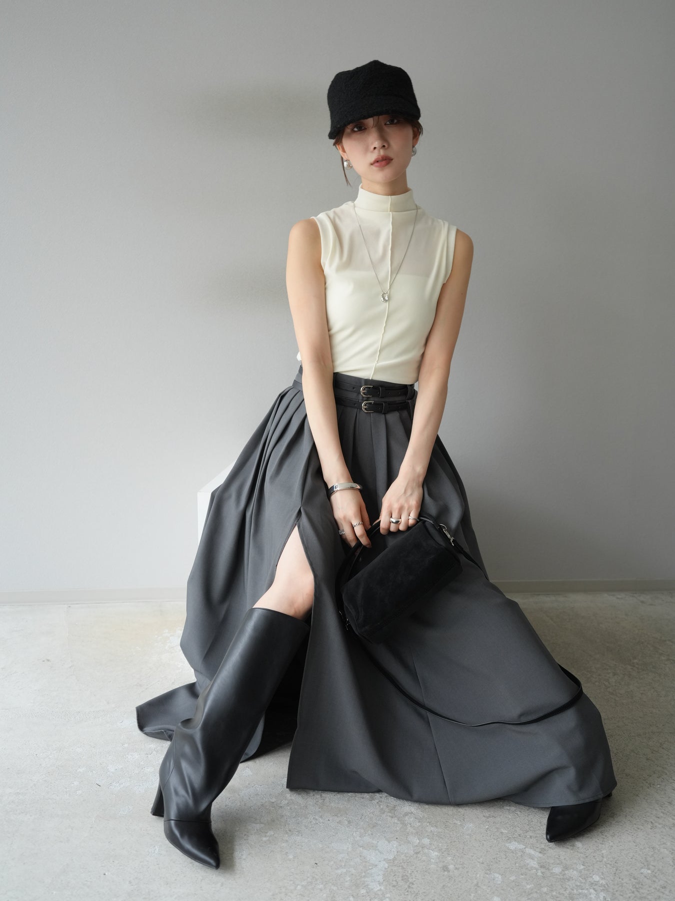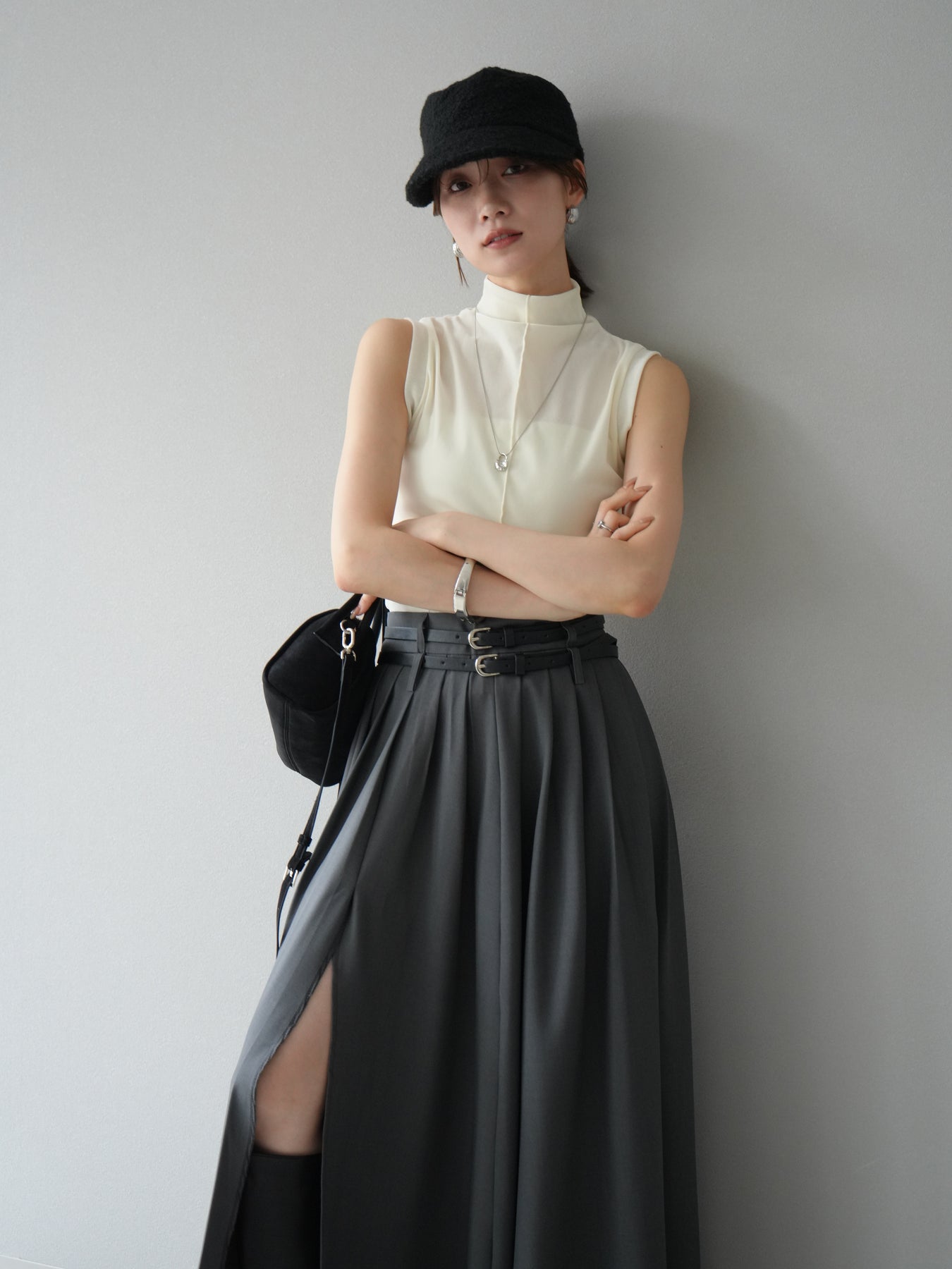 [SET]シアーベロアプチネックノースリーブトップス+エステルプリーツスリットスカート(2set)