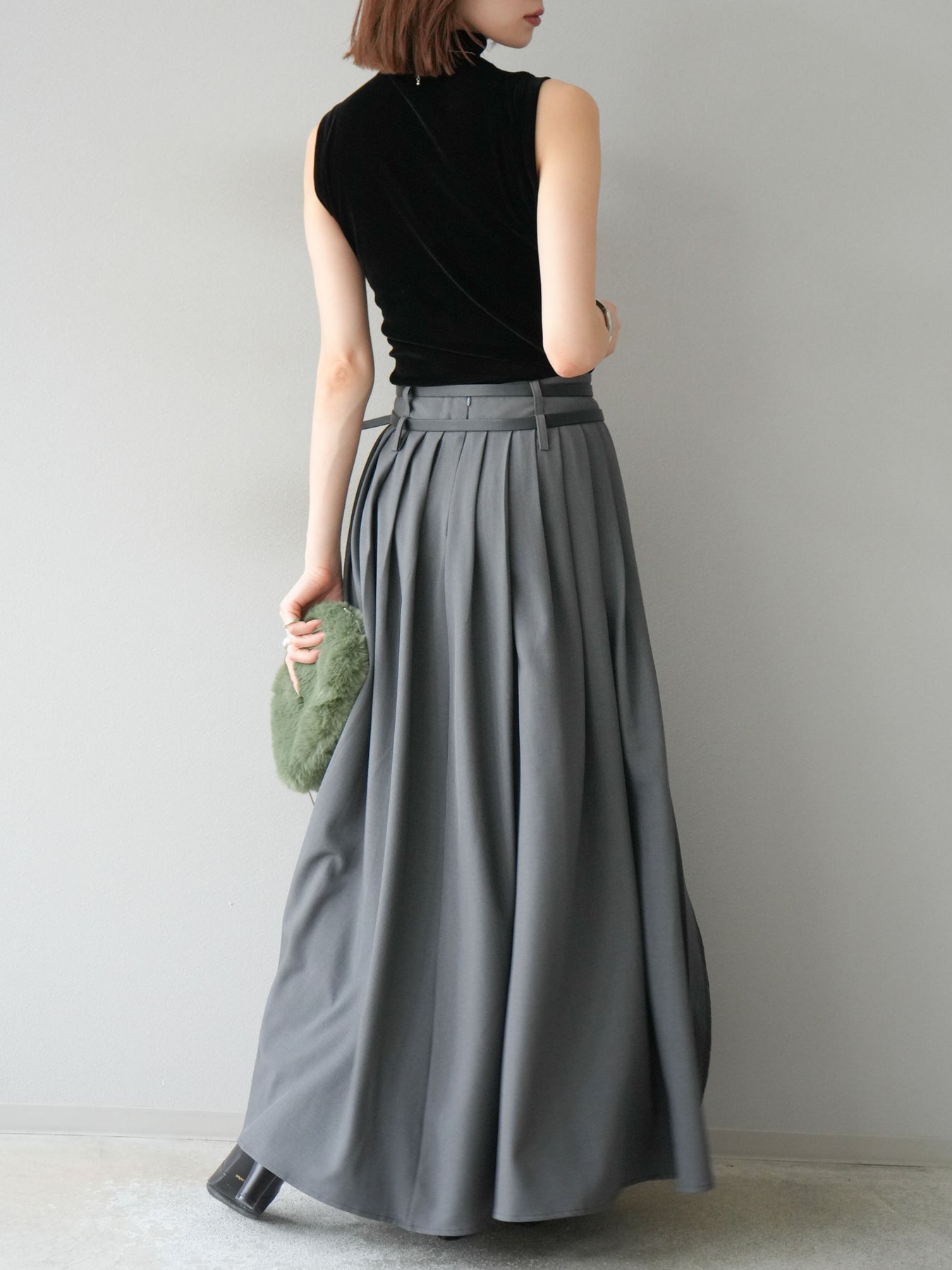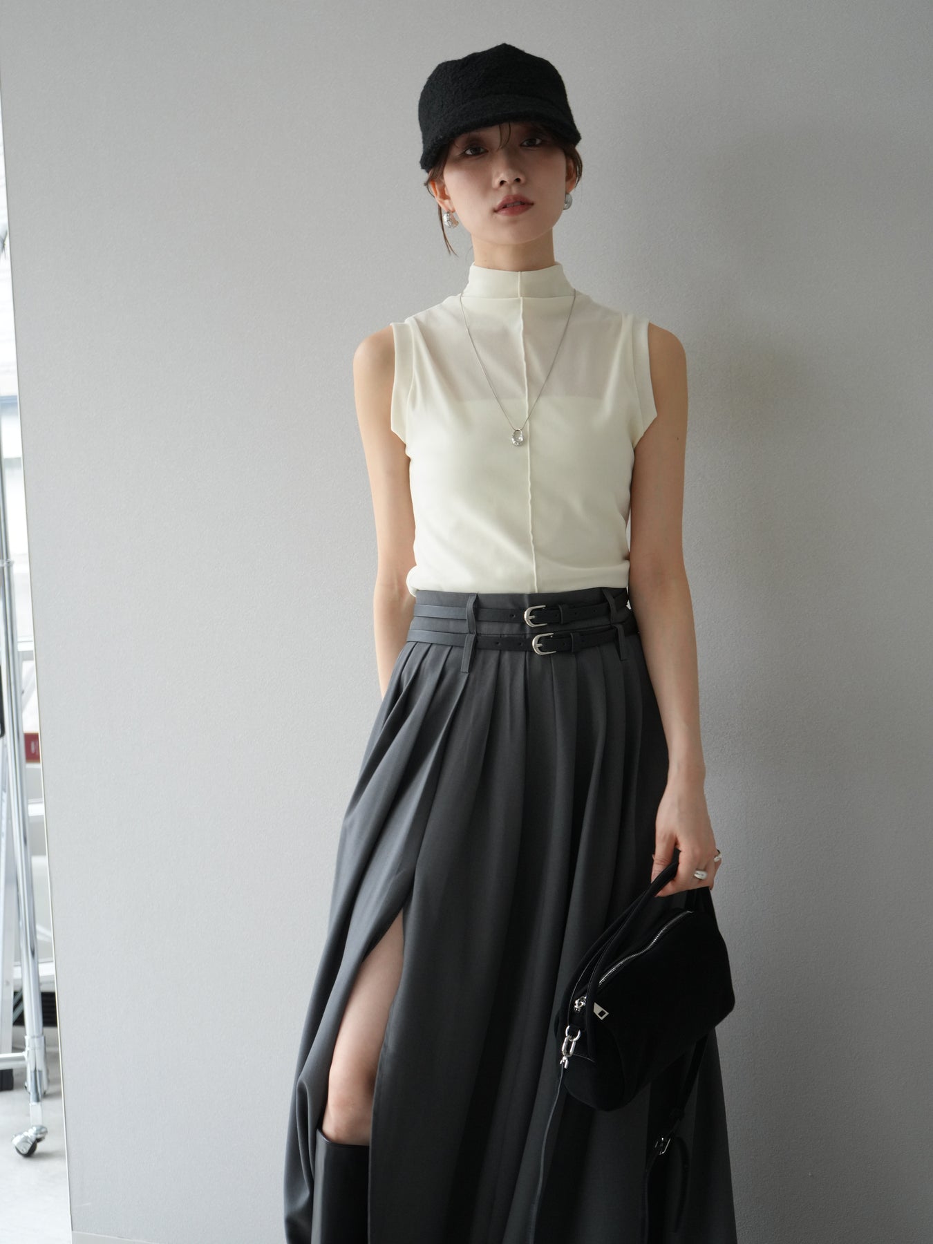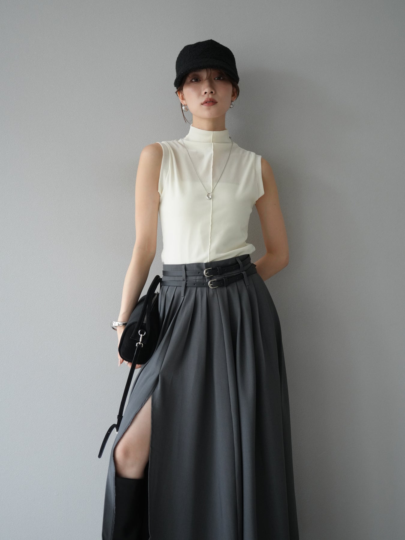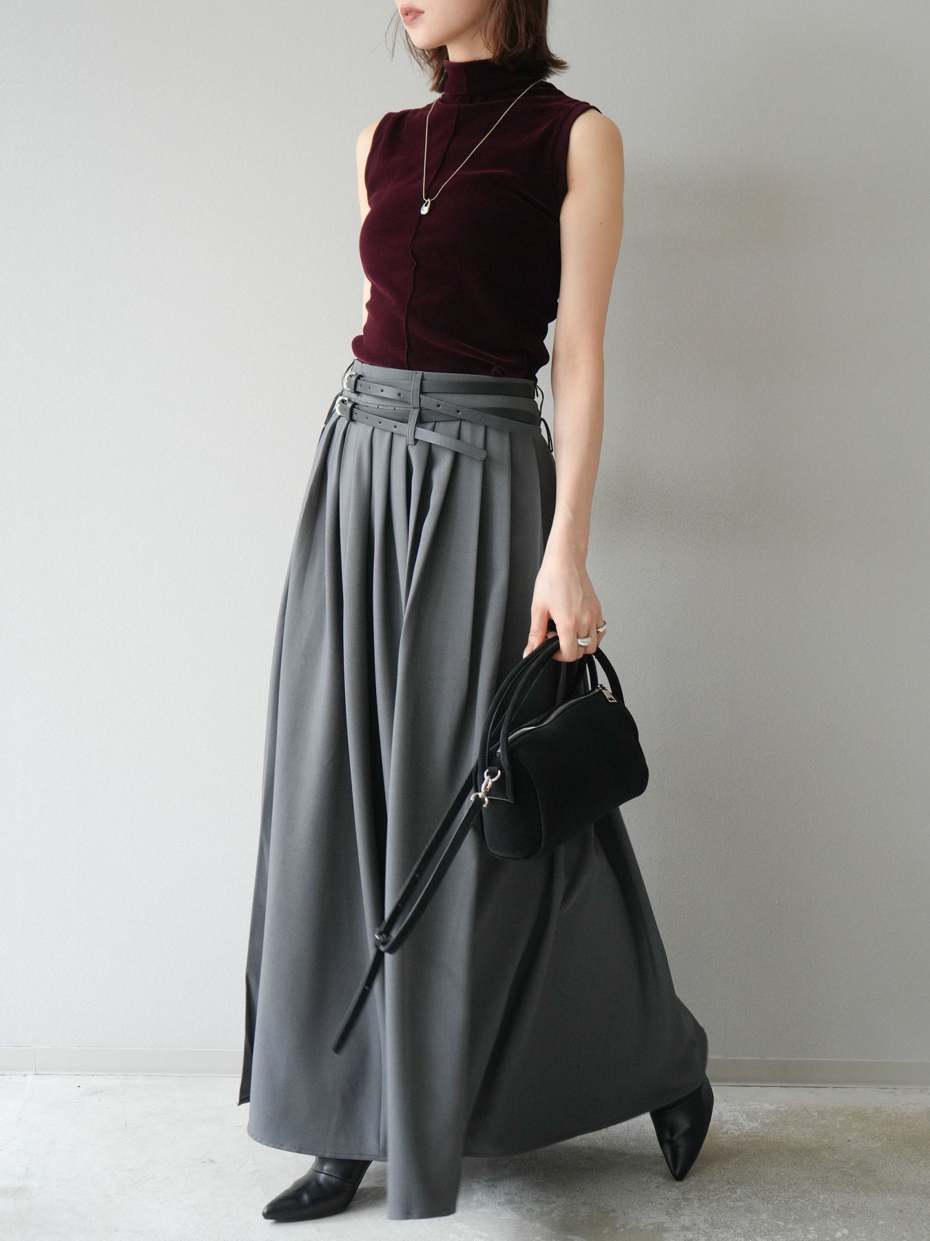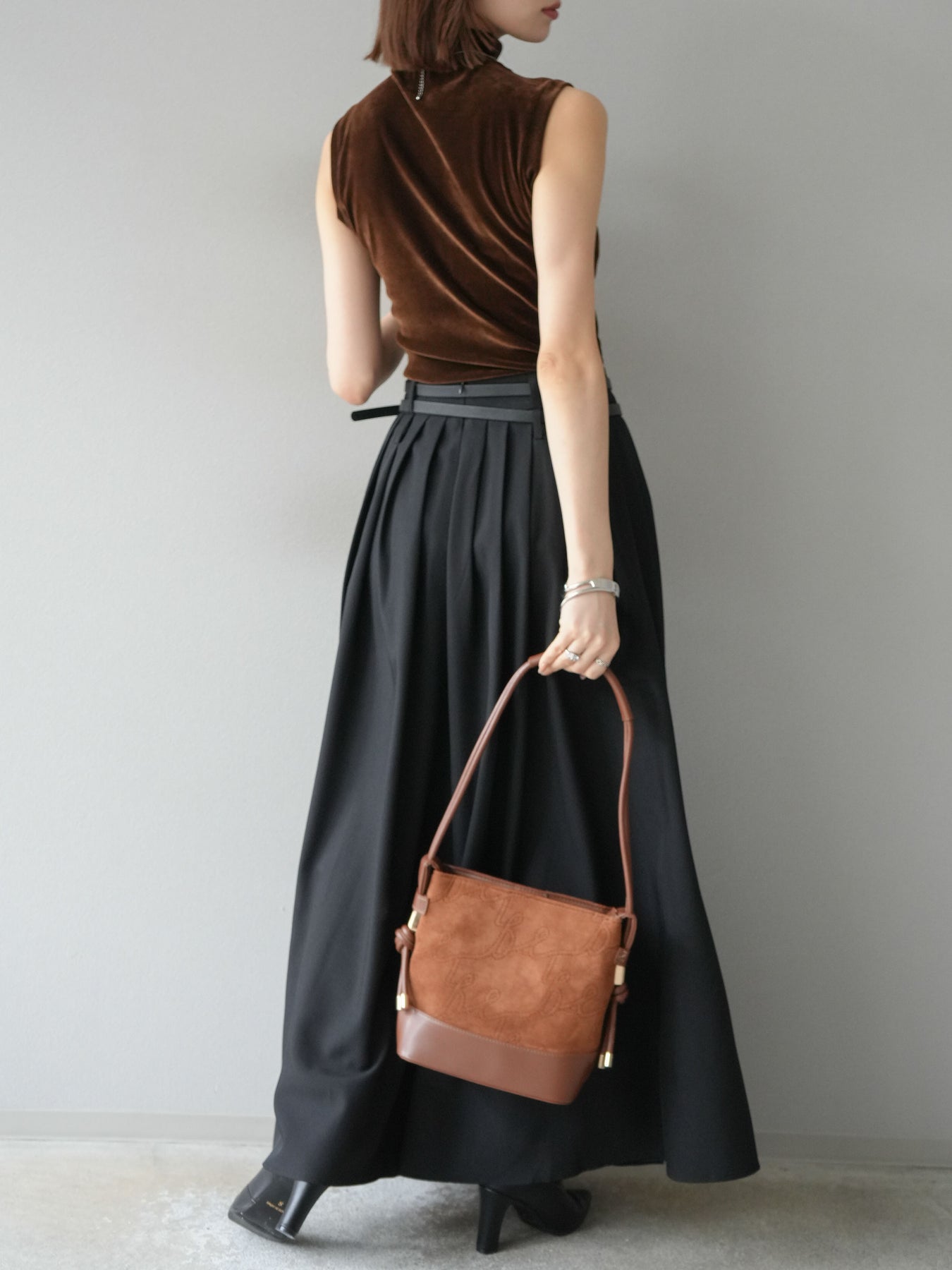 [SET]シアーベロアプチネックノースリーブトップス+エステルプリーツスリットスカート(2set)