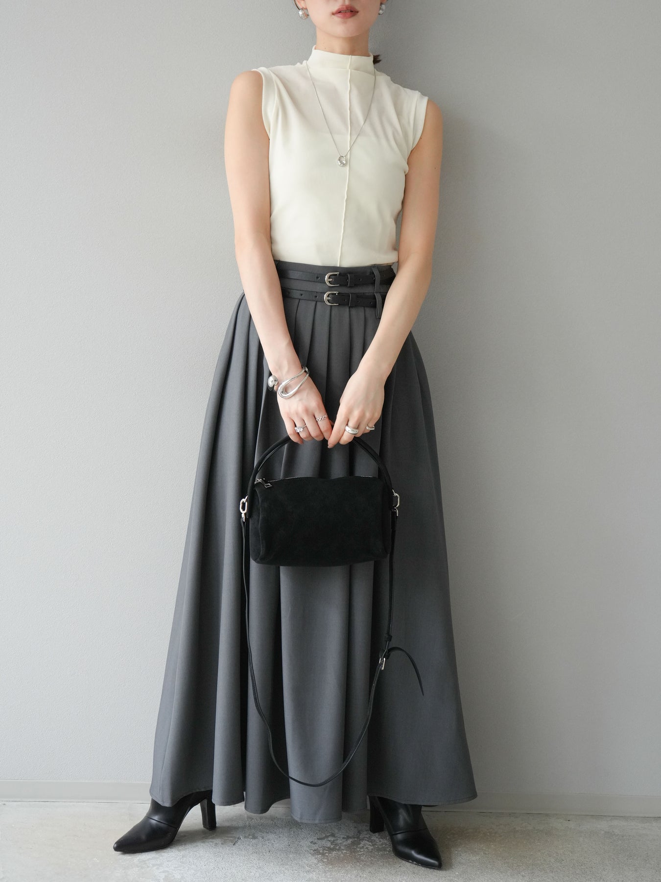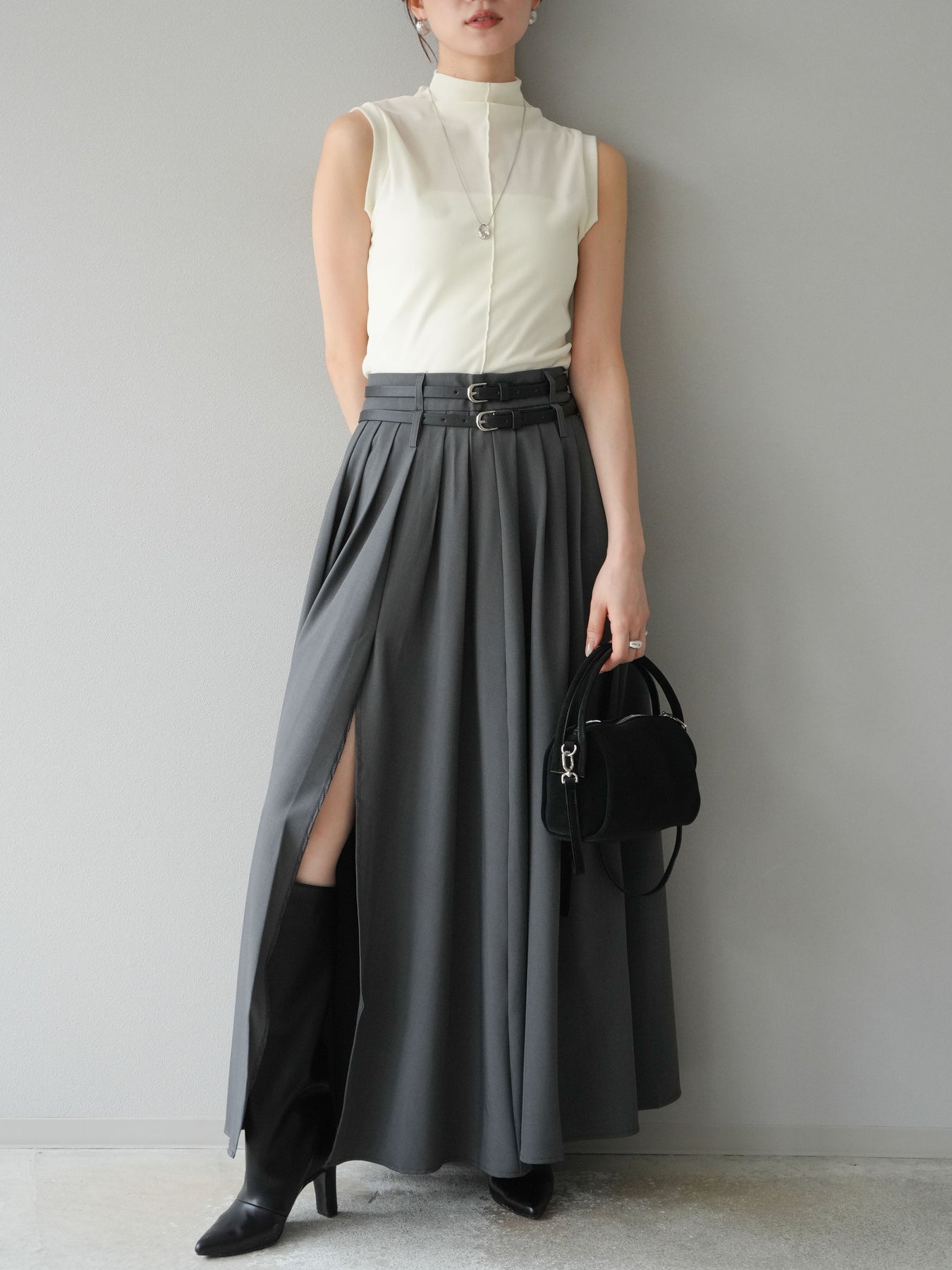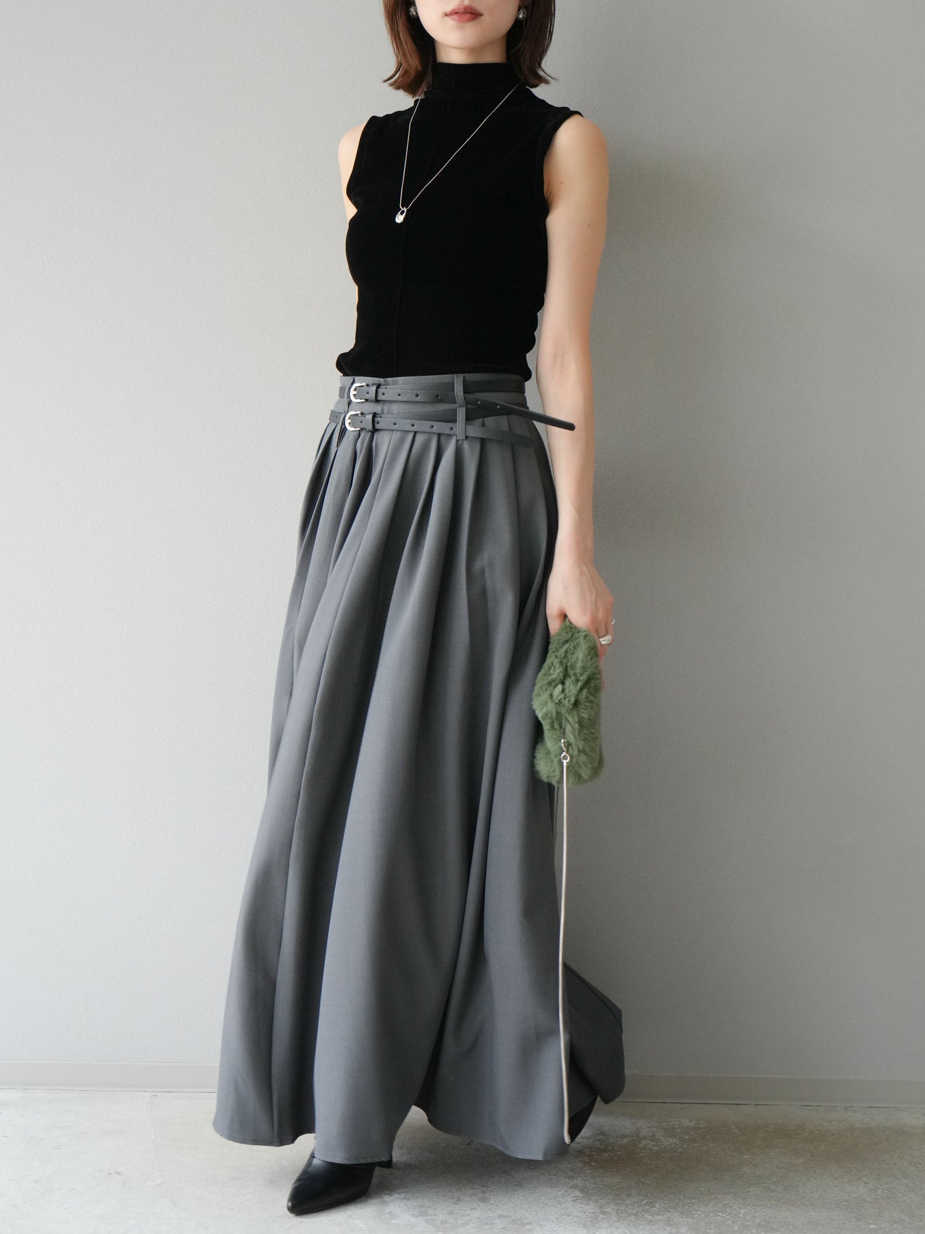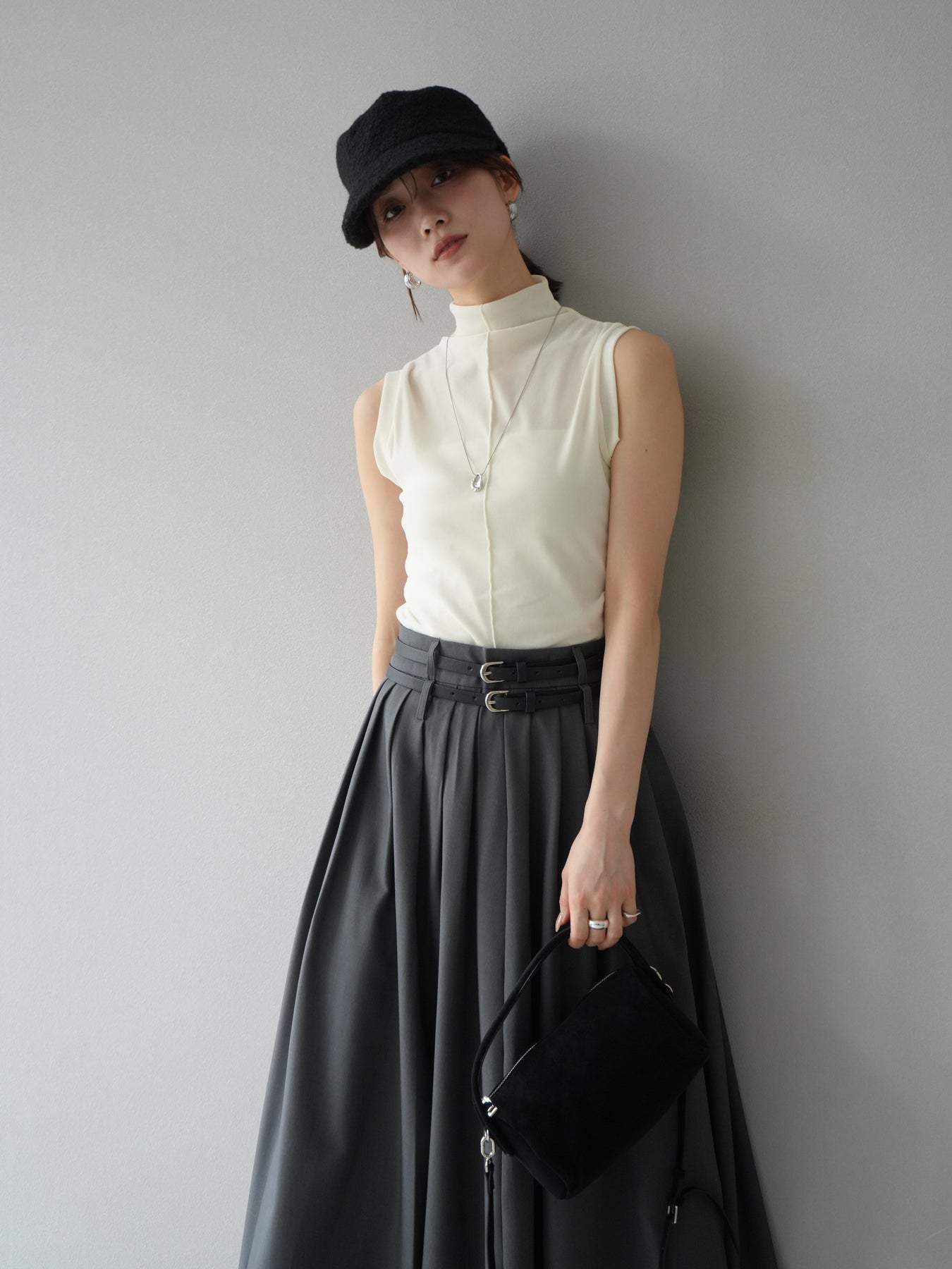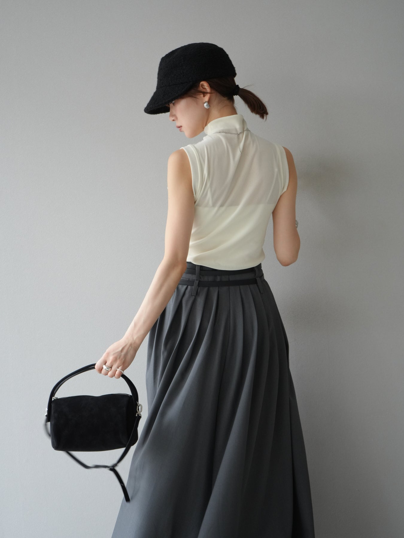 [SET]シアーベロアプチネックノースリーブトップス+エステルプリーツスリットスカート(2set)