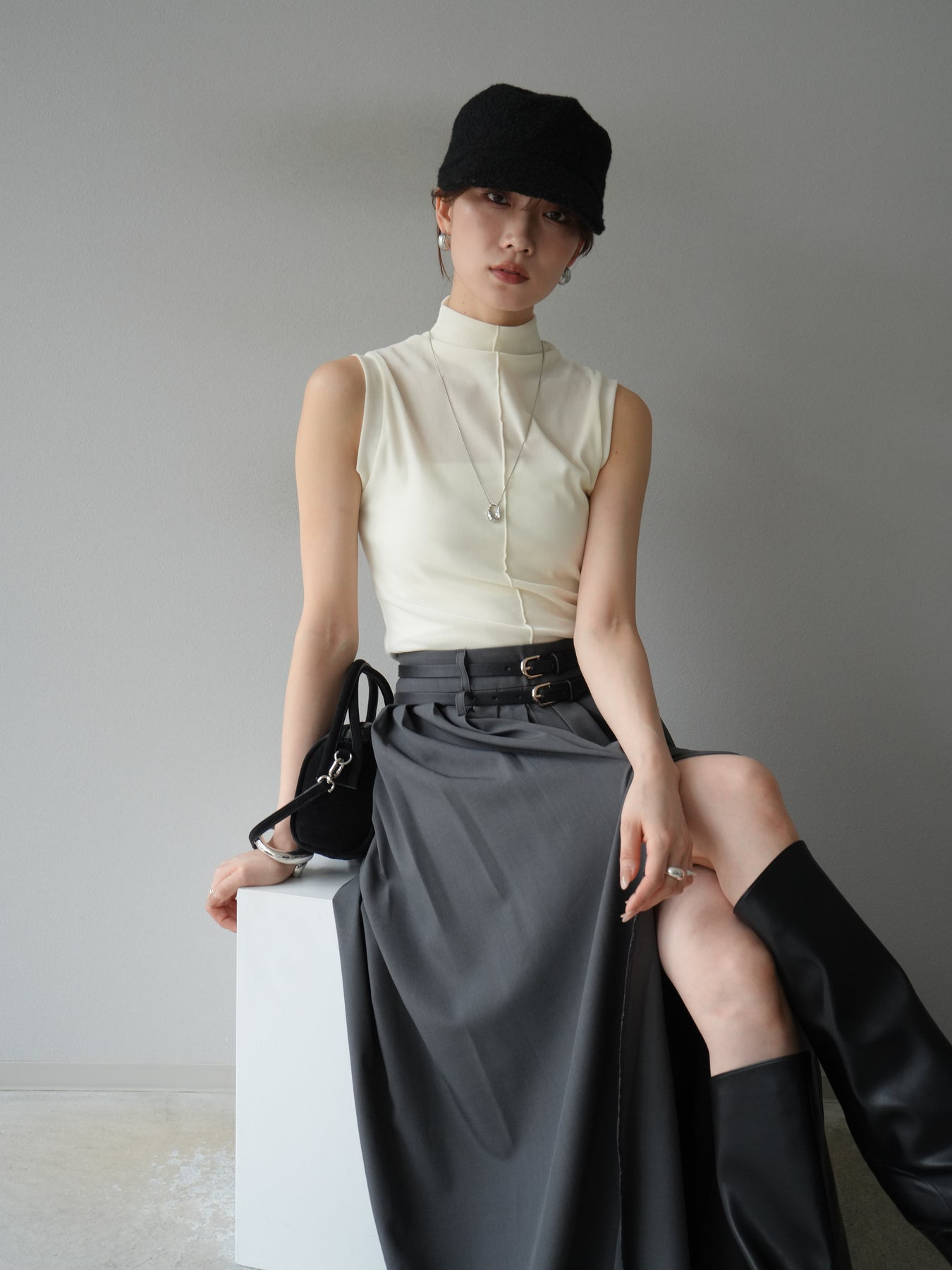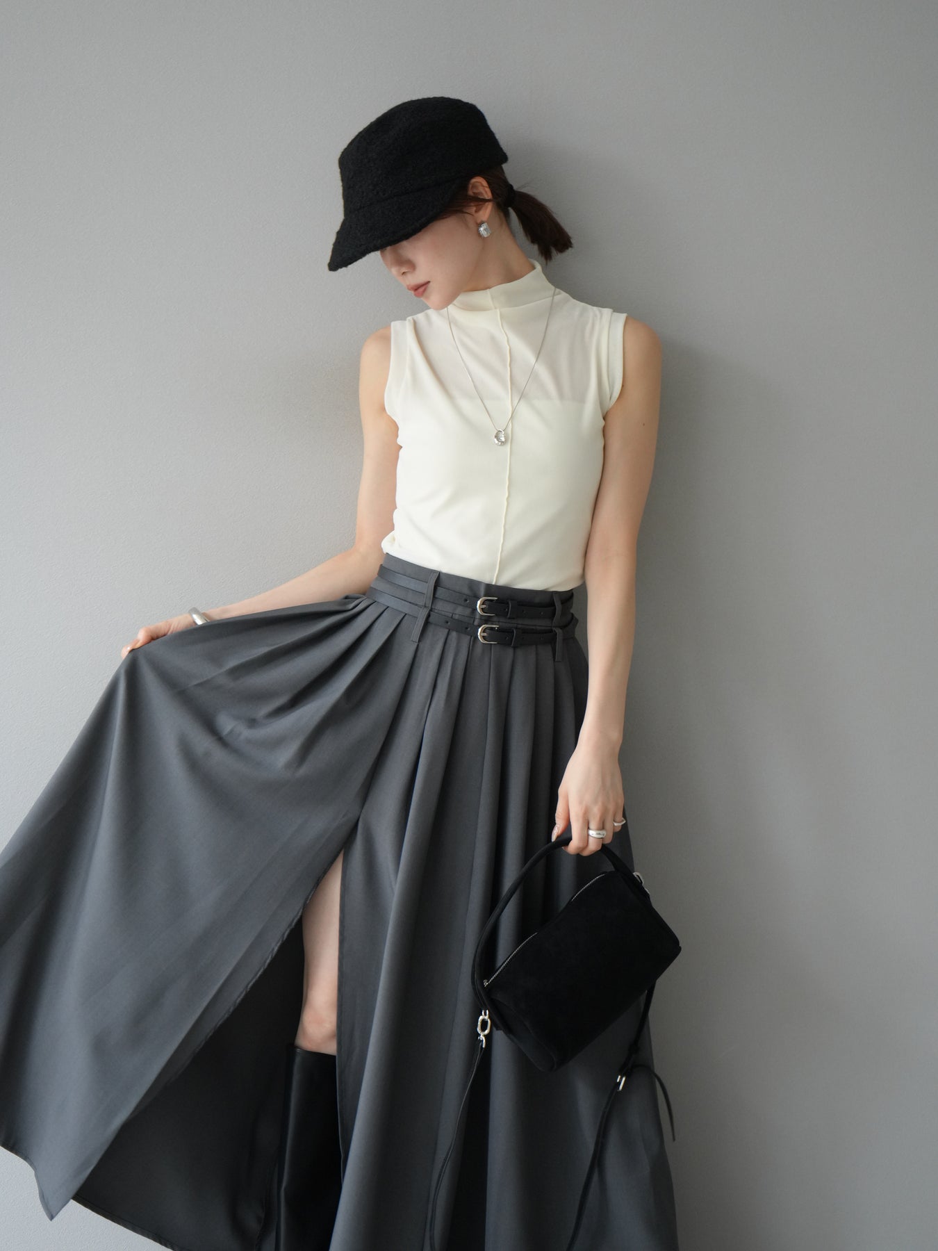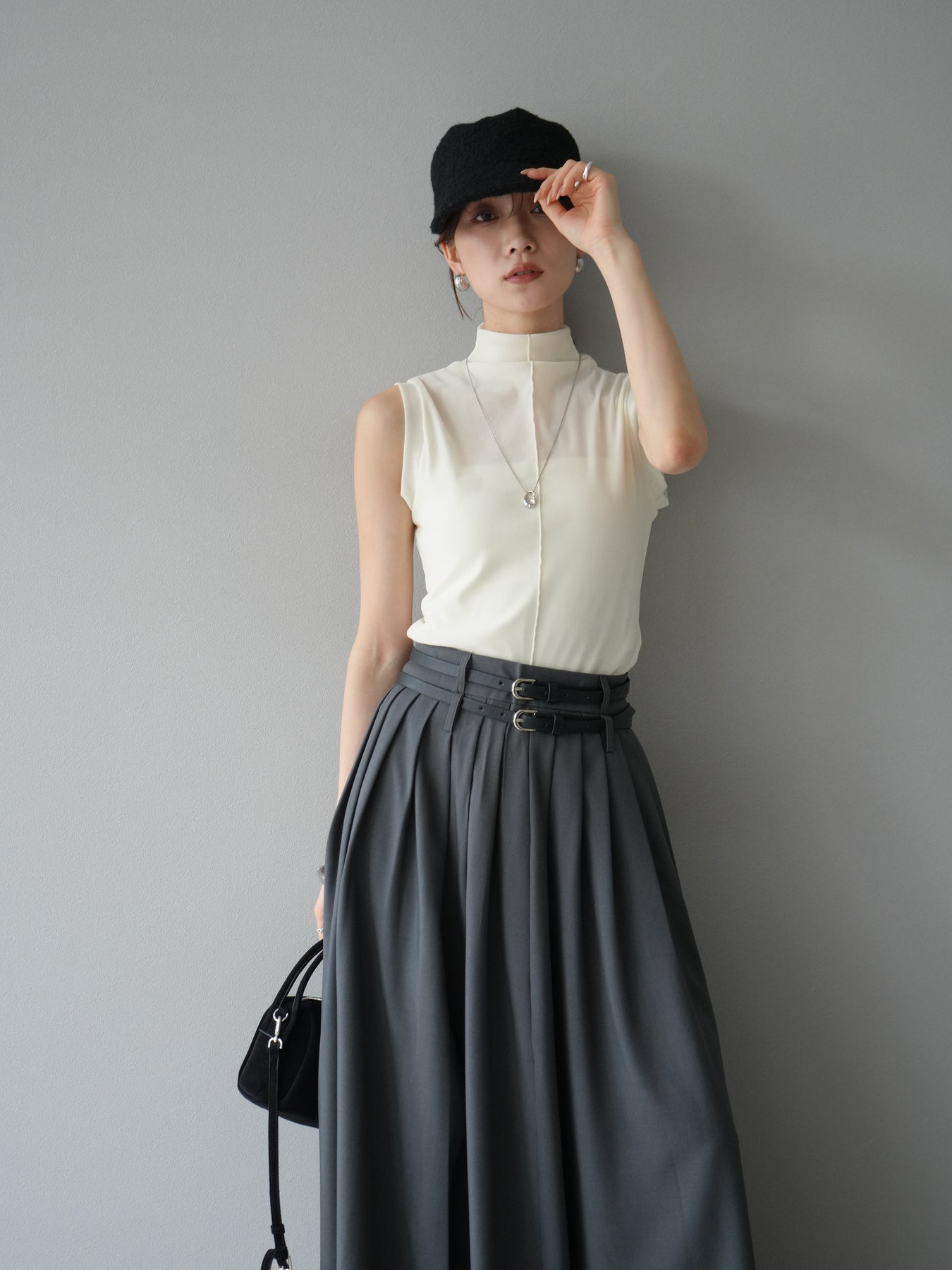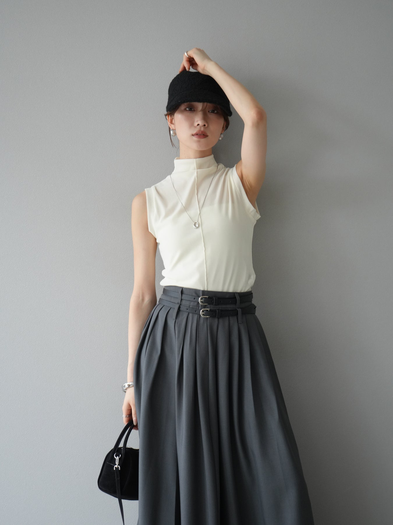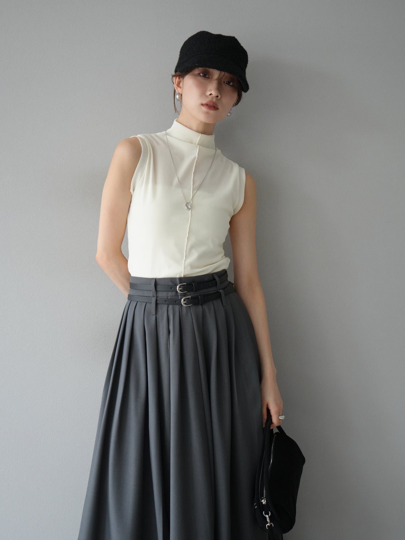 [SET]シアーベロアプチネックノースリーブトップス+エステルプリーツスリットスカート(2set)