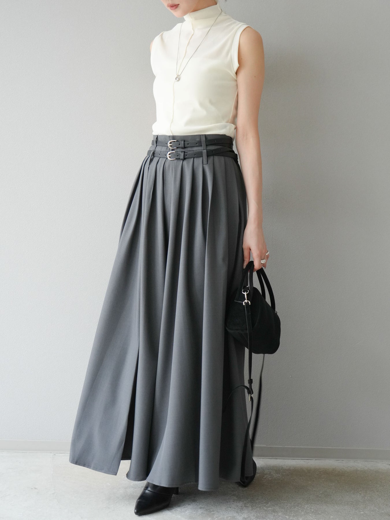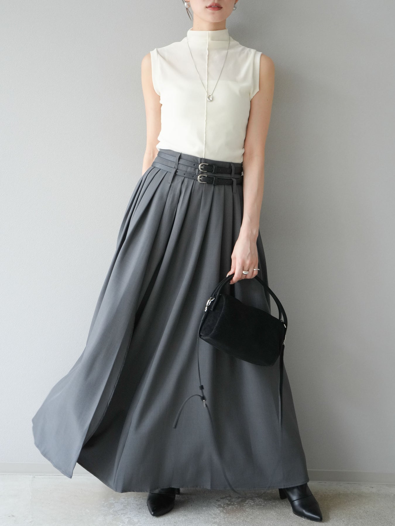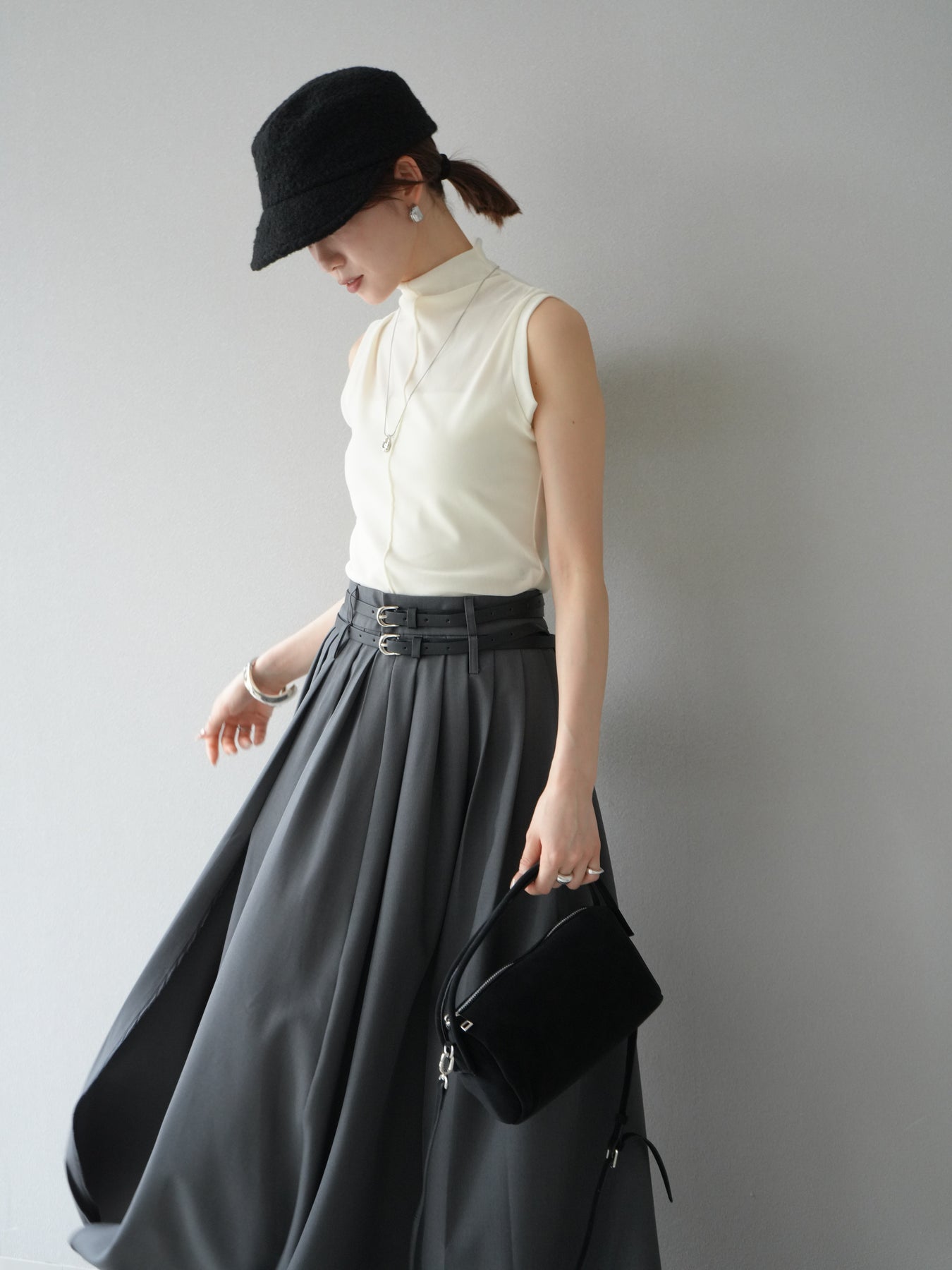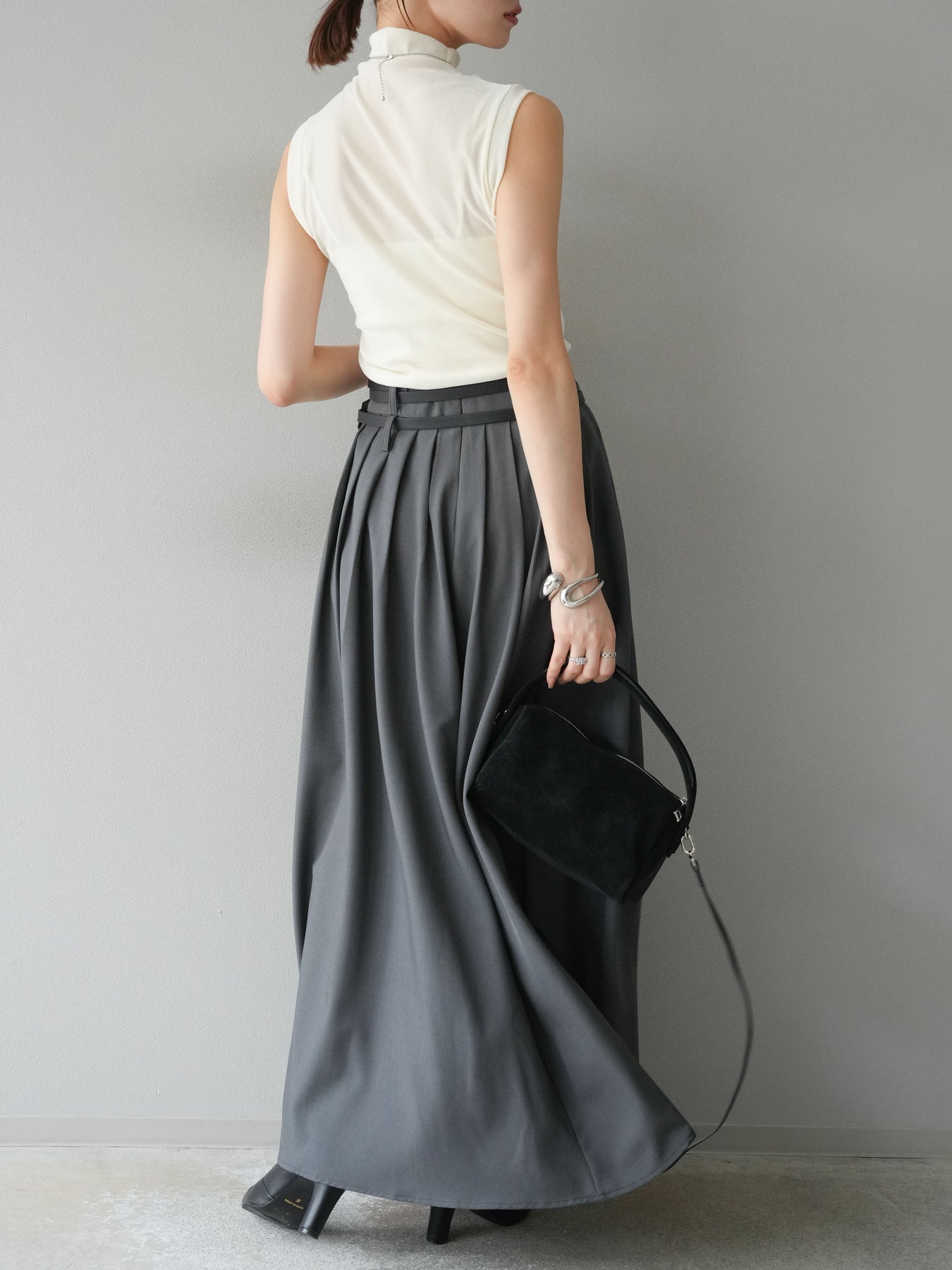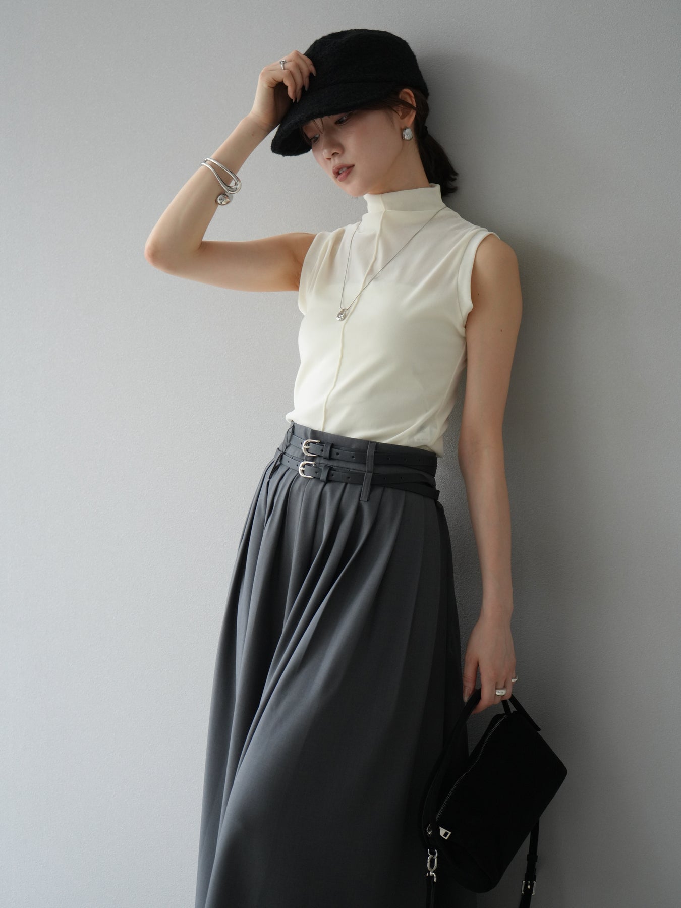 [SET]シアーベロアプチネックノースリーブトップス+エステルプリーツスリットスカート(2set)