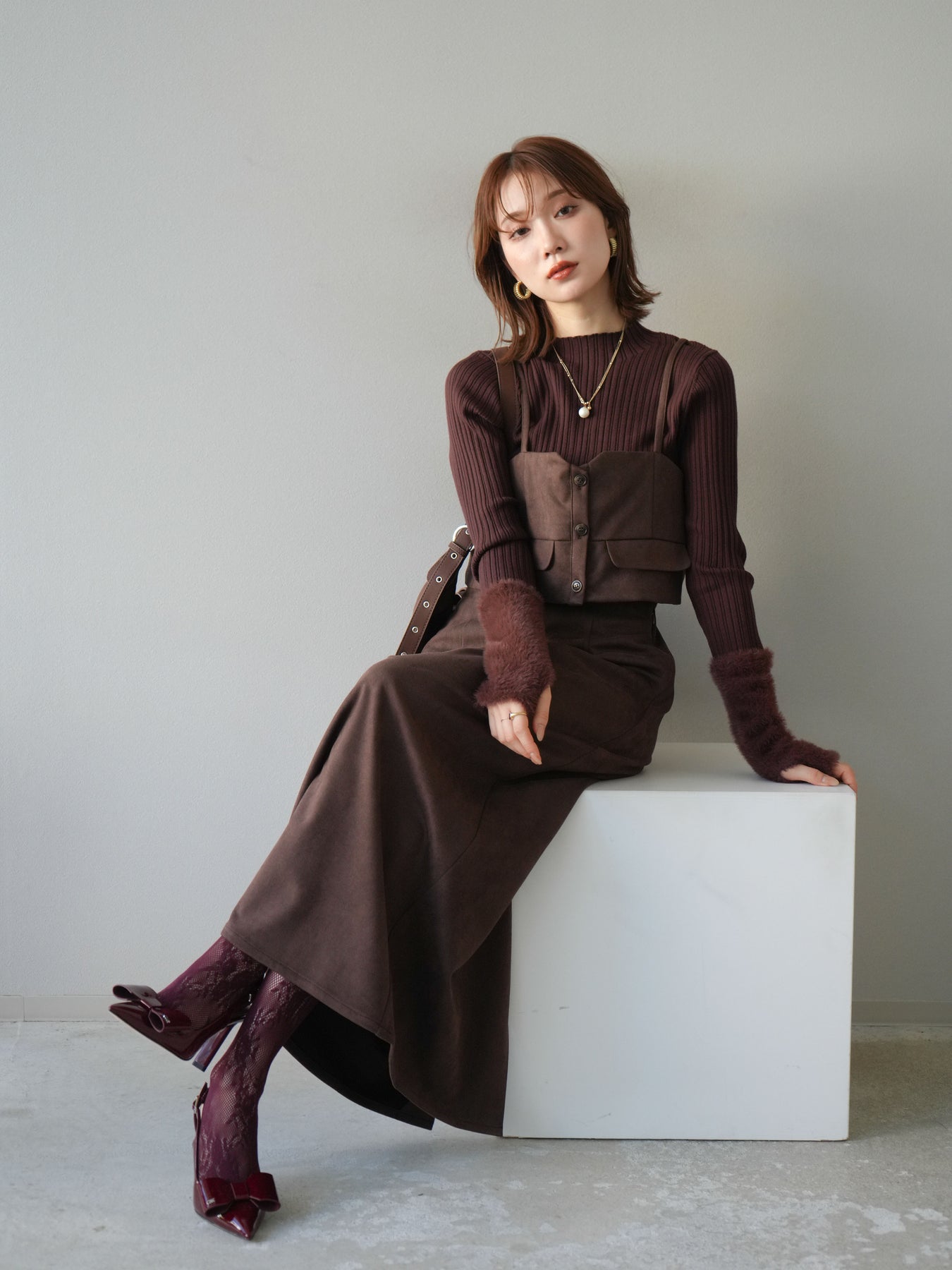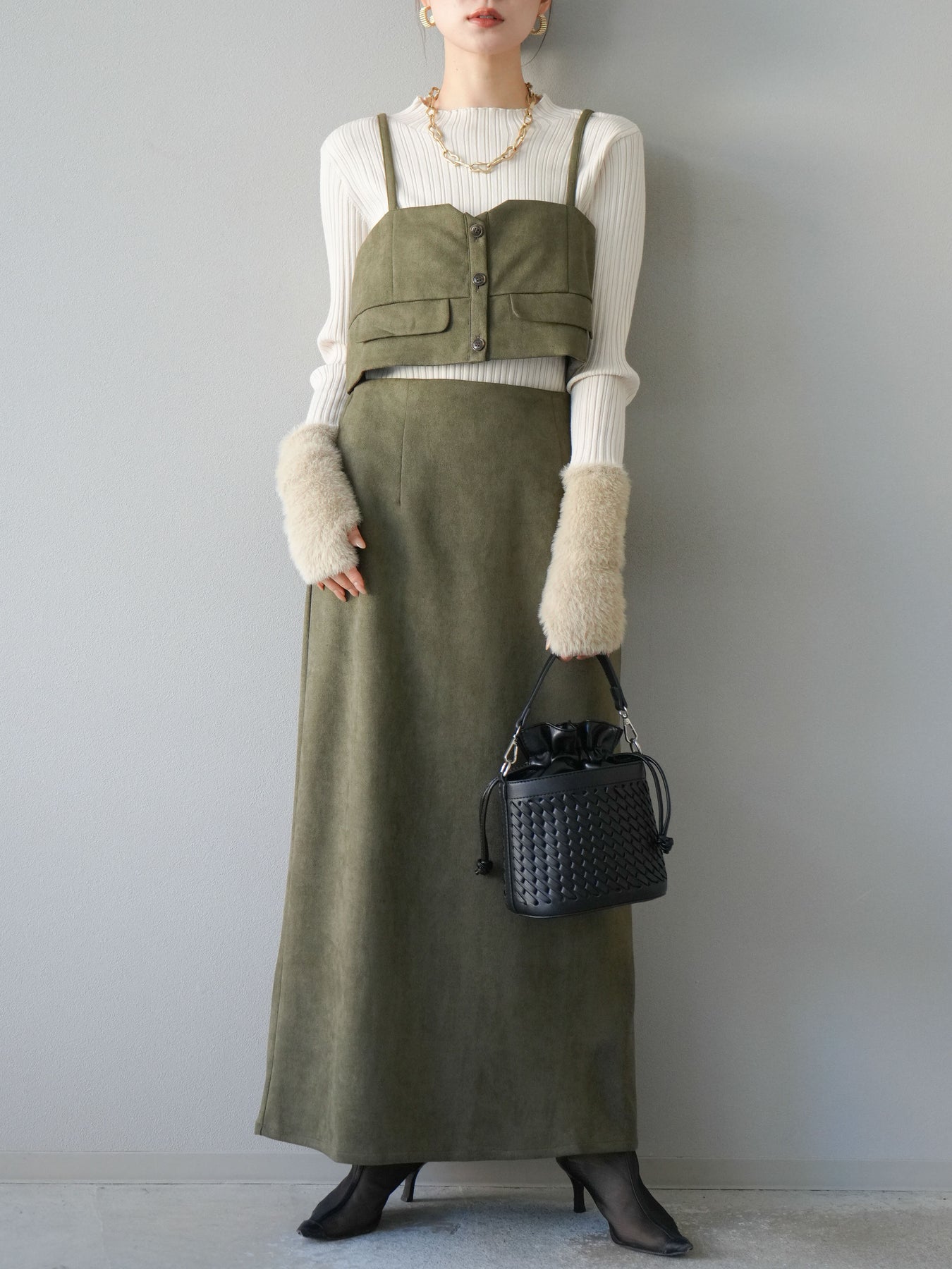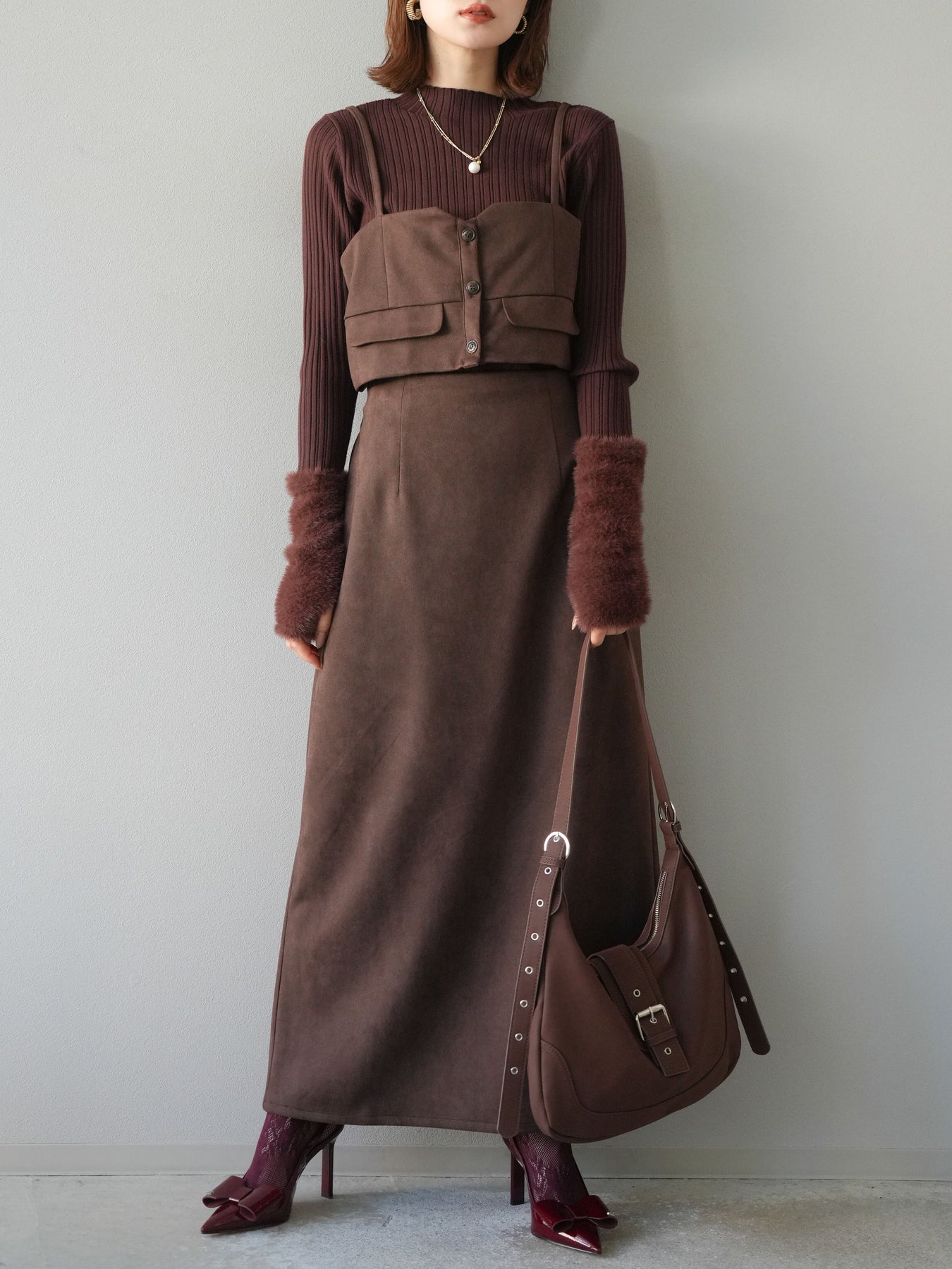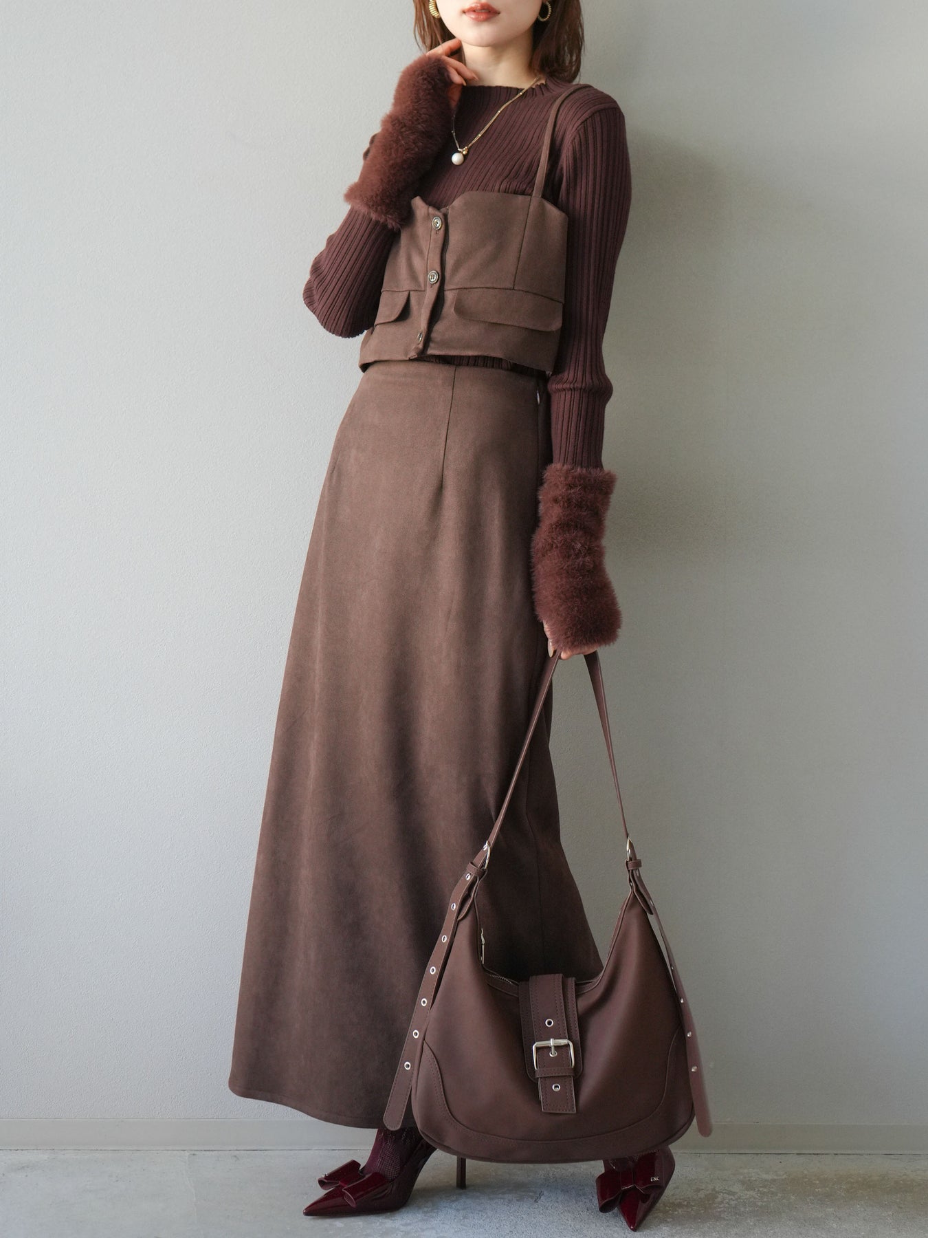 [SET]スウェードビスチェ+スウェードIラインスカート(2set)