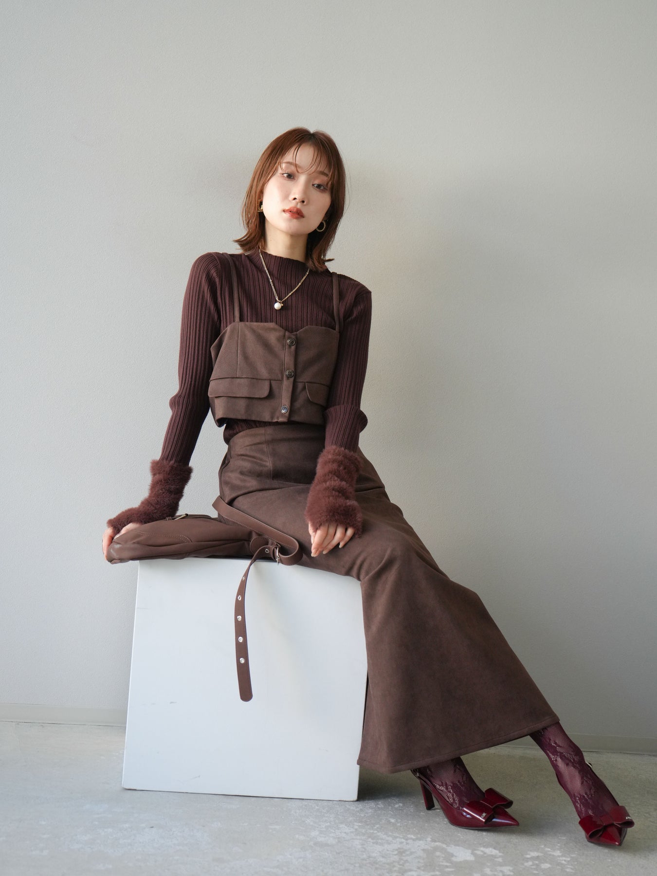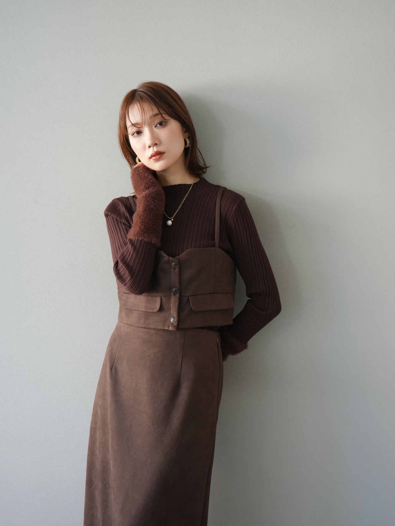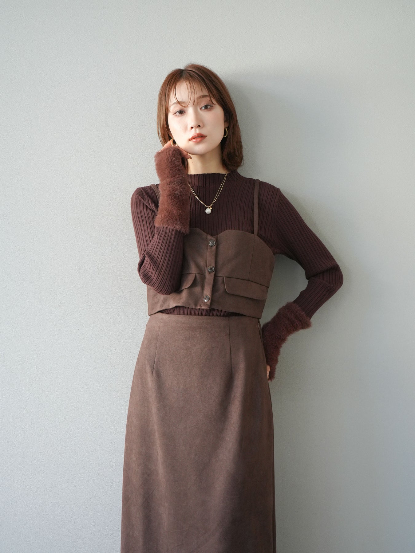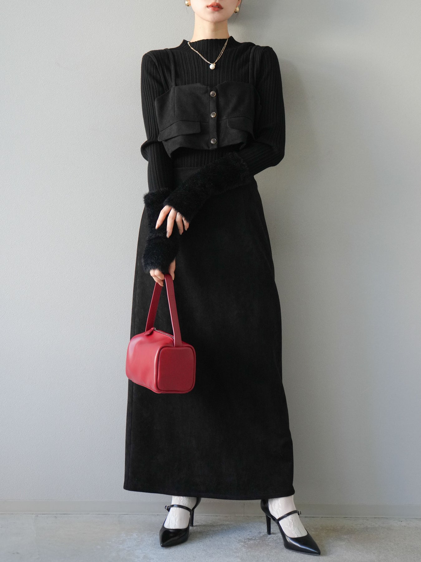 [SET]スウェードビスチェ+スウェードIラインスカート(2set)