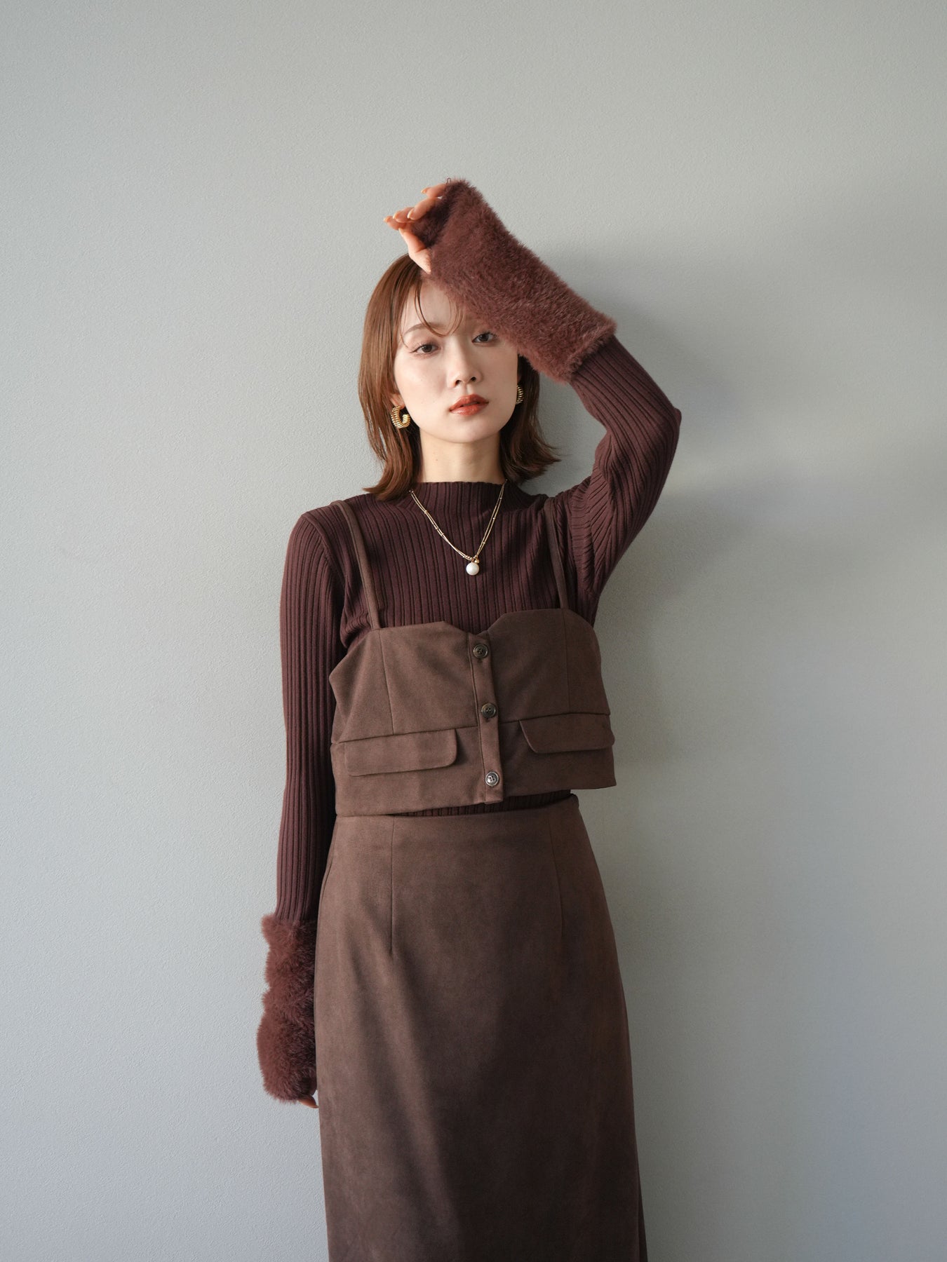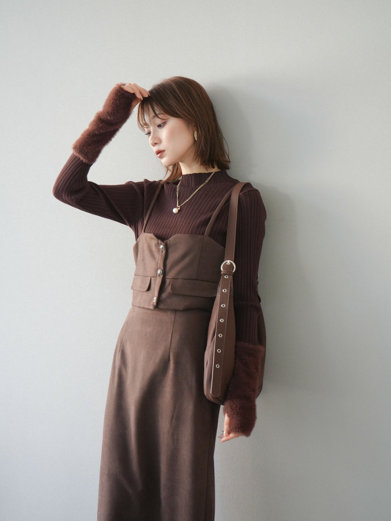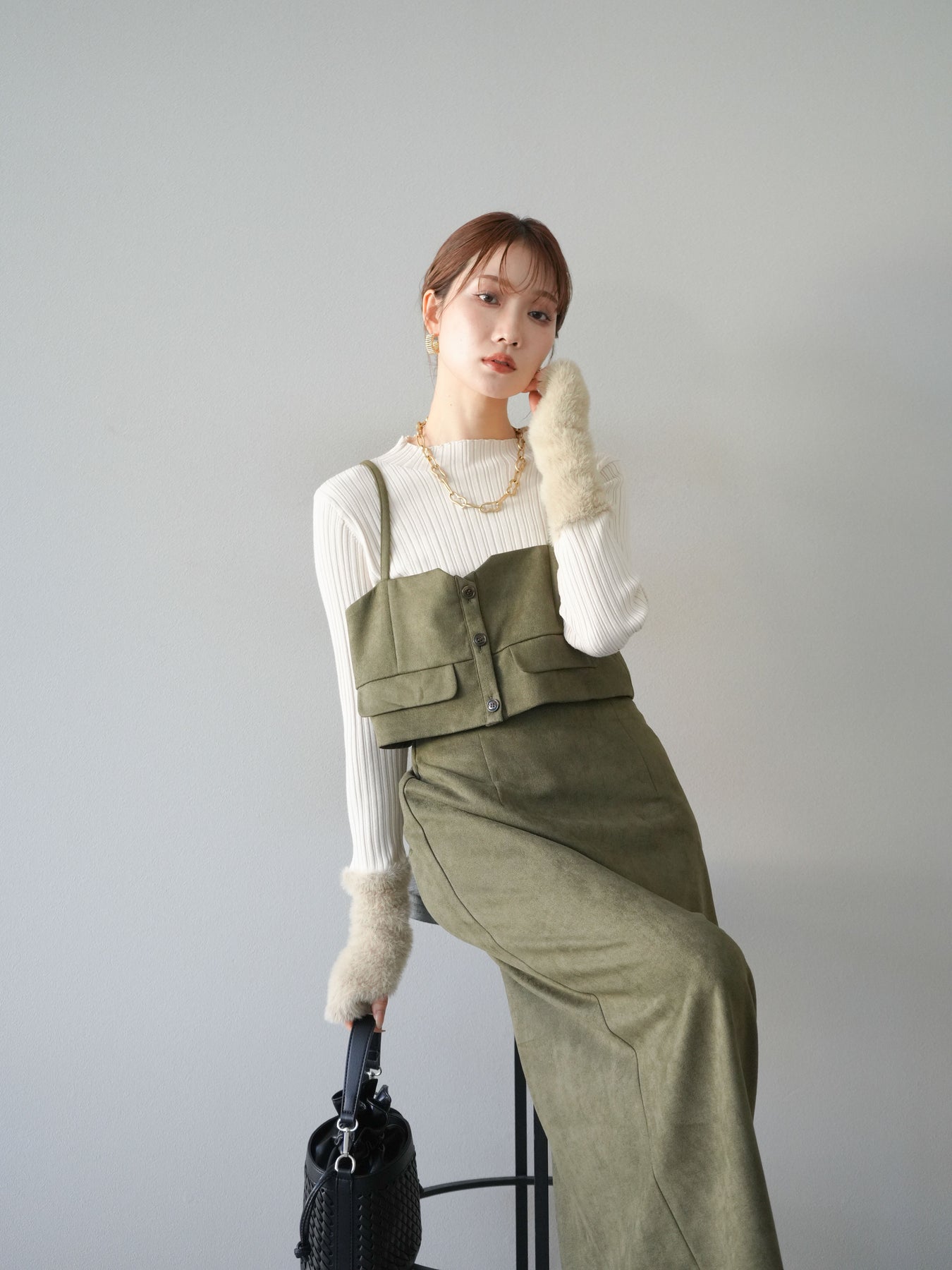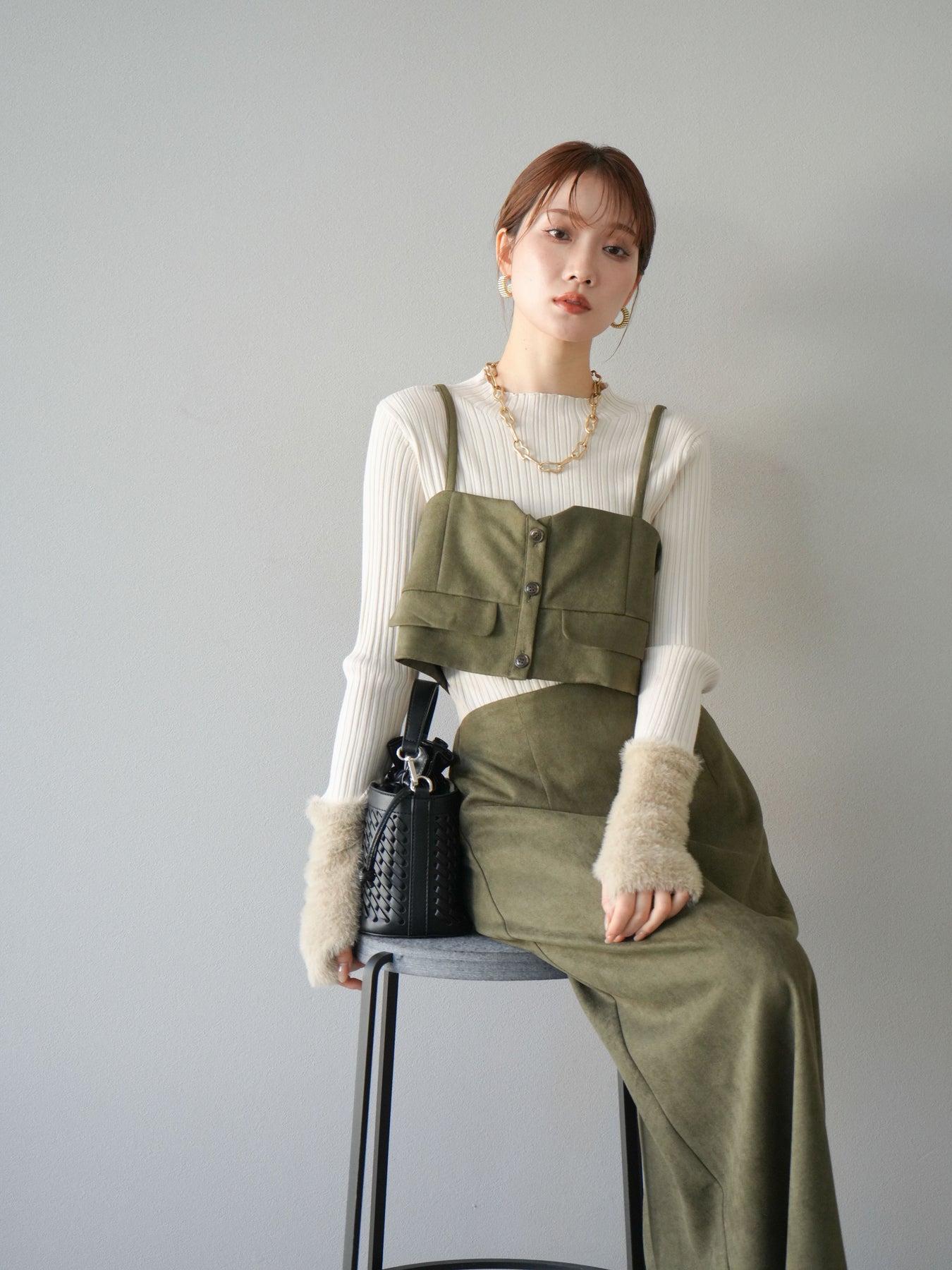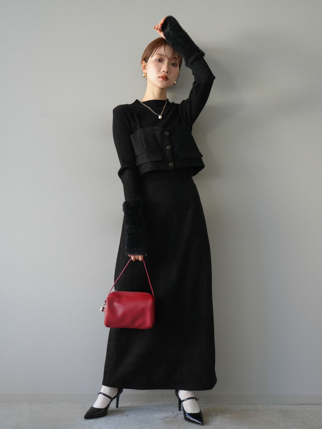 [SET]スウェードビスチェ+スウェードIラインスカート(2set)