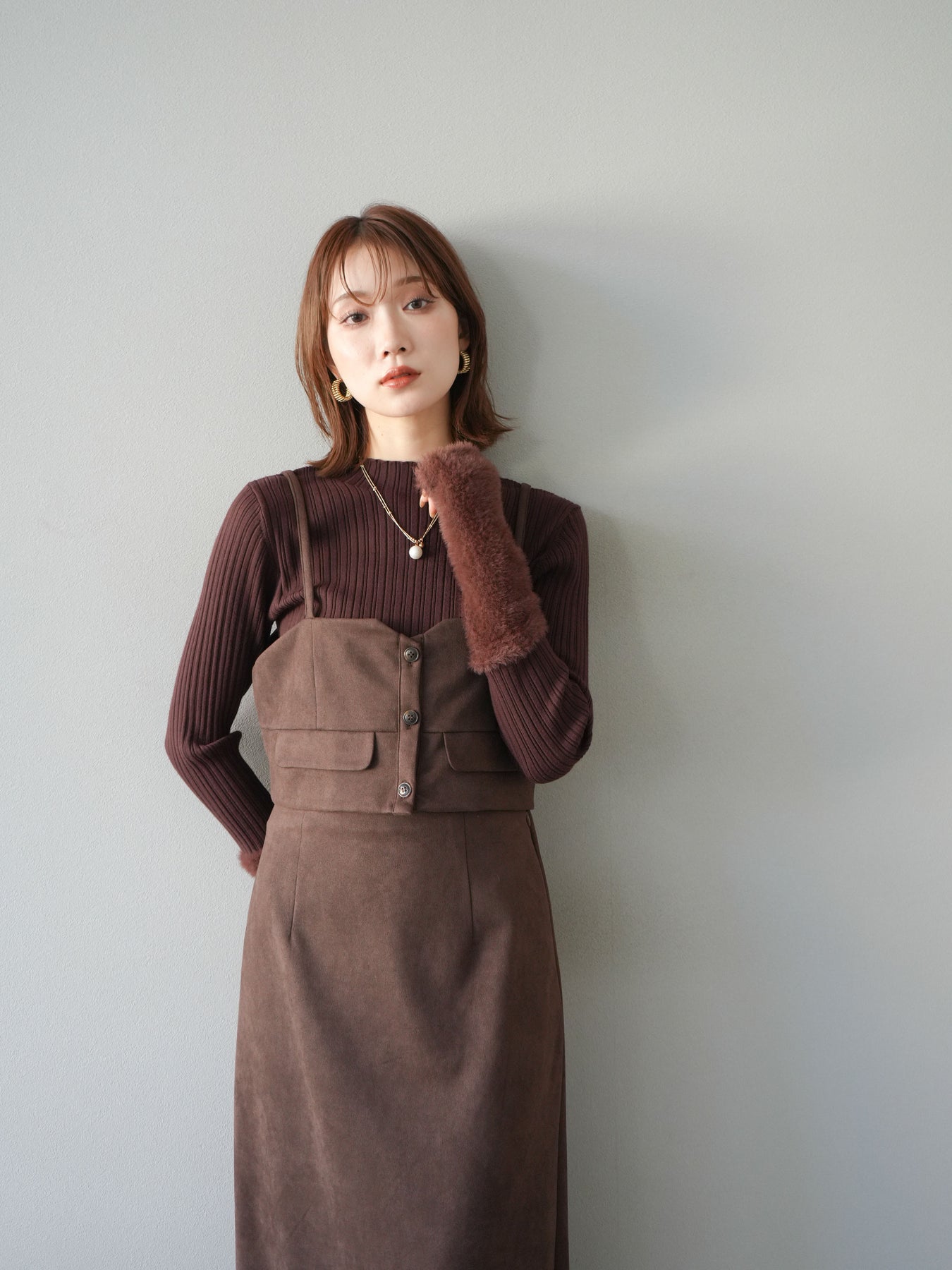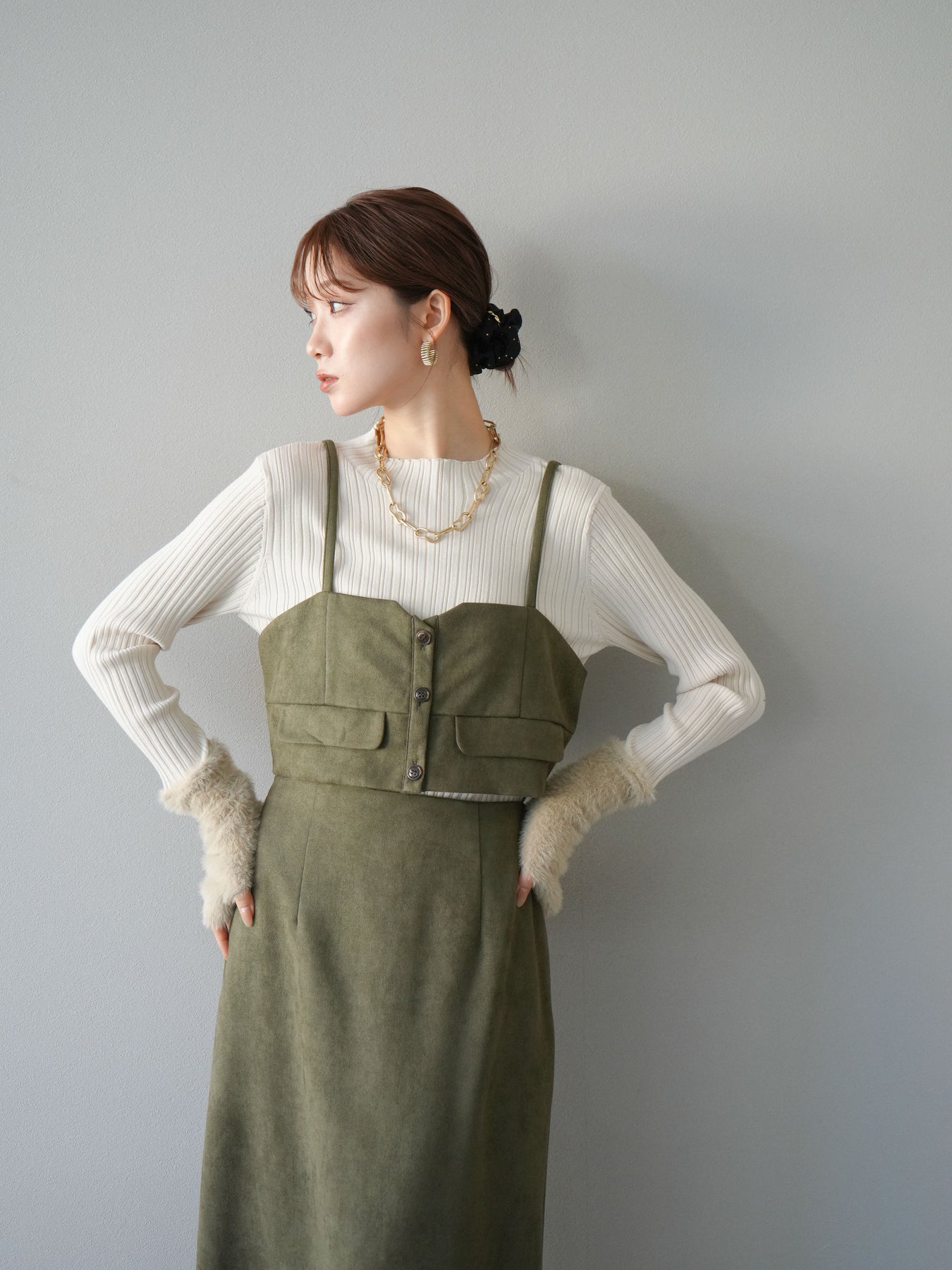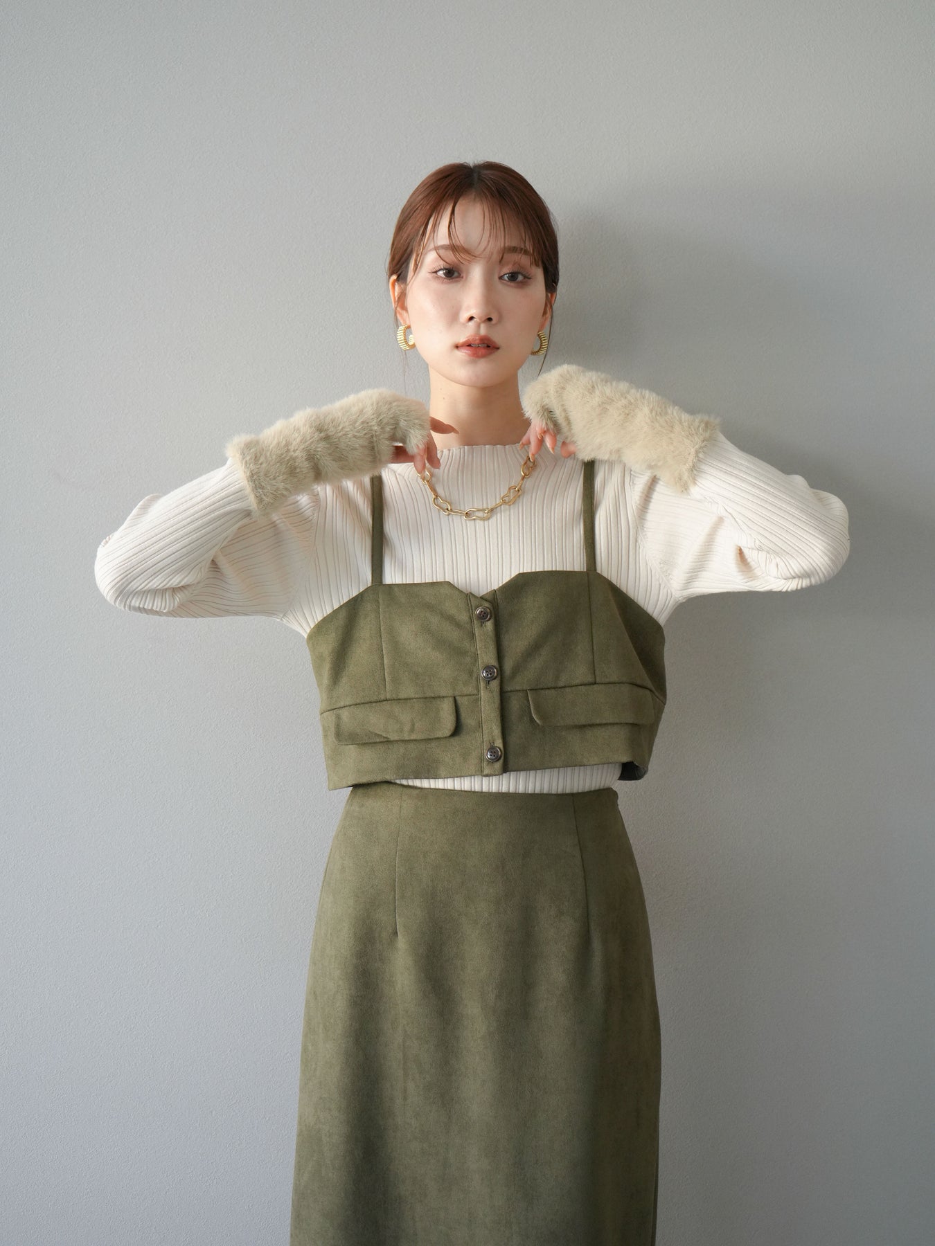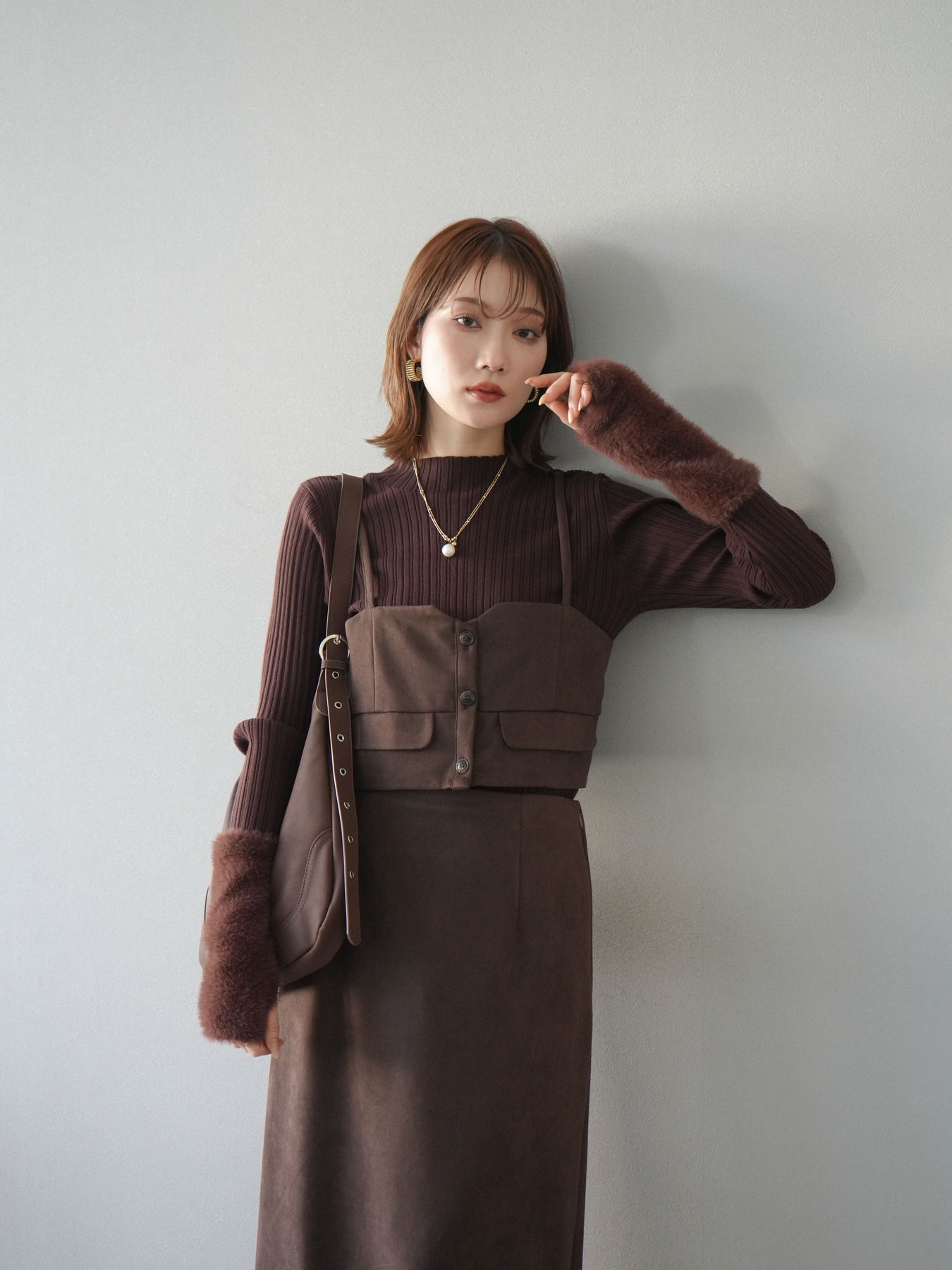 [SET]スウェードビスチェ+スウェードIラインスカート(2set)