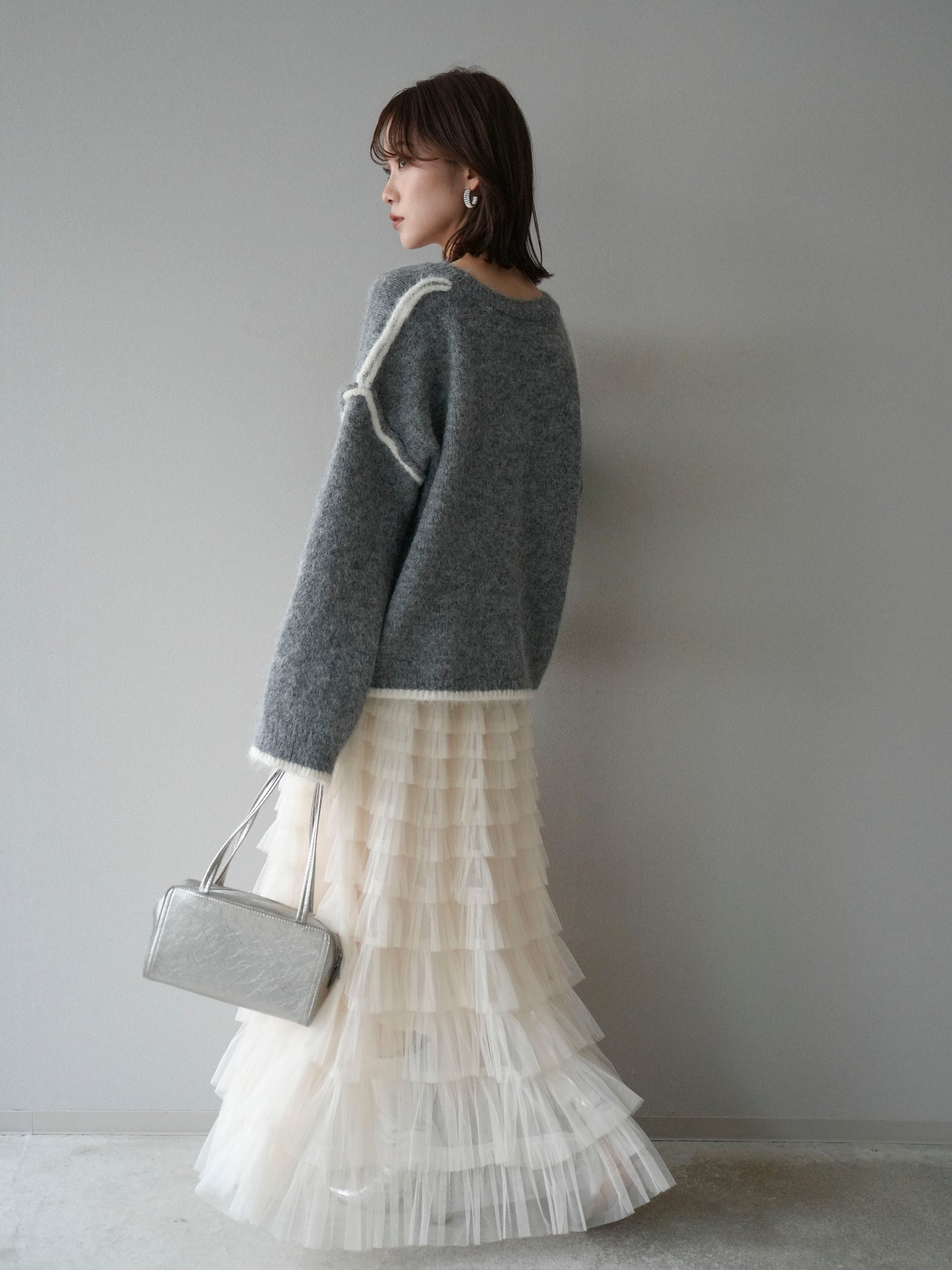 繊細なチュールを幾重にも重ねたティアードデザインが華やかなスカート。動くたびに軽やかに揺れるシルエットが、スタイリングに存在感をプラスします。ウエストはゴム仕様でリラックス感のある穿き心地ながら、ボリューム感のあるティアードがフェミニンさを引き立てる一着。シンプルなトップスを合わせればスカートが主役になり、ジャケットやニットと合わせればドレッシーにもカジュアルにも着こなせます。特別なシーンからデイリー使いまで幅広く活躍できるアイテムです。